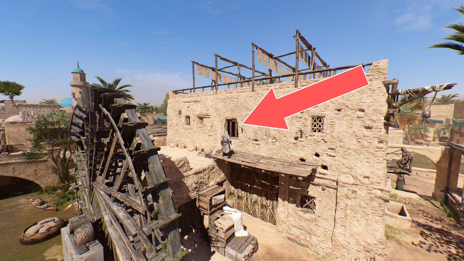 It's inside the water mill building. To get inside, find the window behind the water wheel and use a throwing dagger to break the lock on another window. It contains: Black Rostam Outfit Dye.