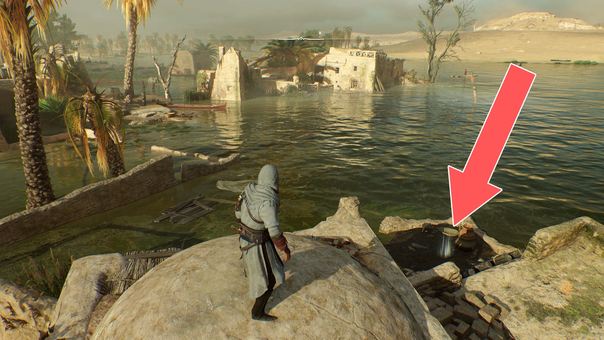 You'll find it among the ruins near a granary with a white-painted top. It contains Gold Hidden One Outfit Dye.