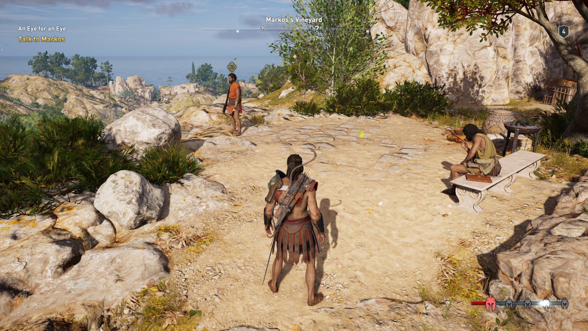 Walkthrough for the quest An Eye for an Eye in the game Assassin's Creed Odyssey. This page covers all main objectives, key steps, or helpful tips to guide you through the quest smoothly. Whenever possible, the guide points out locations for key items and details interactions with NPCs, among other tips. To ensure maximum clarity, in-game screenshots are included for easy-to-follow visual guidance.