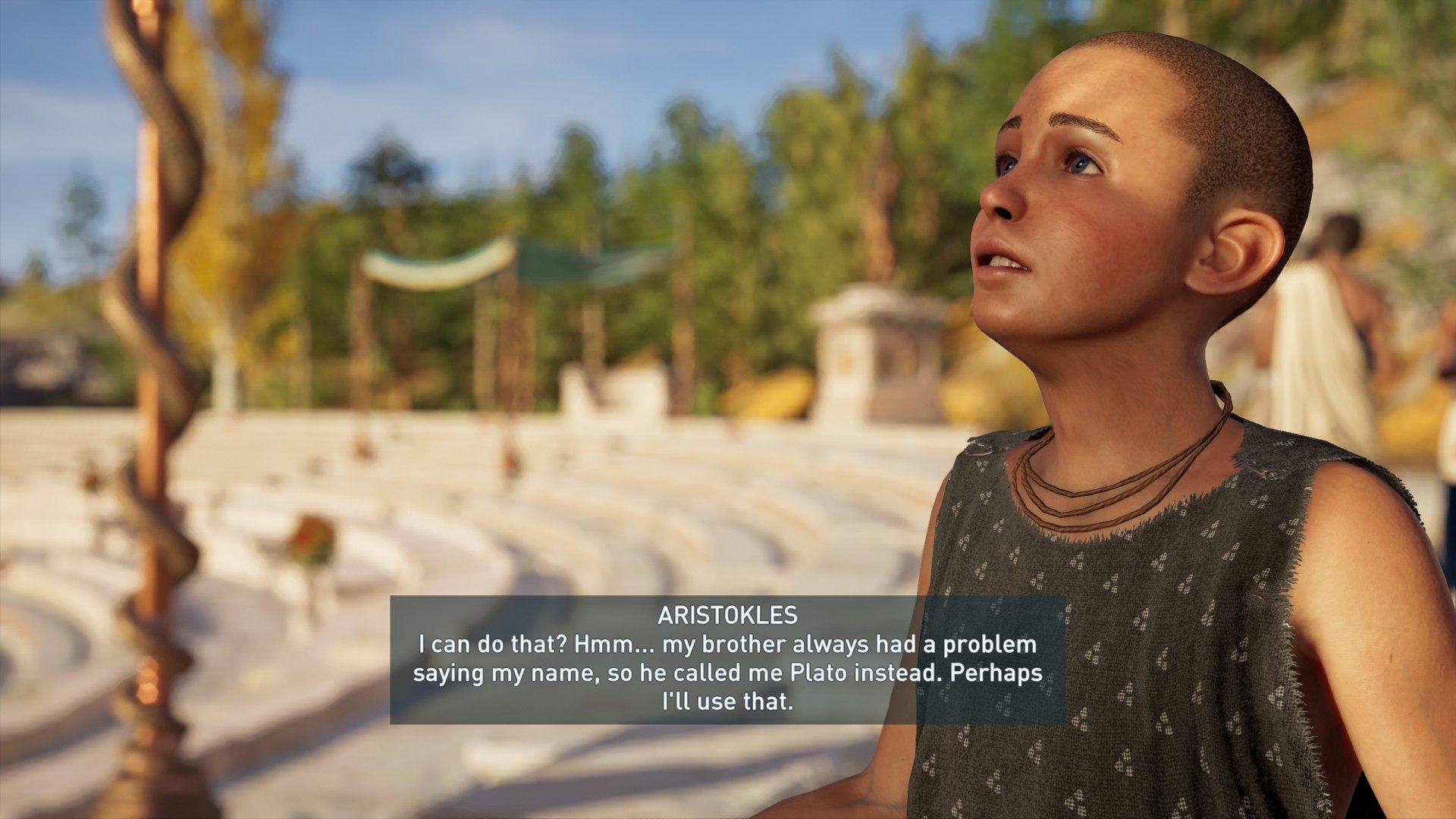 When the philosophers leave, you will have a short conversation with a boy. This is a young Plato who, when he grows up, will become a great Athenian philosopher.