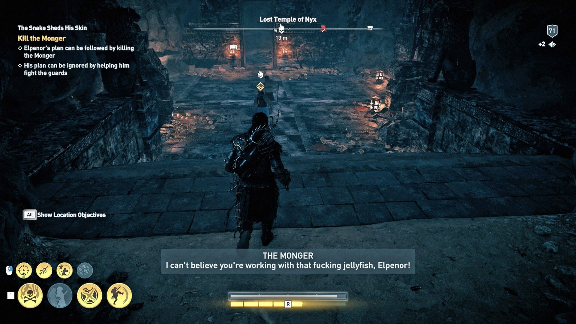 Elpenor asked Alexios to meet him at the Lost of Temple of Nyx once he found the Armor of the Fallen. It was time the plan was made to send the Monger back to Tartaros.
