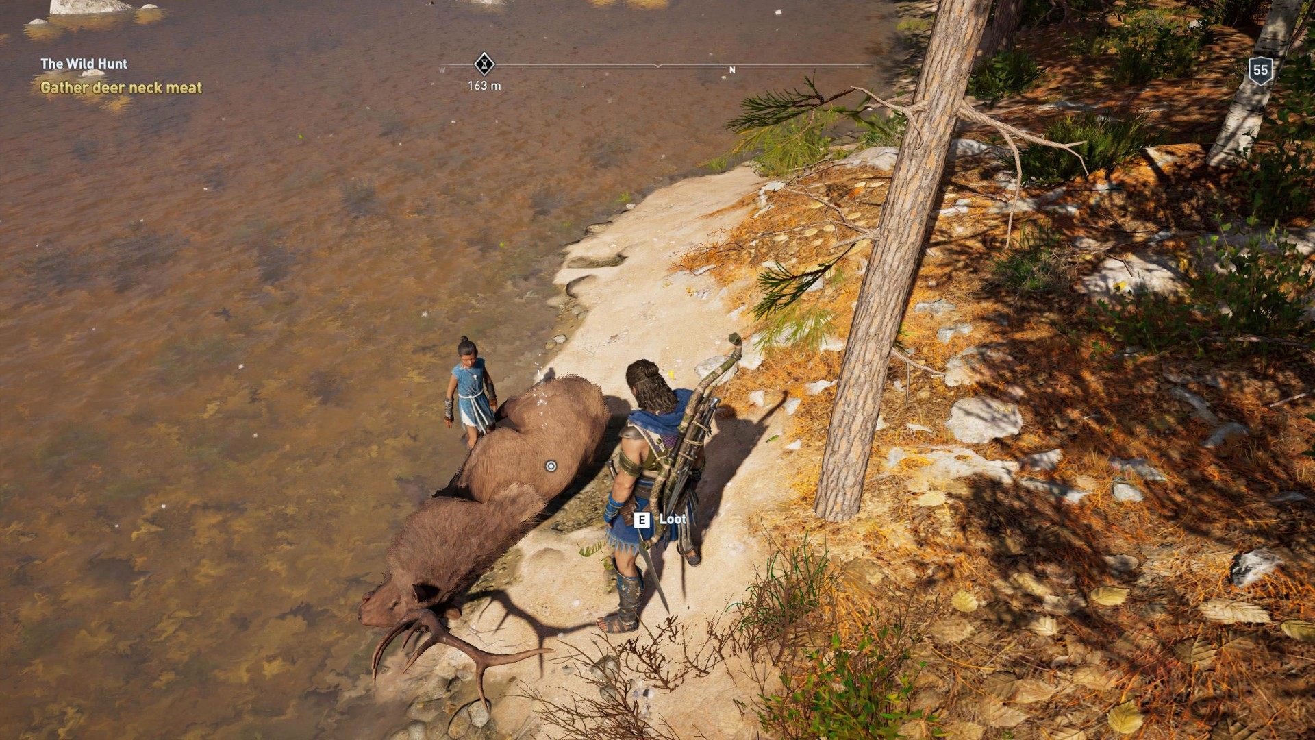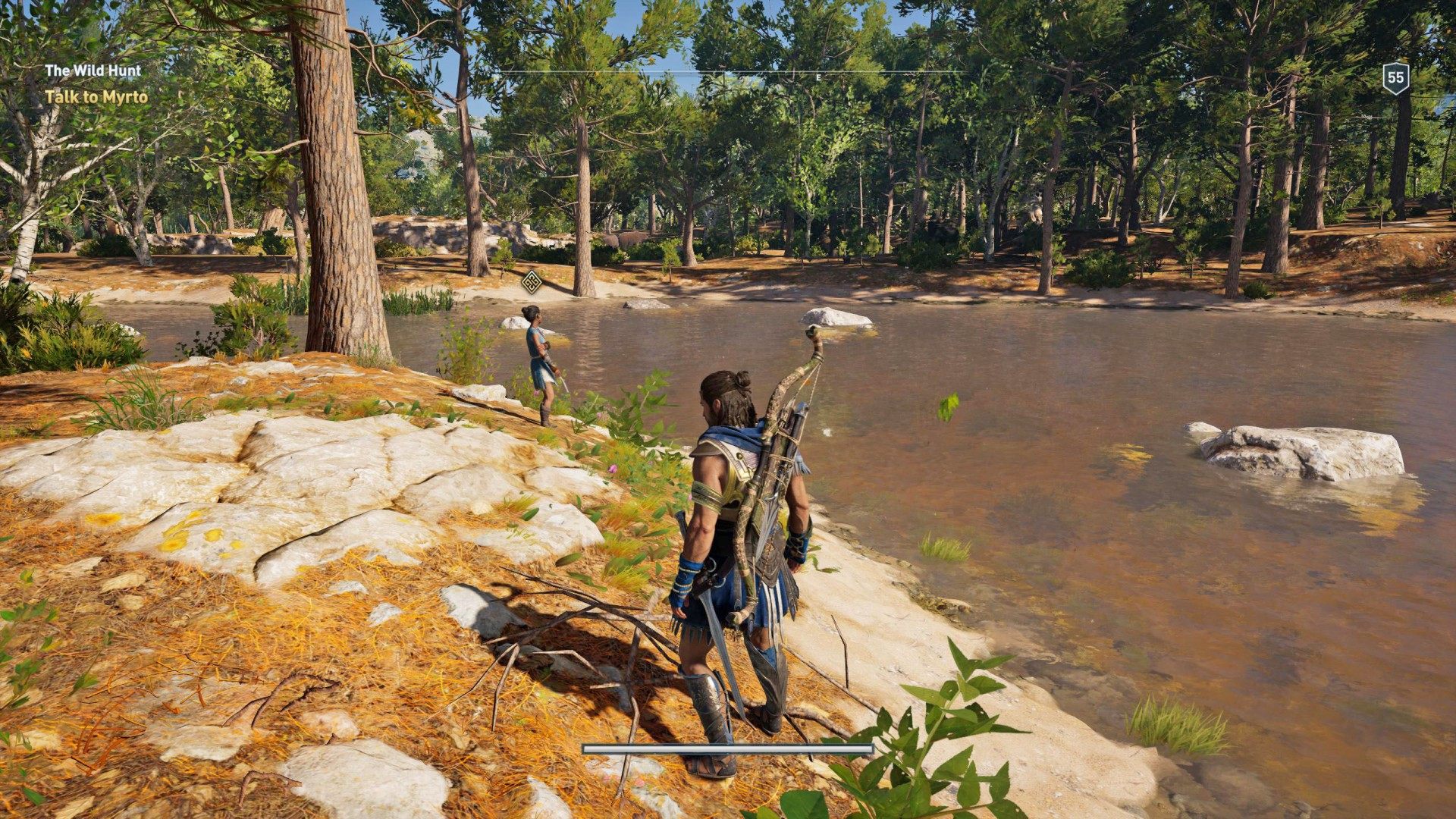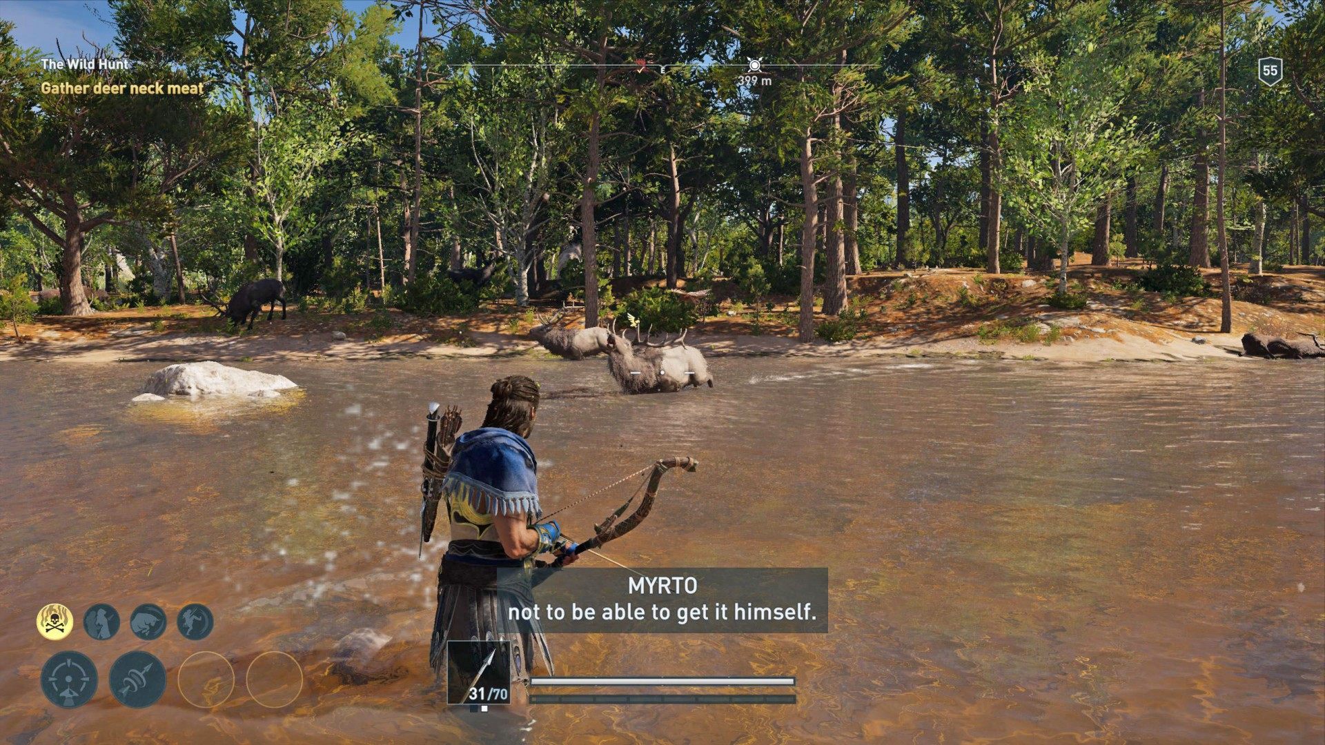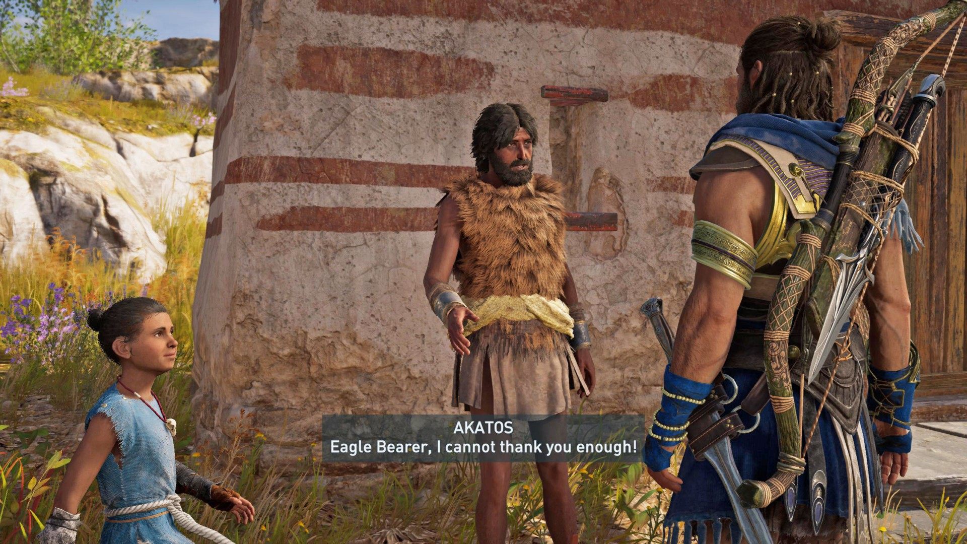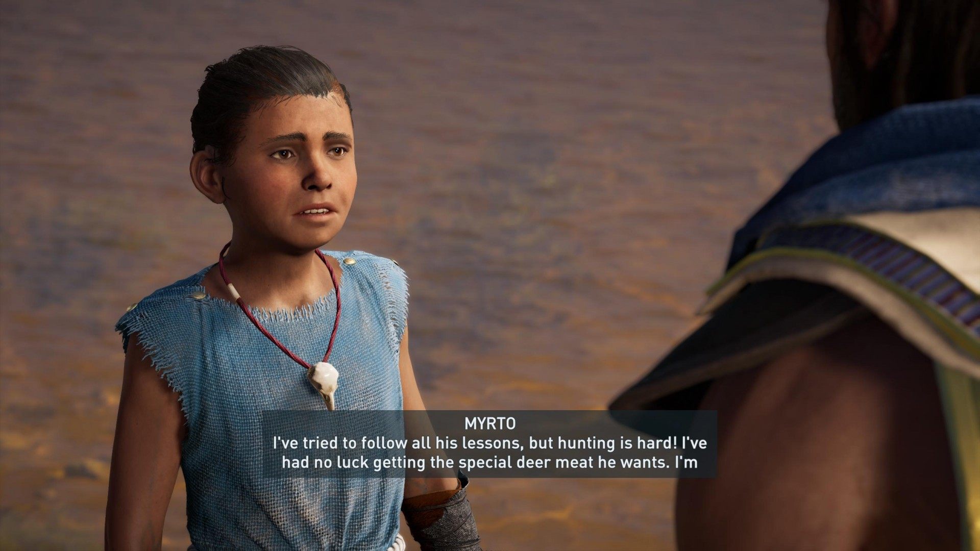 The lame hunter Akatos said his daughter, Myrto, had gone into the woods to try her hand at hunting. But she had been gone too long, and he grew worried. Alexios agreed to look for her.