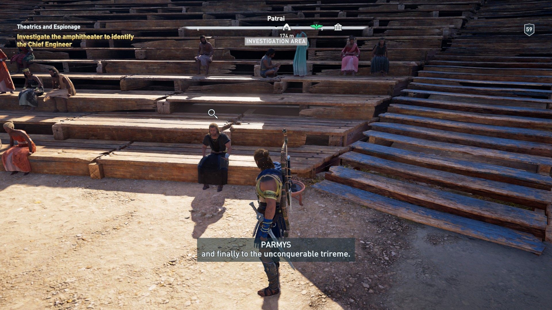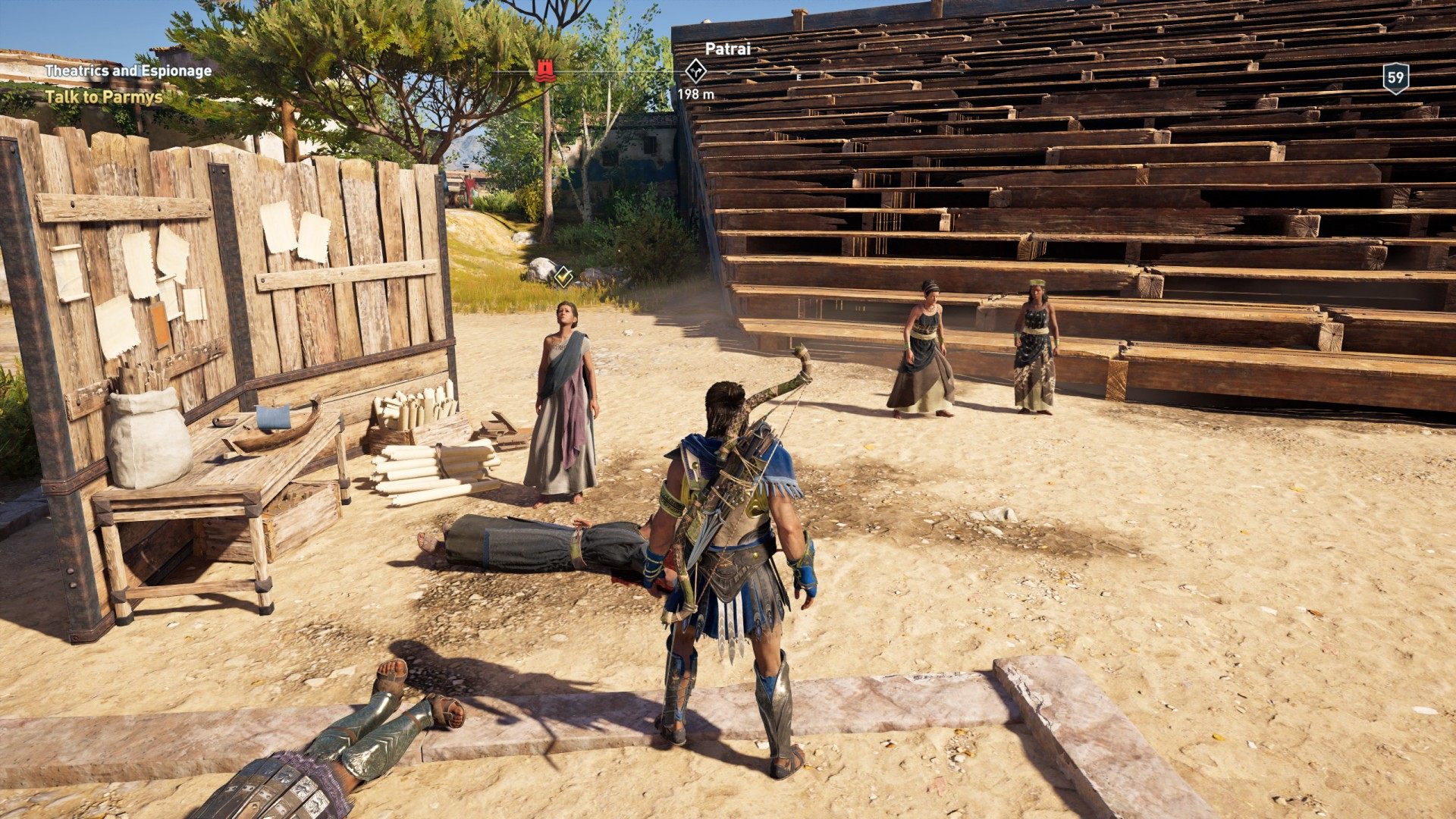 Walkthrough for the quest Theatrics and Espionage in the game Assassin's Creed Odyssey. This page covers all main objectives, key steps, or helpful tips to guide you through the quest smoothly. Whenever possible, the guide points out locations for key items and details interactions with NPCs, among other tips. To ensure maximum clarity, in-game screenshots are included for easy-to-follow visual guidance.