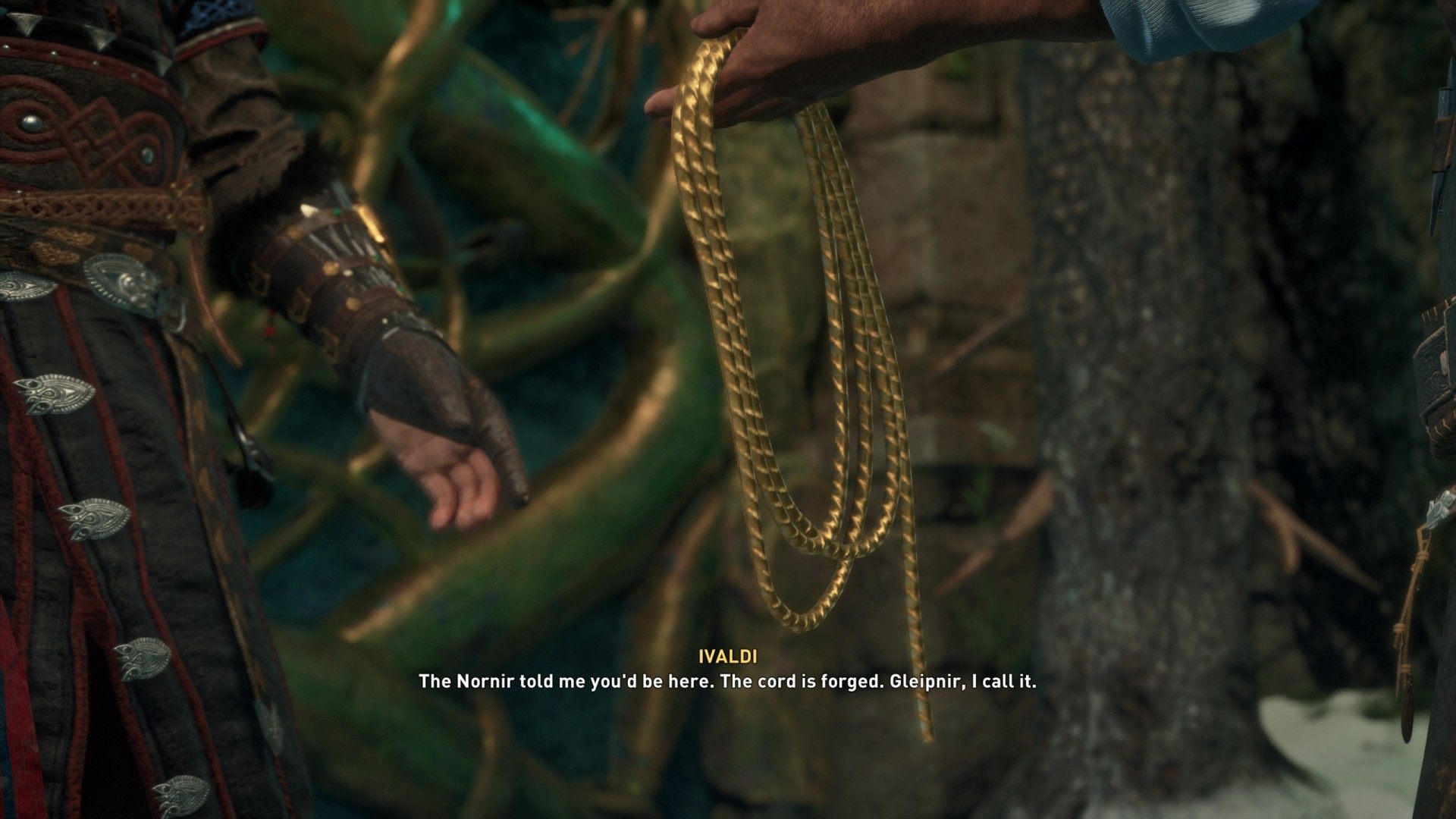 When you arrive in Asgard, Ivaldi will be waiting for you at the gate. He will give you the binding cord, Gleipnir, that he created for you and then you will receive a new quest - "Binding Fate".