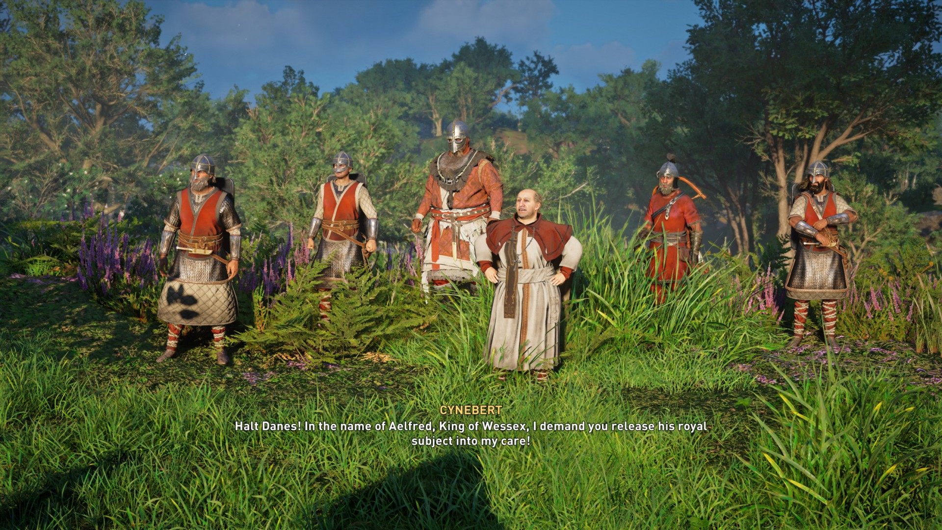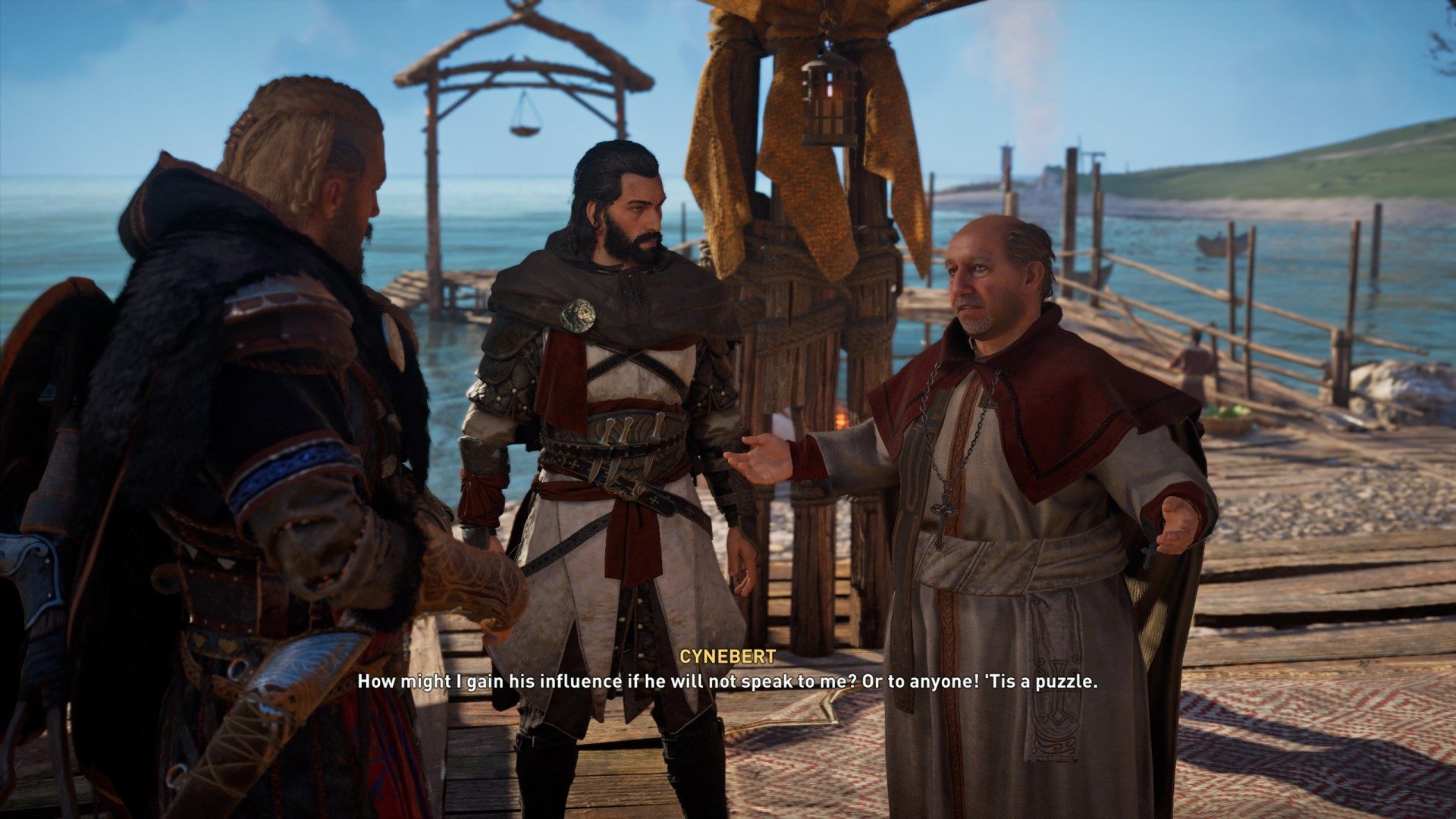 Go to Folcanstan and talk to Cynebert and Basim, whom you will find at the docks. To convince the future ealdorman to cooperate with the abbot, you will decide to implement a plan in which you and Basim will kidnap him so that the abbot can then set him free.