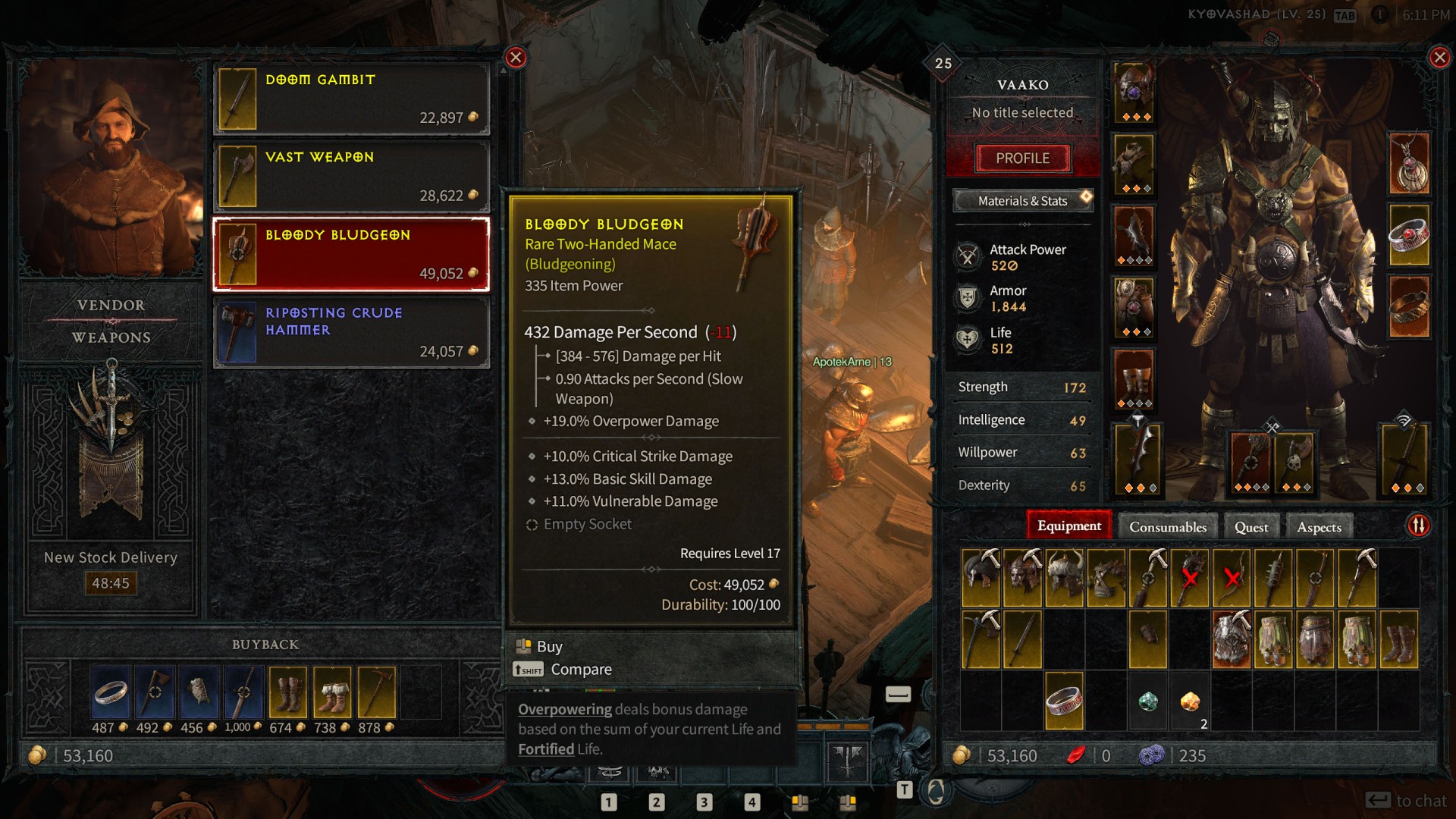 Merchants offering new weapons. Here you can use the gold you hold and buy new weapons as well as sell items you don't need. Their stock changes over time. A timer displayed on the vendor's screen tells you when a new stock will be available.