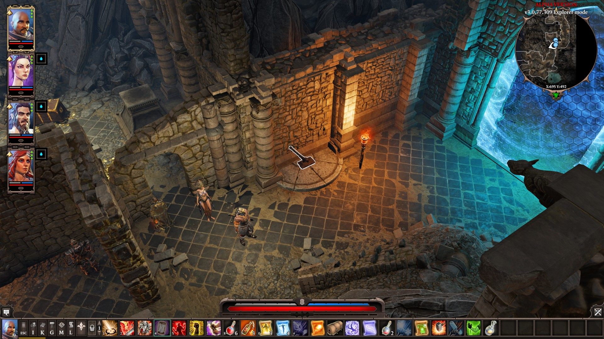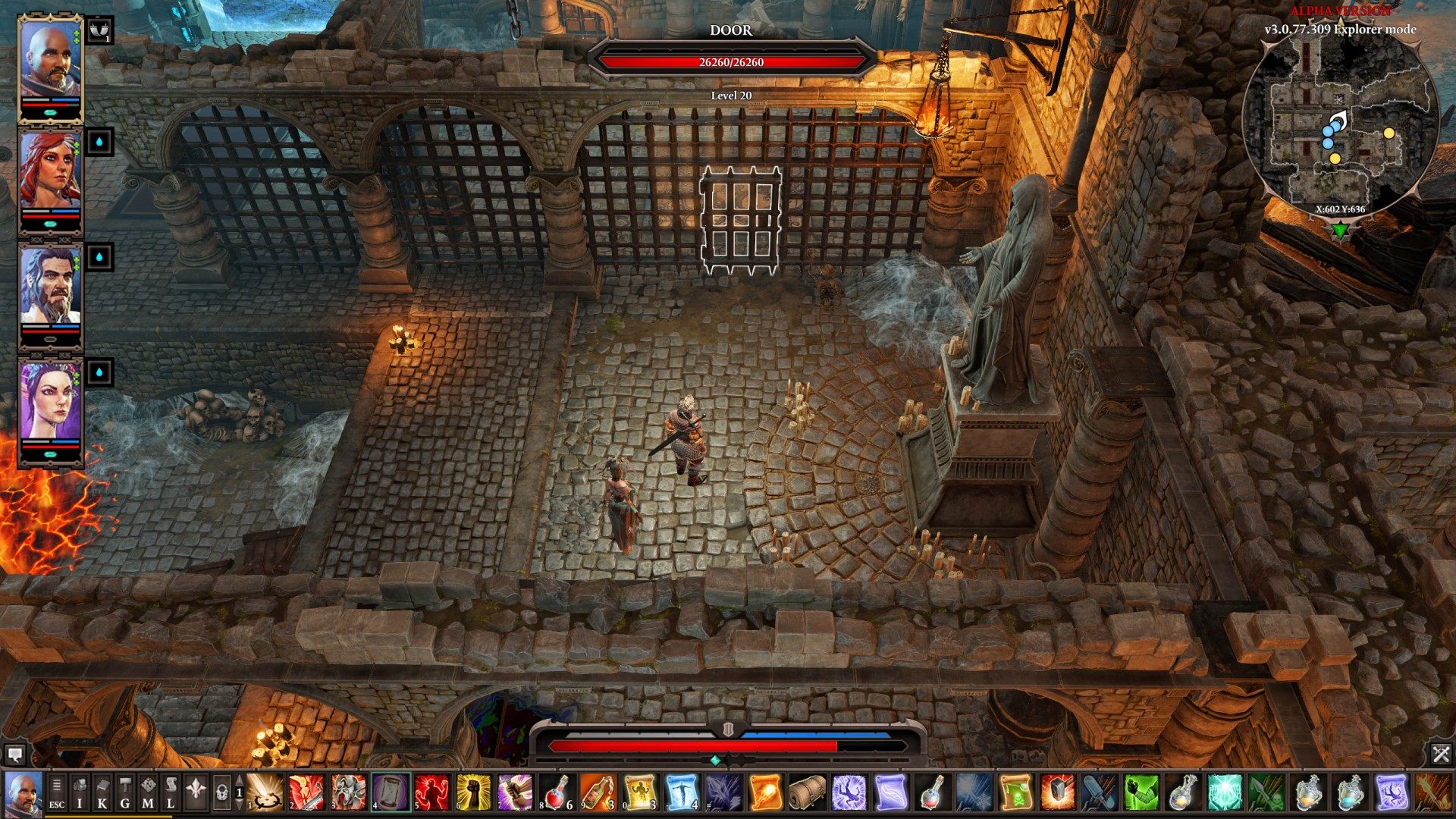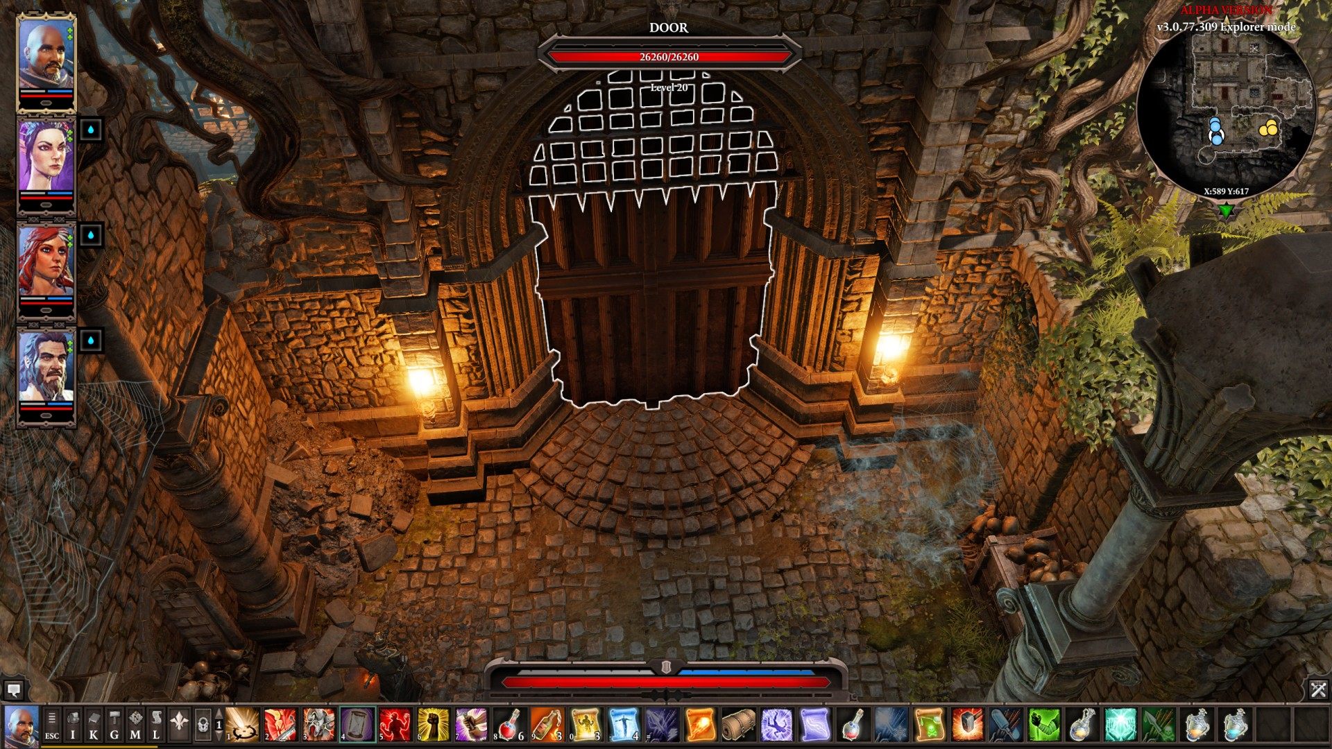 Show the mapDoor is locked but you can unlock and open it by placing one of your characters onto nearby tile. You can set it in such a way that it does not get hurt from passing fireballs.
