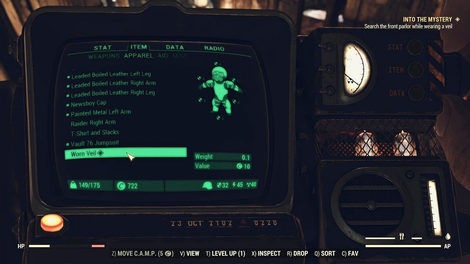Equip the Worn Veil.