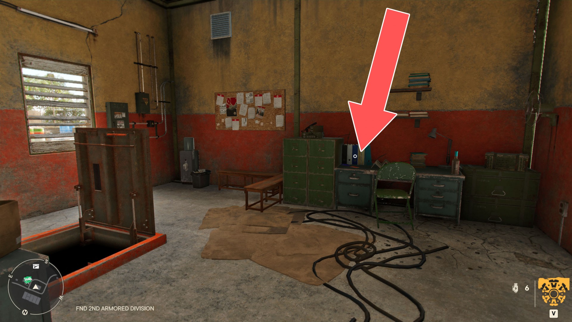 It is in the bunker. To get here you will need a key which is located in the building above the bunker. It is on the table near the hatch to the bunker.