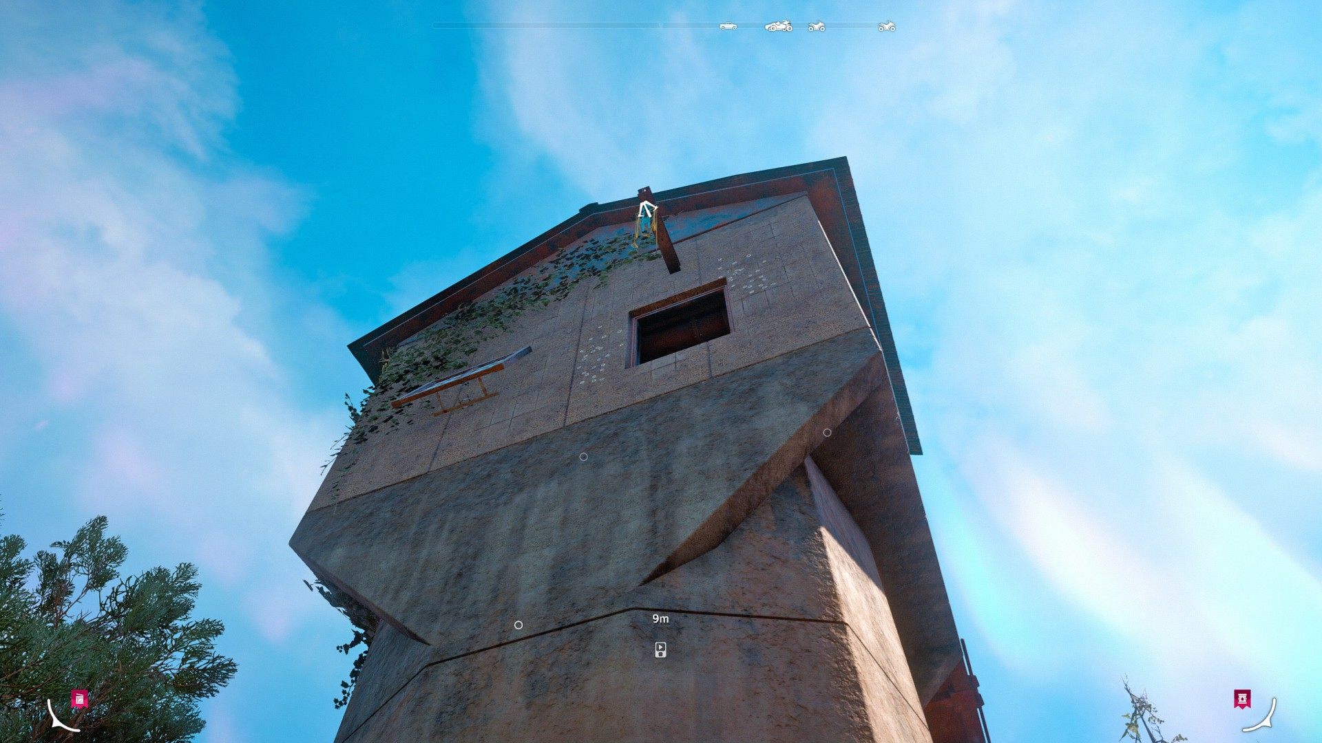 Approach the building from the lake side. To get to the window you have to use a grappler.