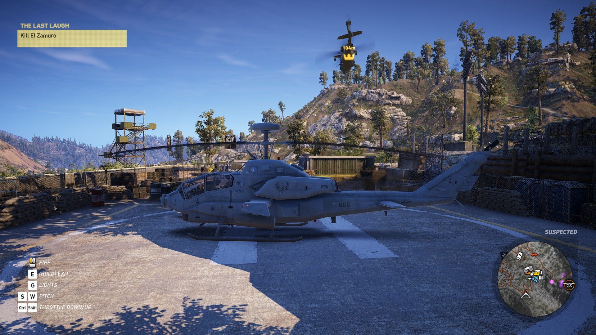 There is an Unidad gunship heli nearby. Use it to shoot down El Zamuro's chopper.