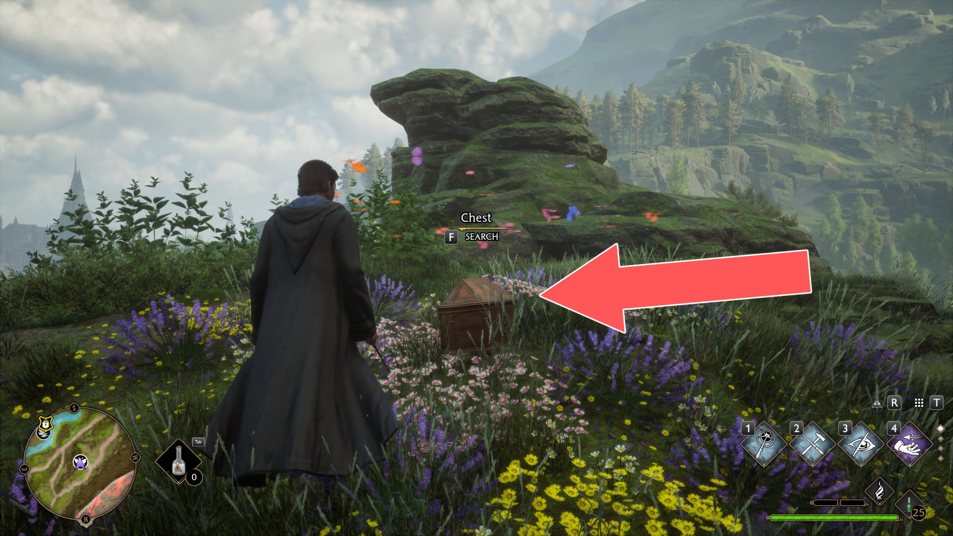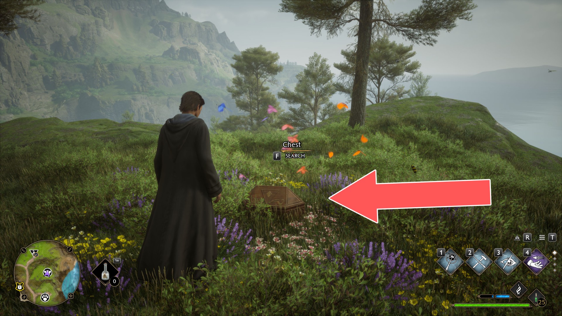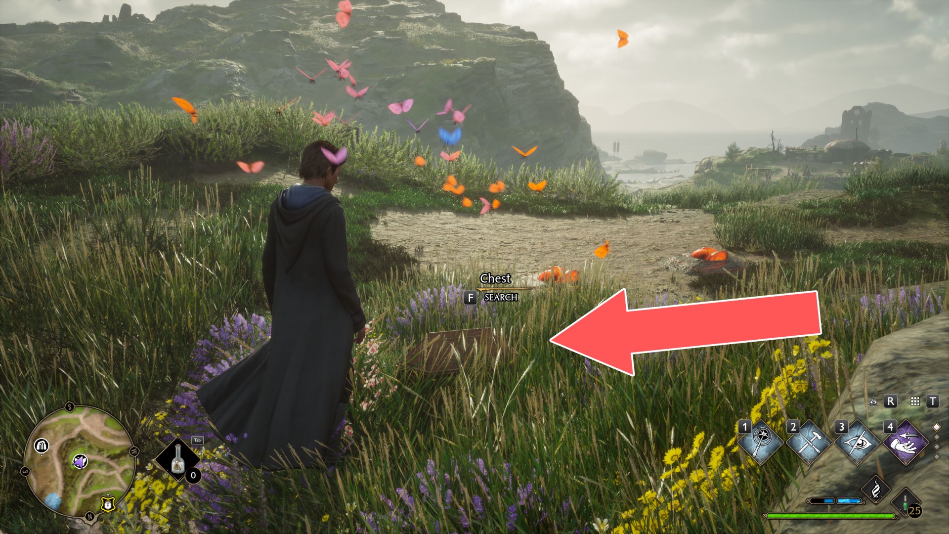Butterflies are an additional activity available in Hogwarts Legacy, through which you can get access to 15 chests containing conjuration items. First you need to find a group of butterflies flying in the air and get close to them. They are not very well visible, but when you get close enough you should notice their icon on the mini map.