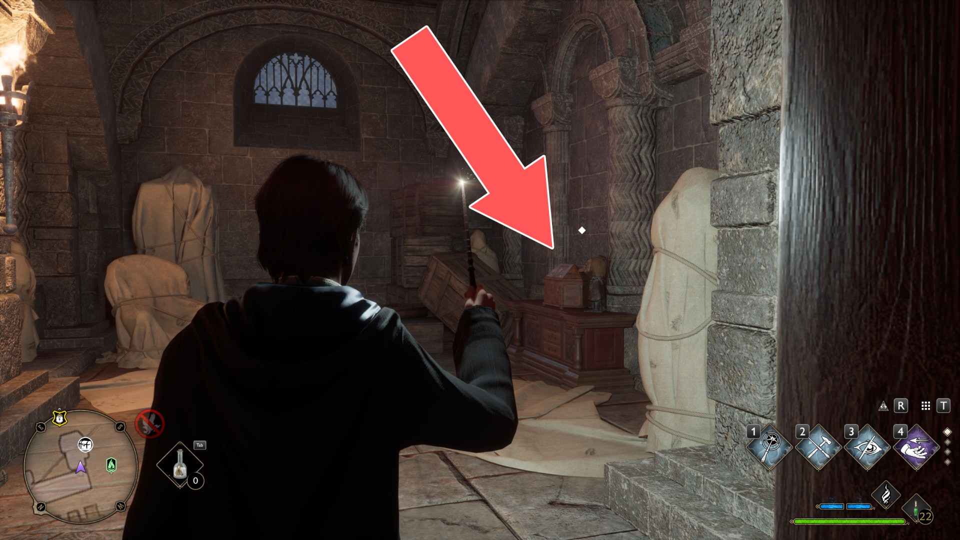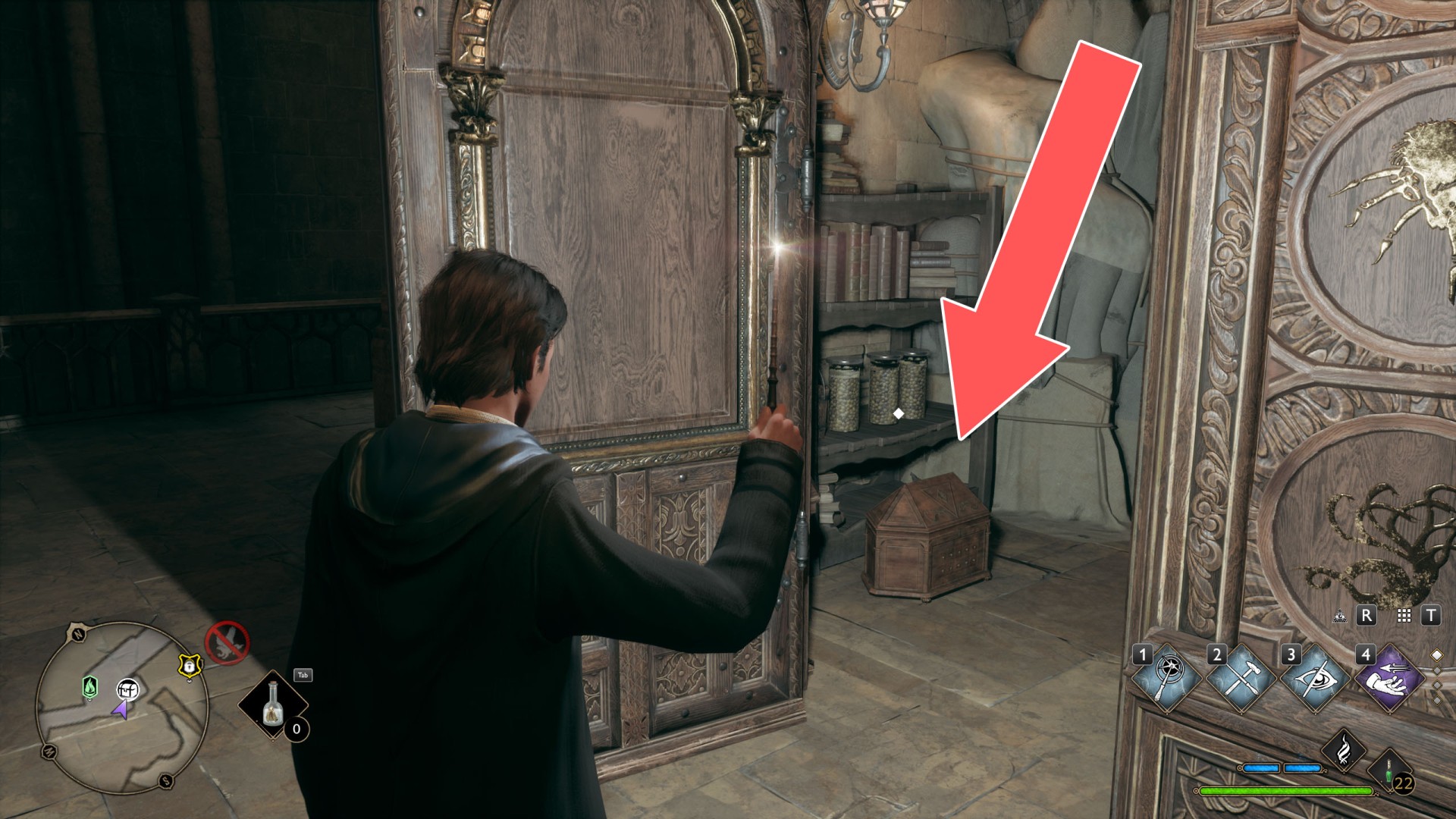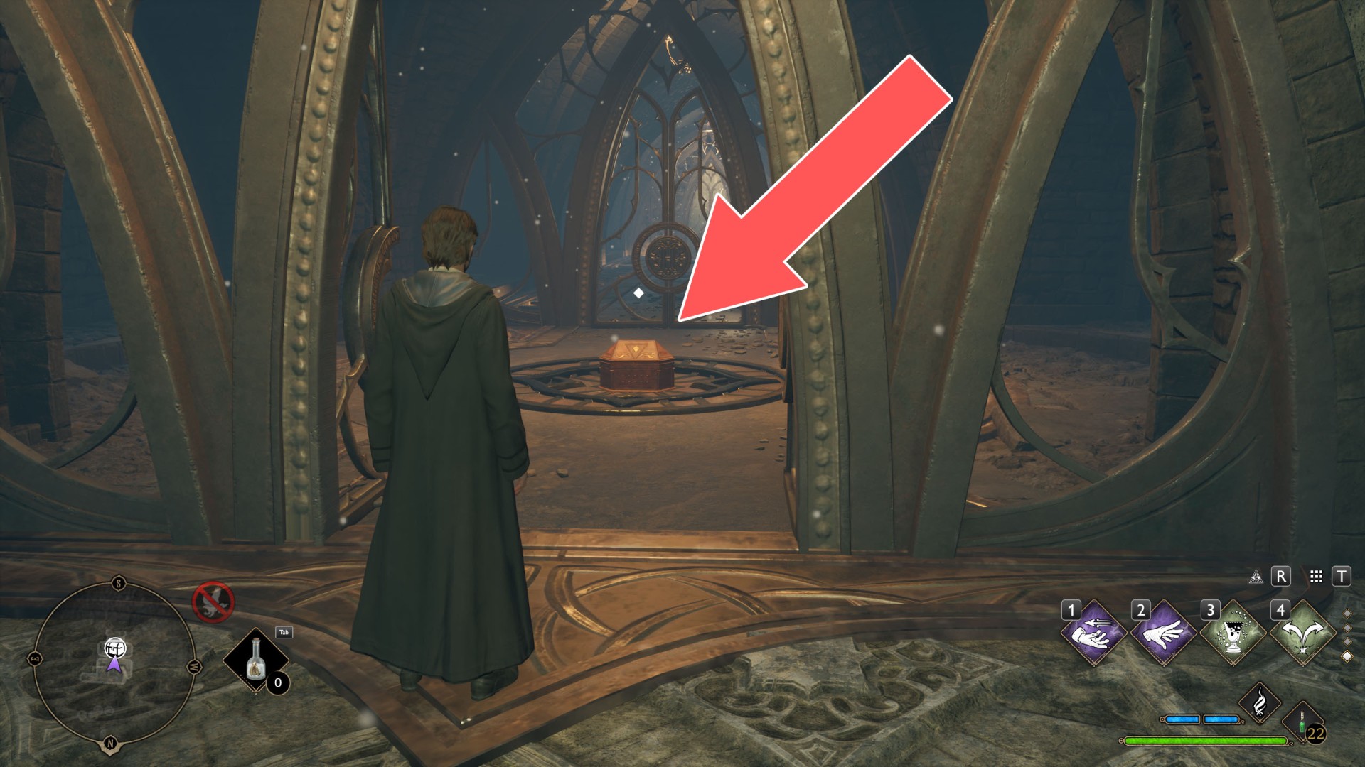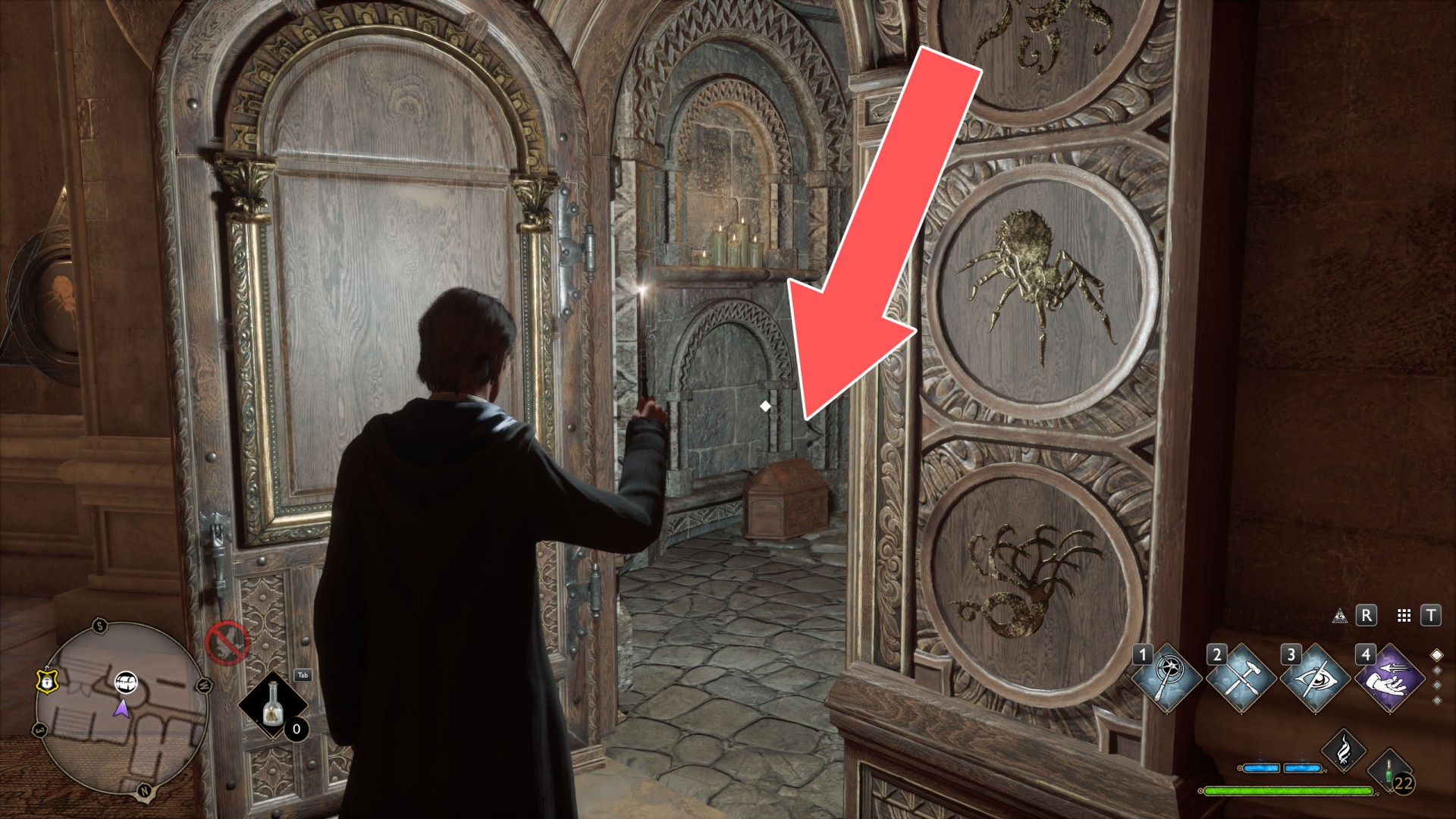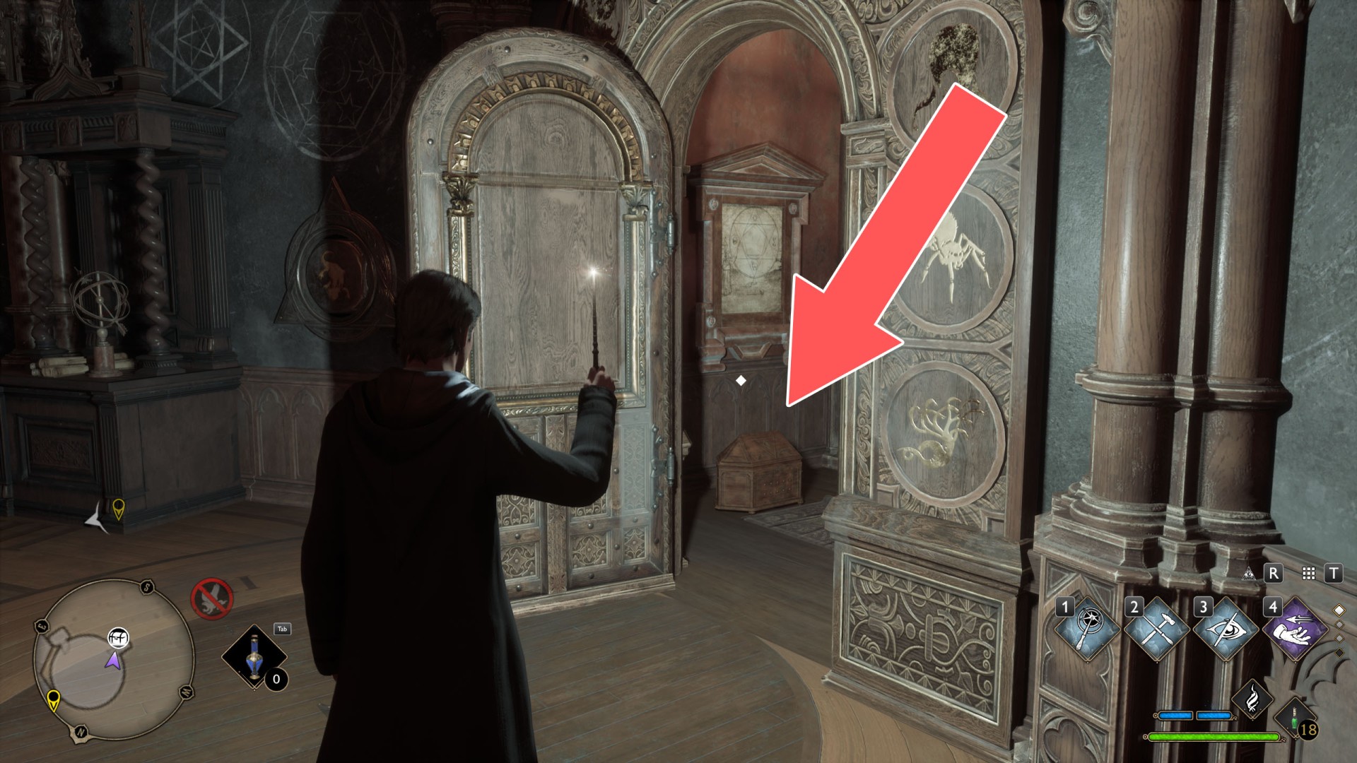 Show the mapTo enter this room you must use the Arresto Momentum or Glacius spell and stop the large pendulum of the clock in a position that obscures the symbol shown on the door.