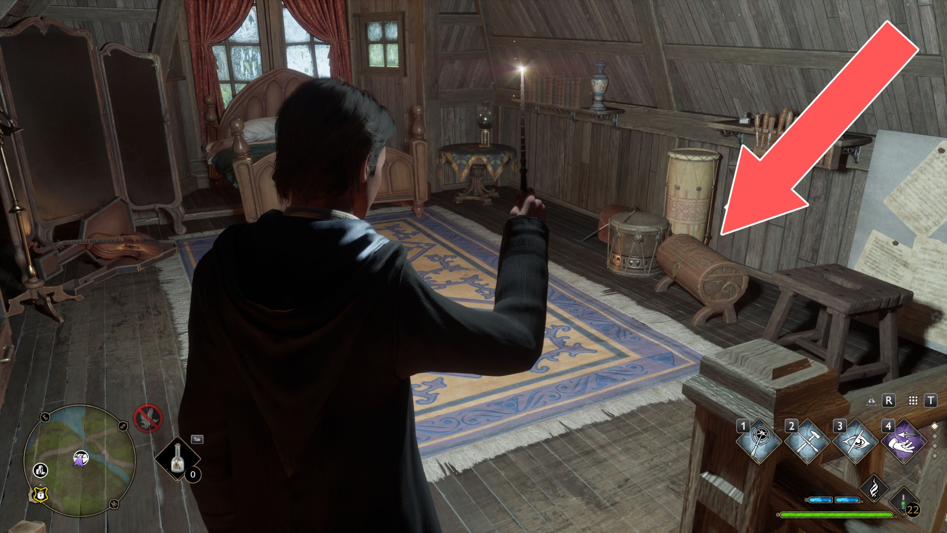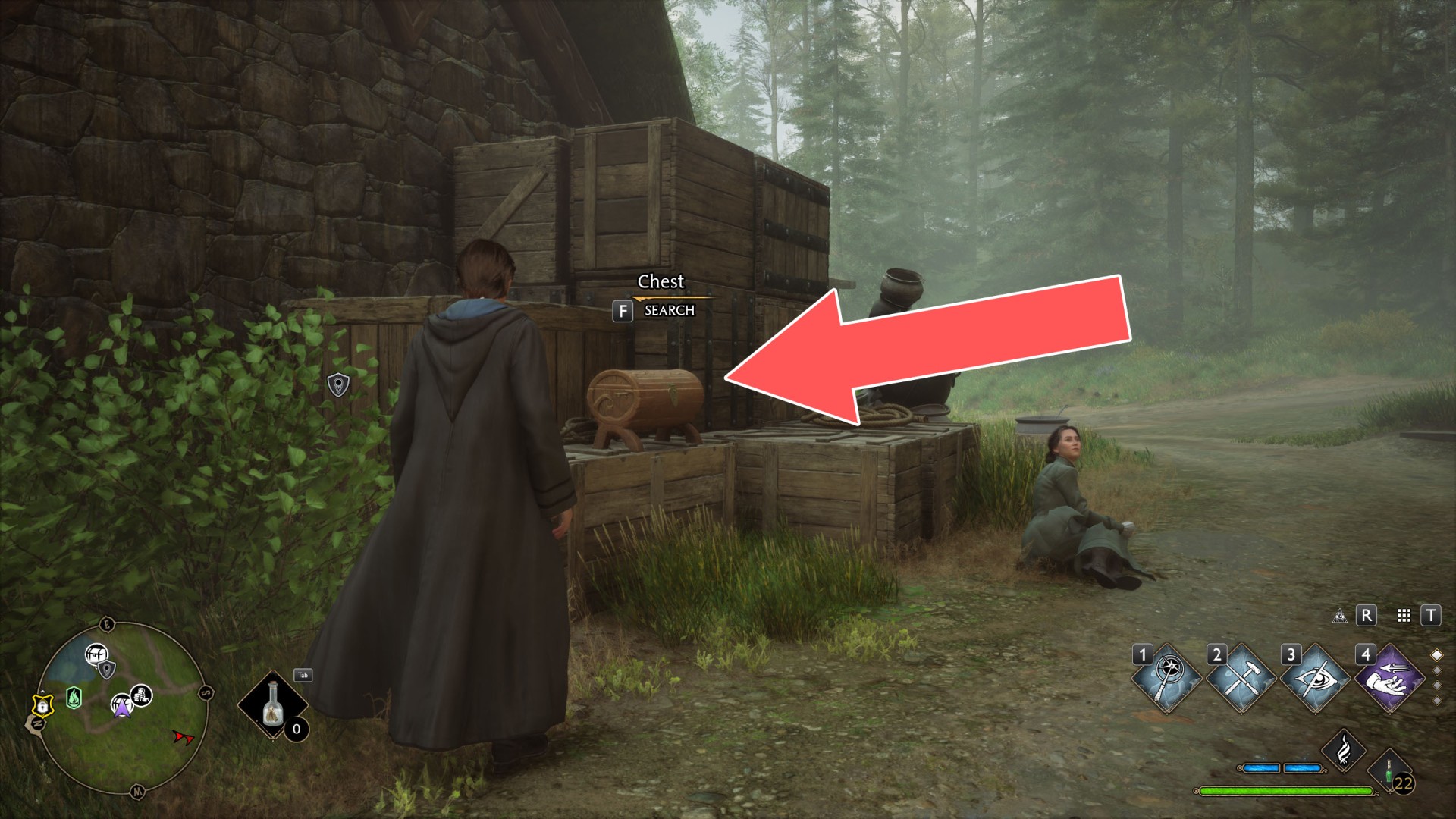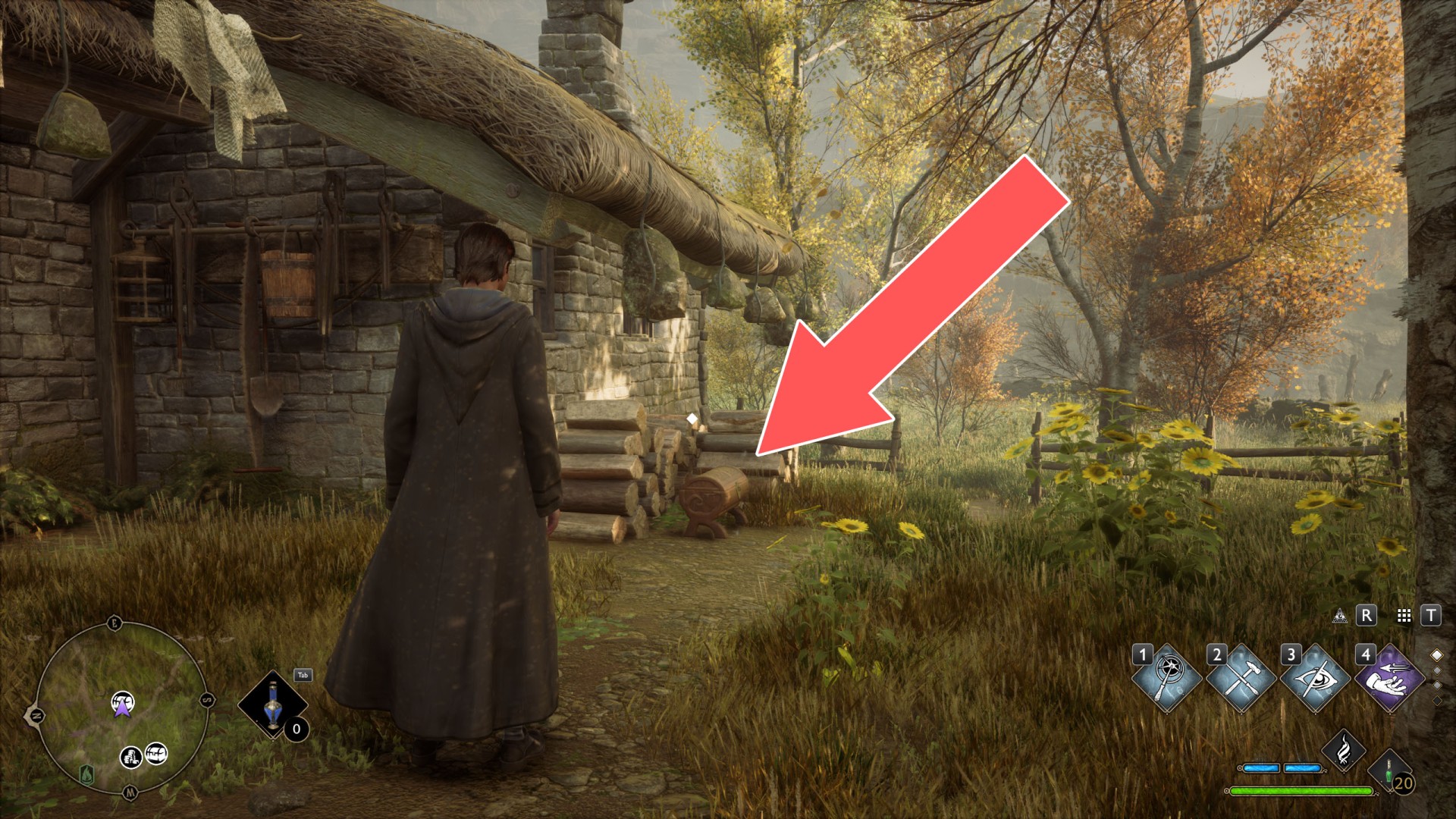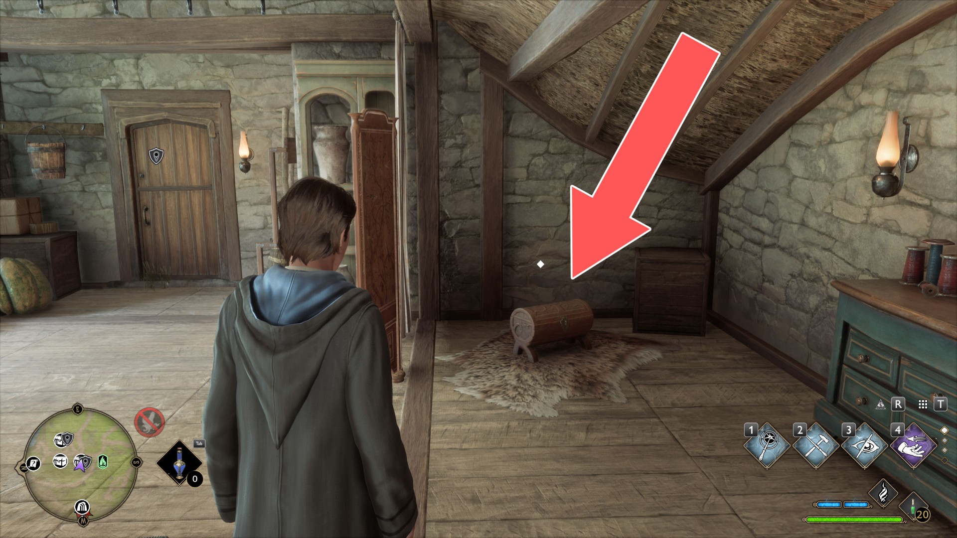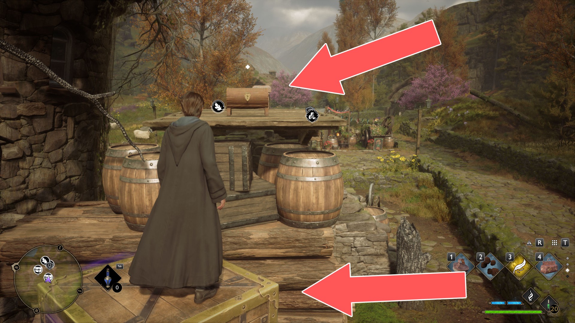 Show the mapTo get to the platform where the crate is located, use Levioso and Accio to properly position the large crate you find against the wall of the house. Then you'll be able to climb up it to the platform.