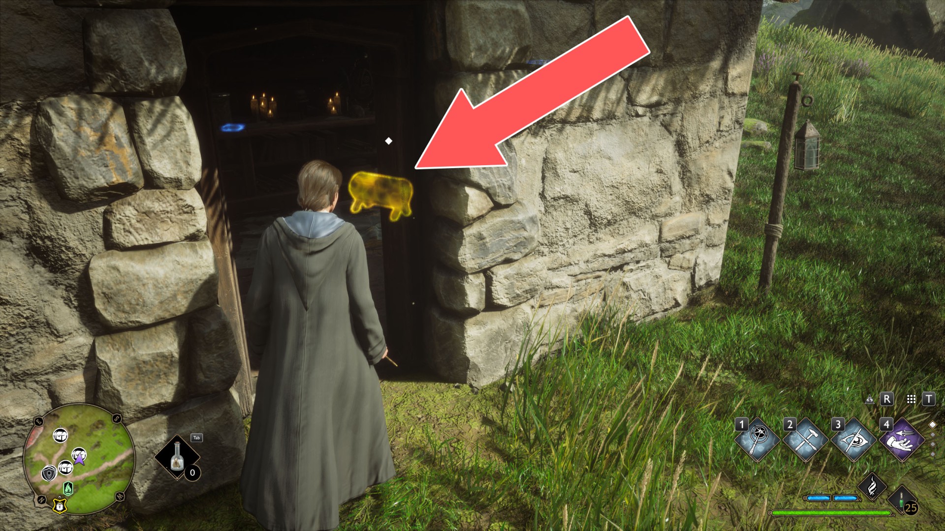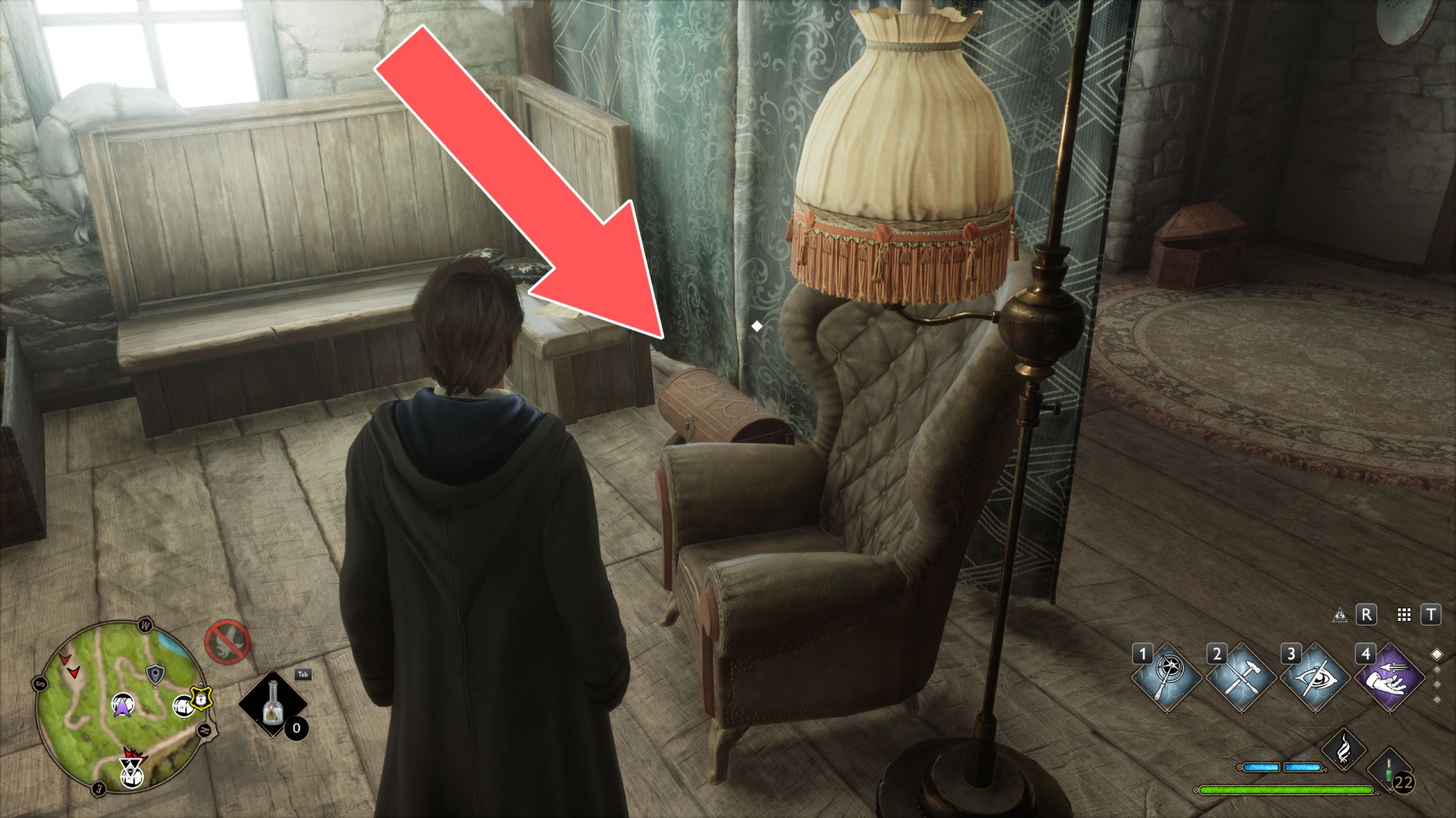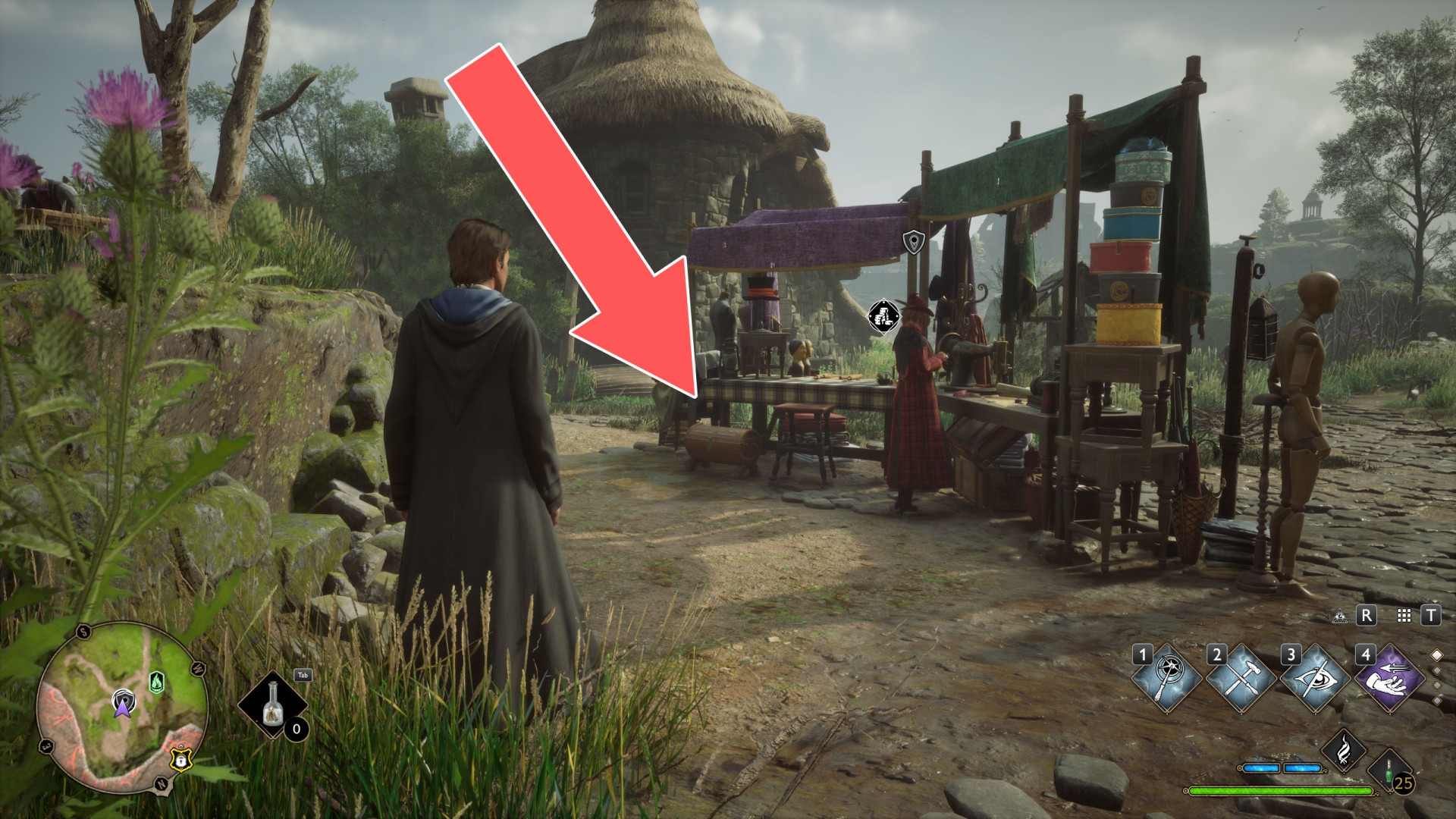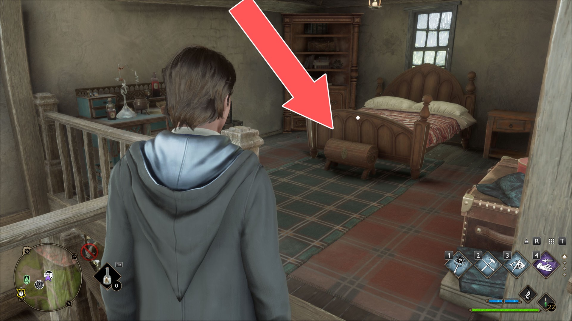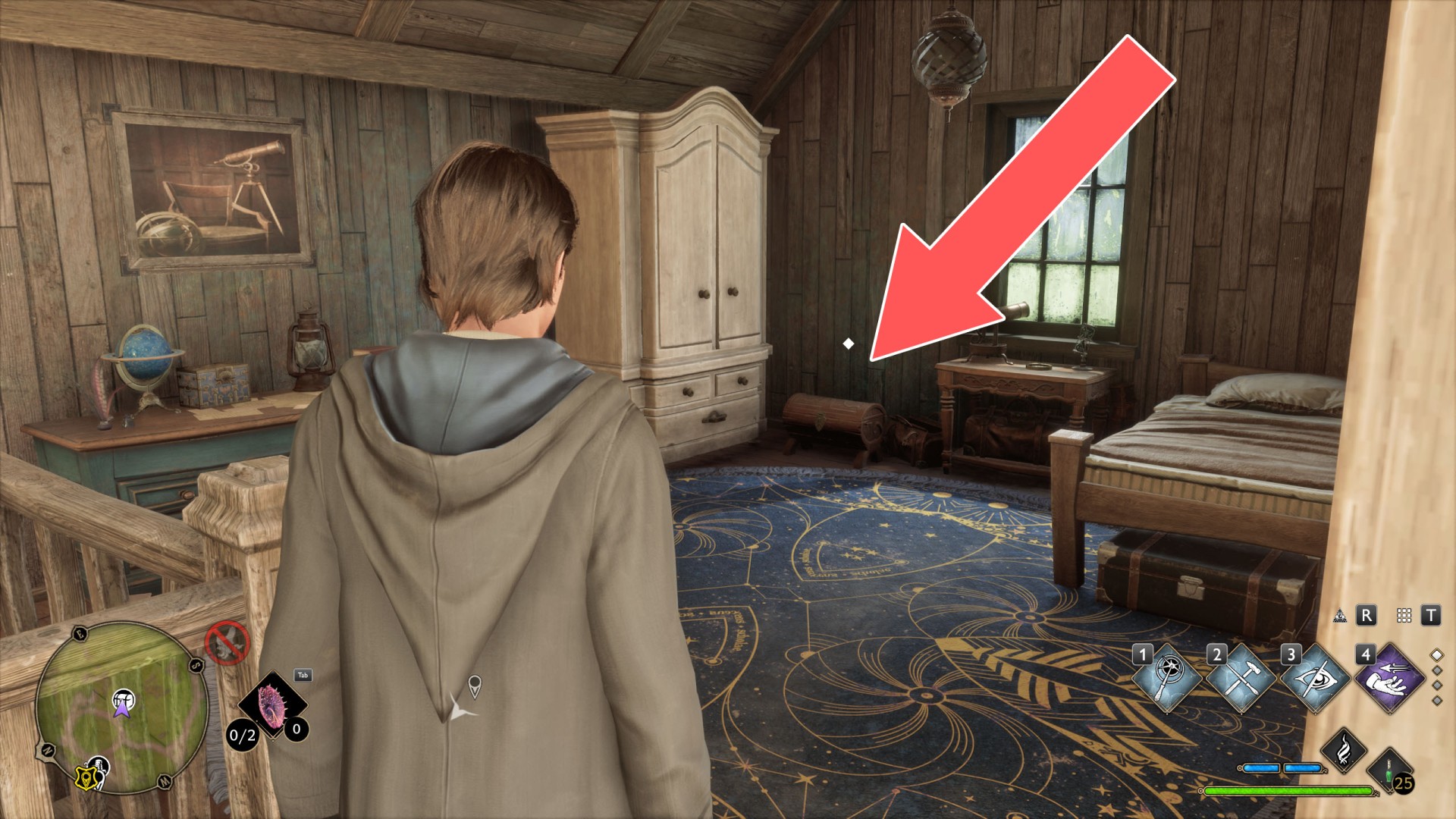 Show the mapTo get to the platform where the crate is located, use Levioso and Accio to properly position the large crate you find against the wall of the house. Then you'll be able to climb up it to the platform.
