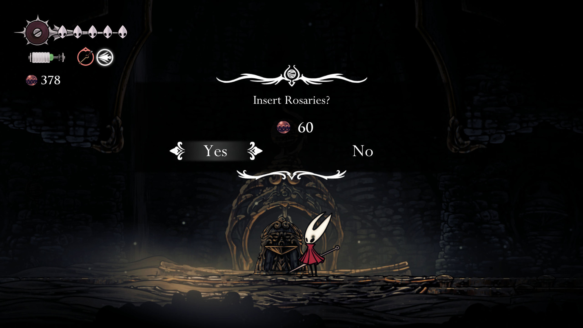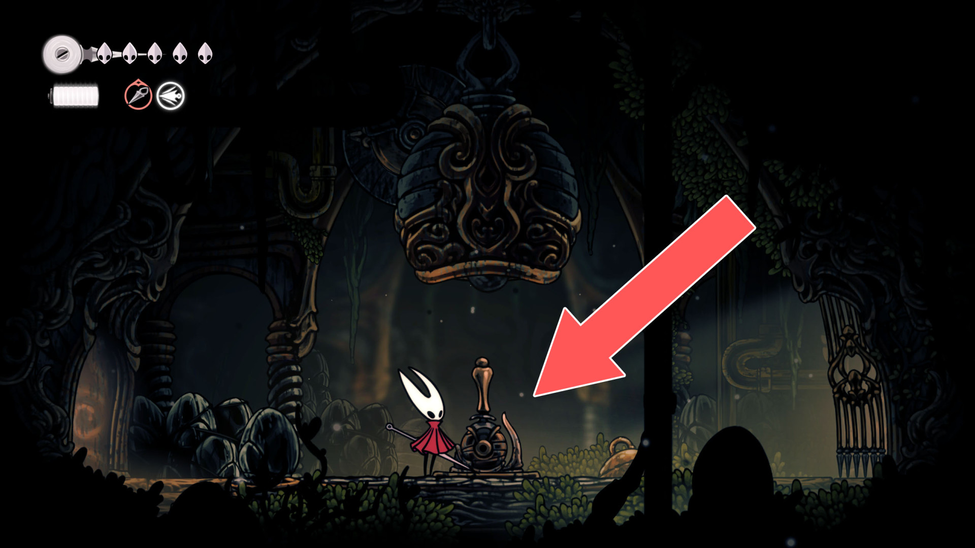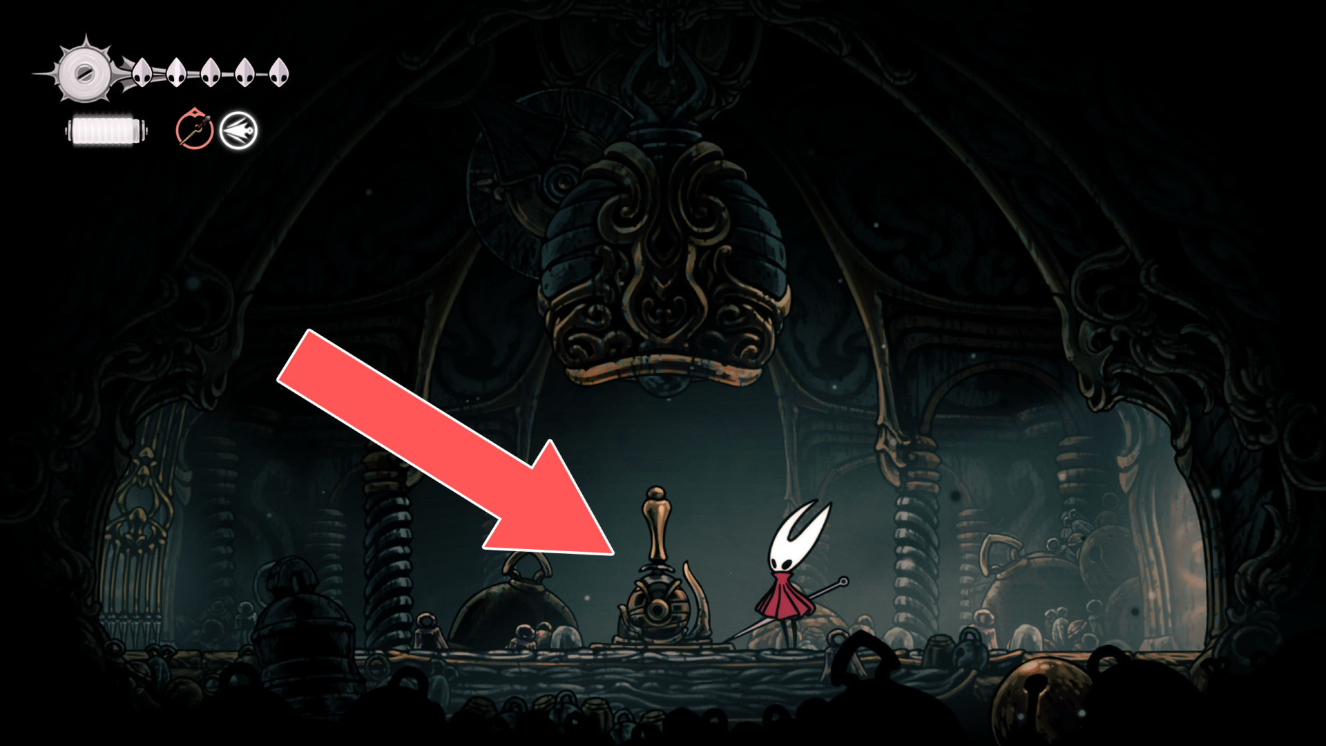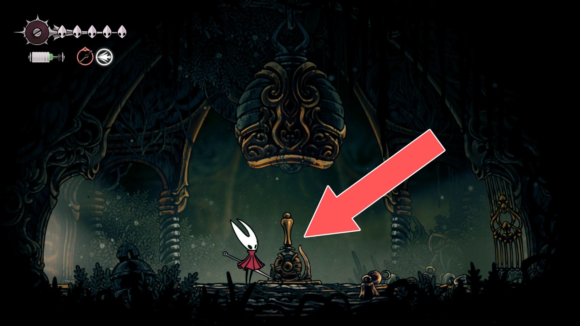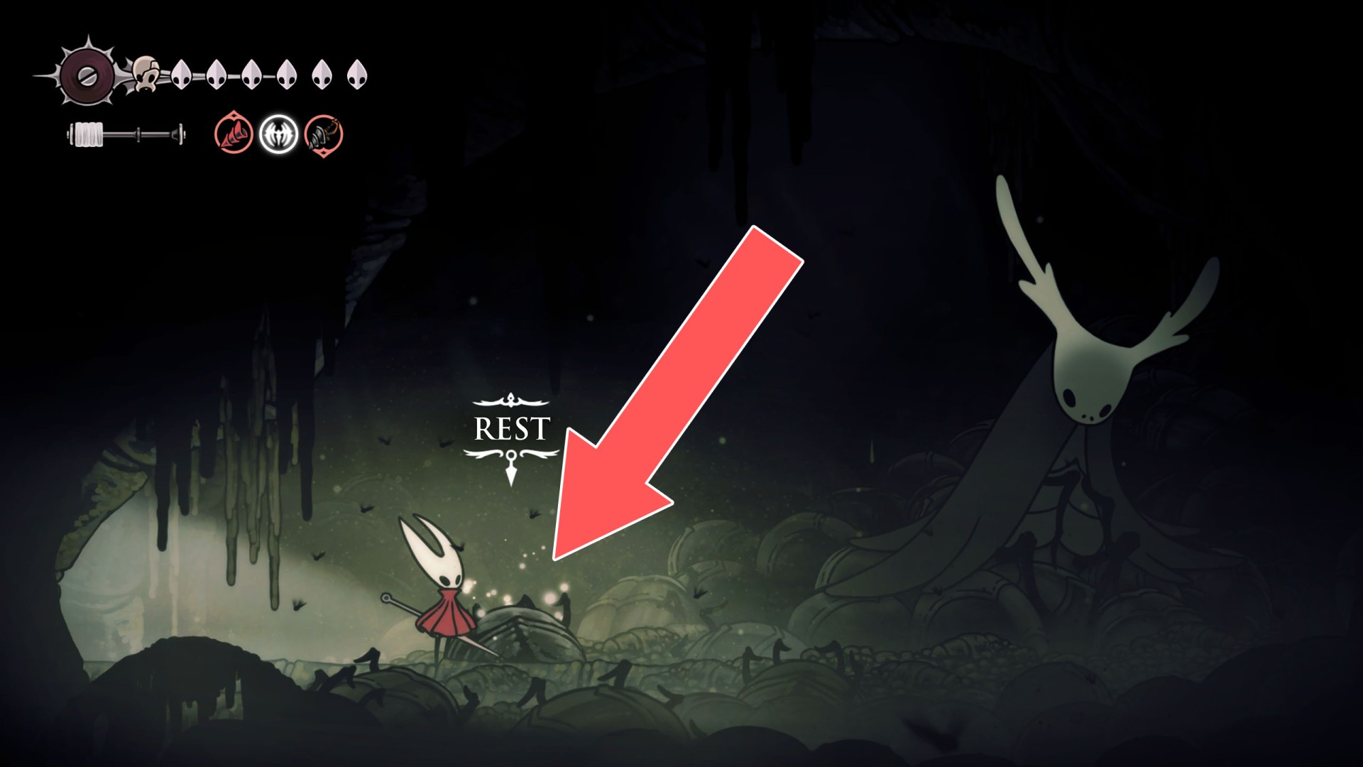 In Hollow Knight: Silksong, benches are checkpoints where Hornet can rest, fully restore health, refill equipped Tools with Shell Shards, and swap Tools or Crests. They serve as spawn points after death or quitting, with some requiring Rosary tolls to access.