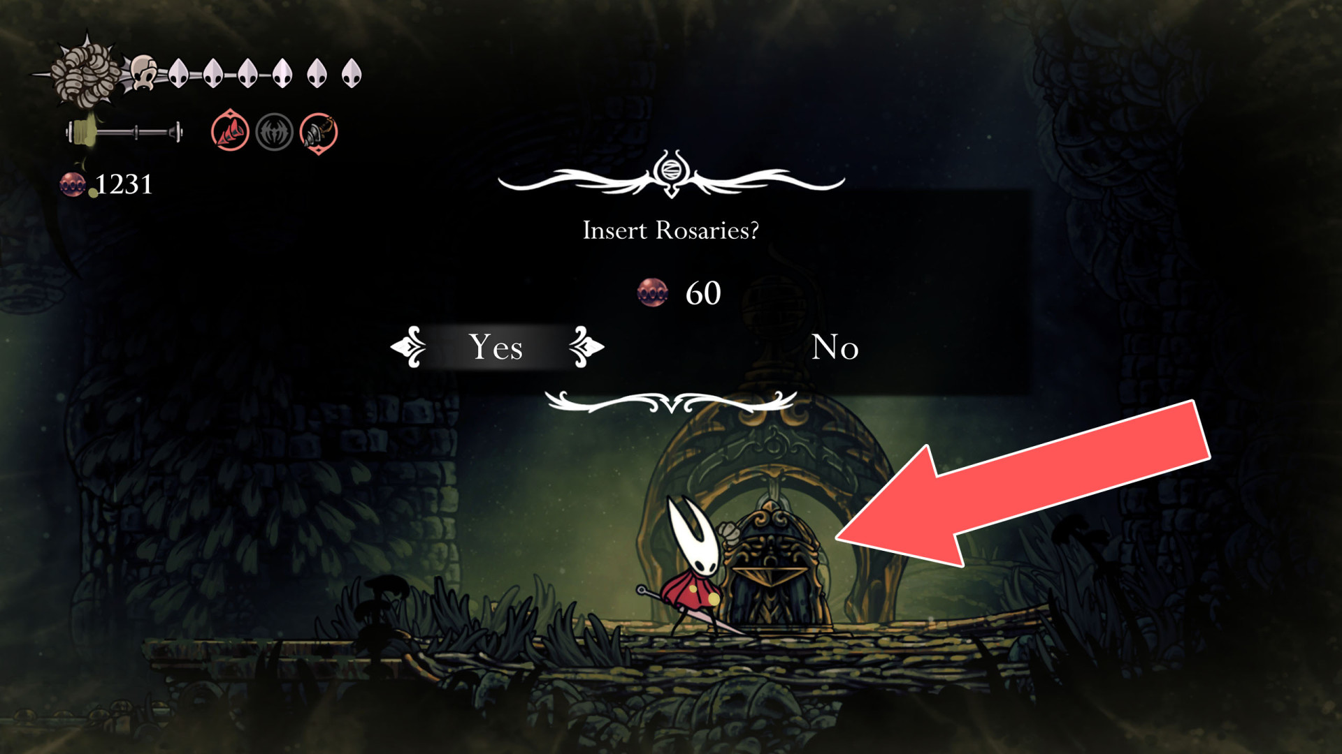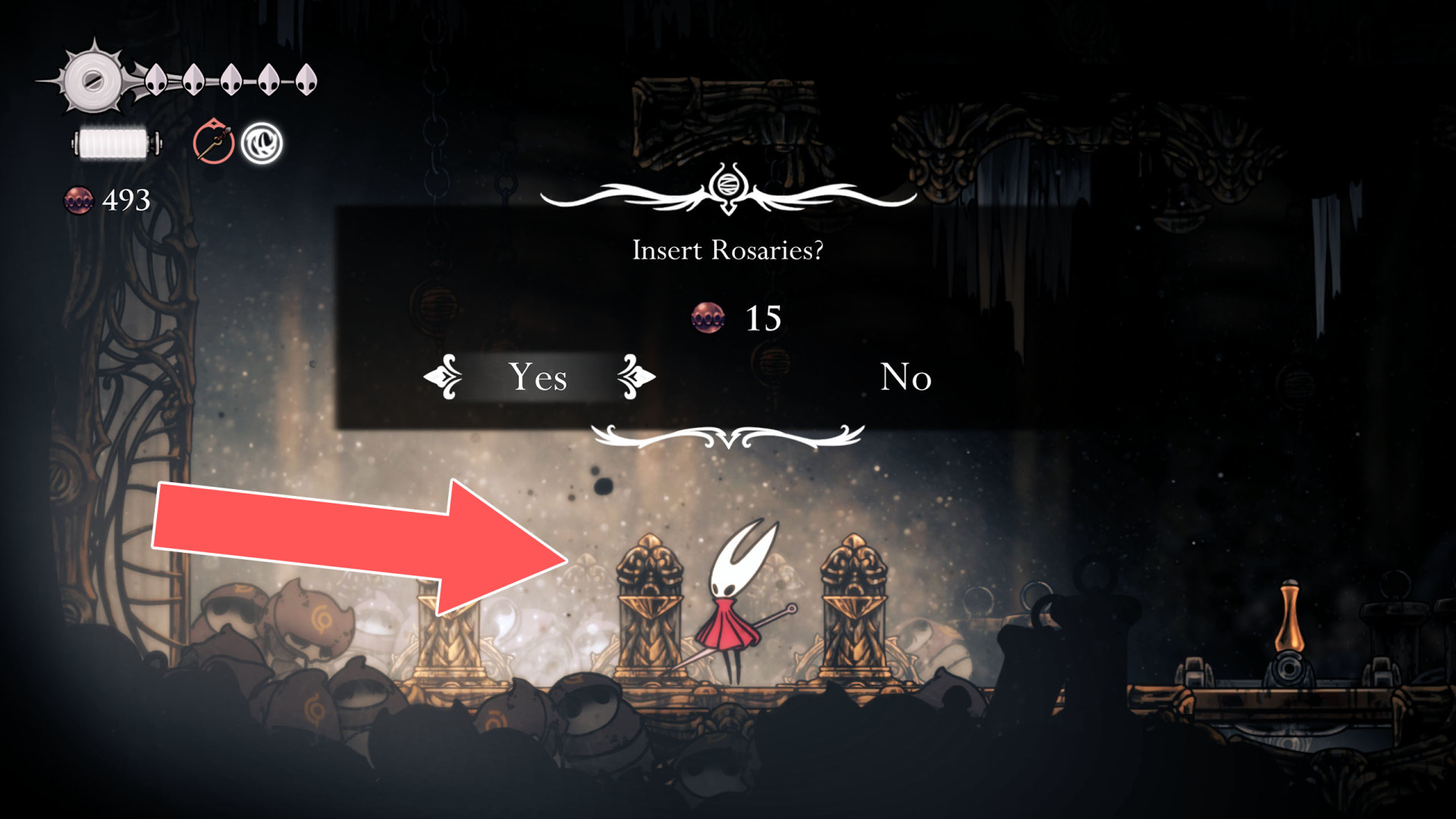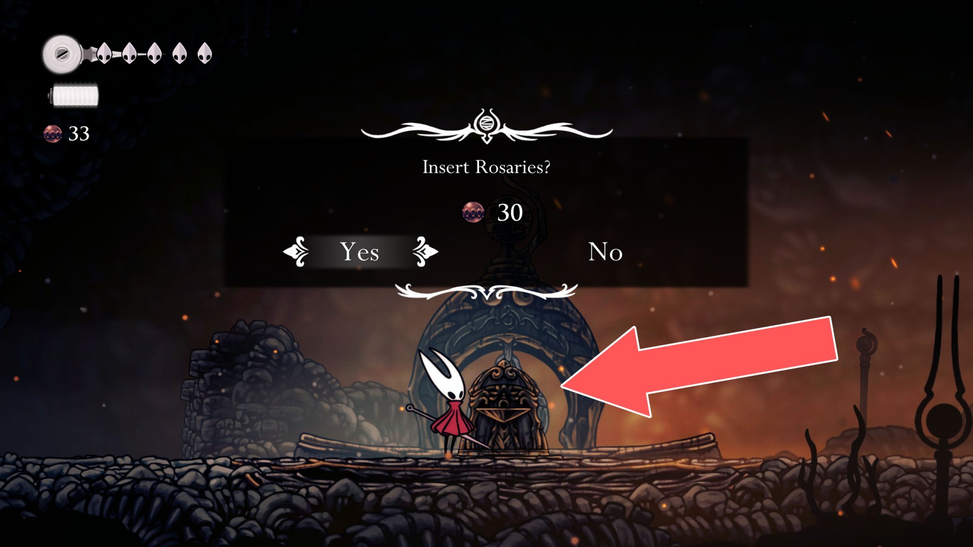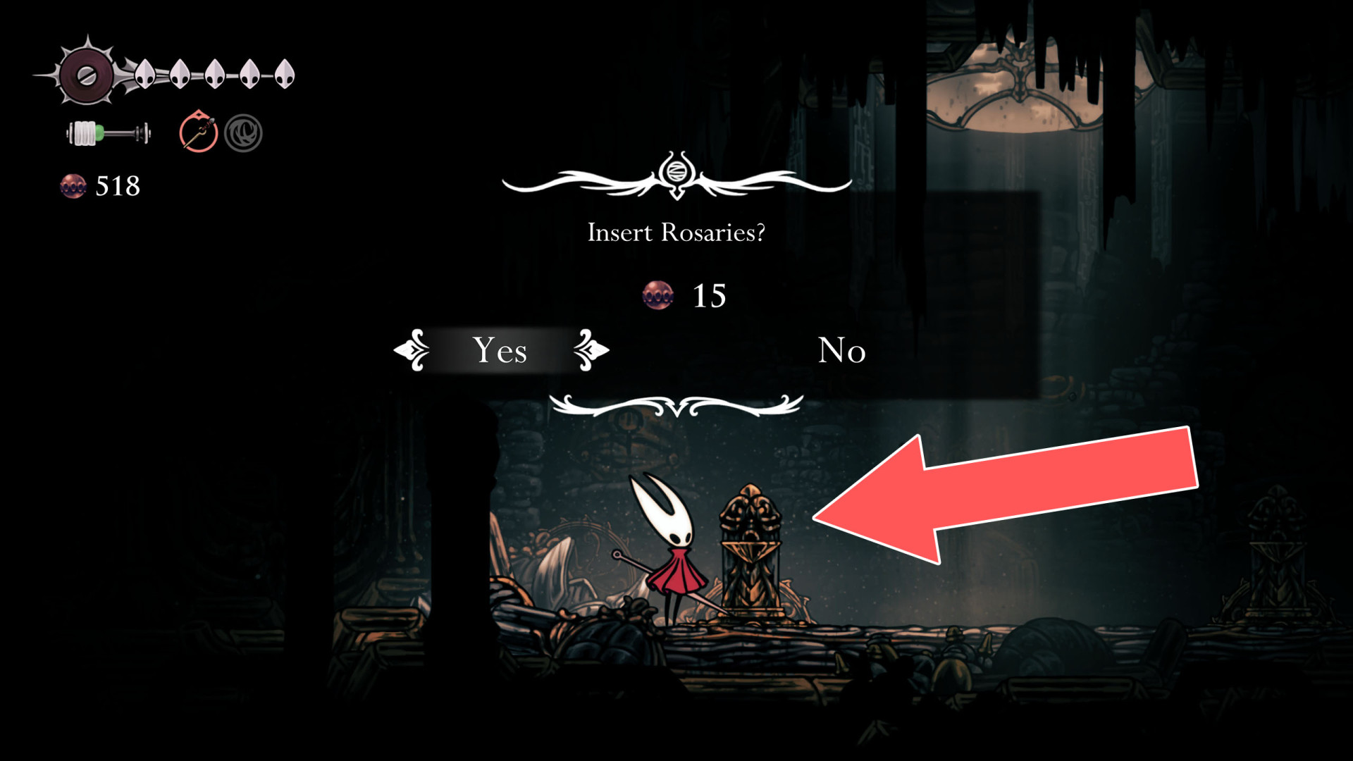 Show the mapUnlock cost: 40 Rosaries. But first, you need to unblock the Jammed Cog Wheels.
