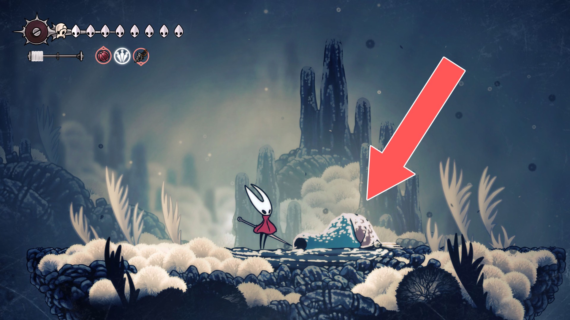 Show the mapYou will encounter him here and will have to defeat him to complete the Fatal Resolve wish. Hit her several times to wake her up, then talk to her to start the fight.