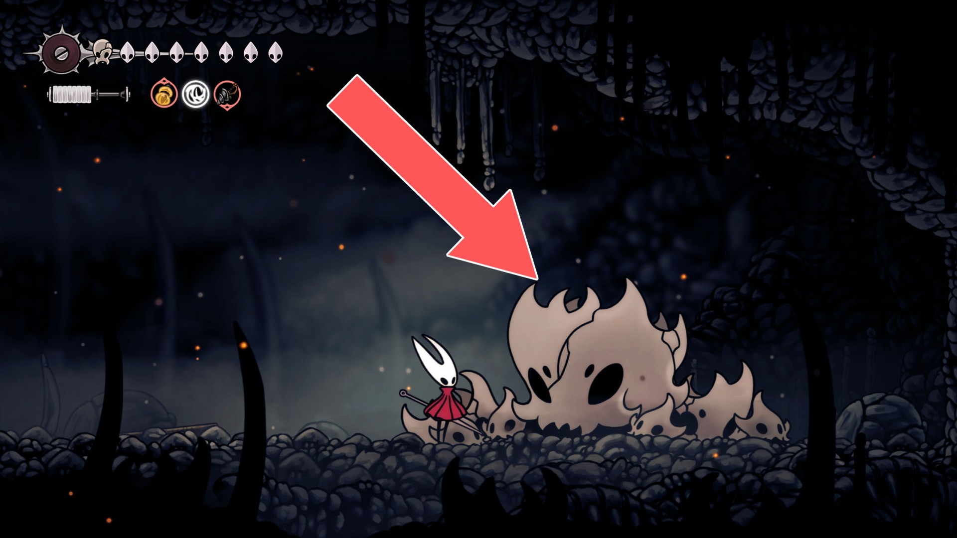 Show the mapThere is a chance that after defeating the first Skull Tyrant another one will spawn here some time later, after resting at the bench located here.