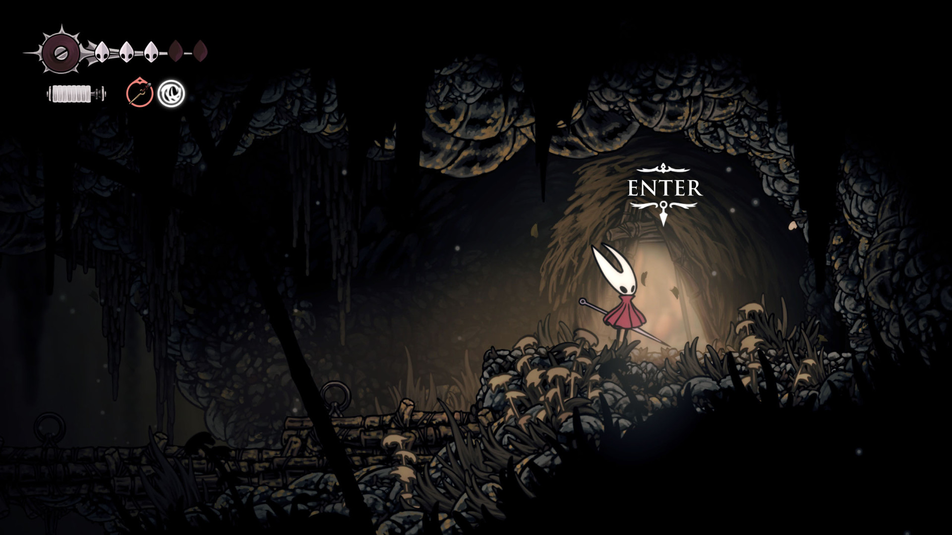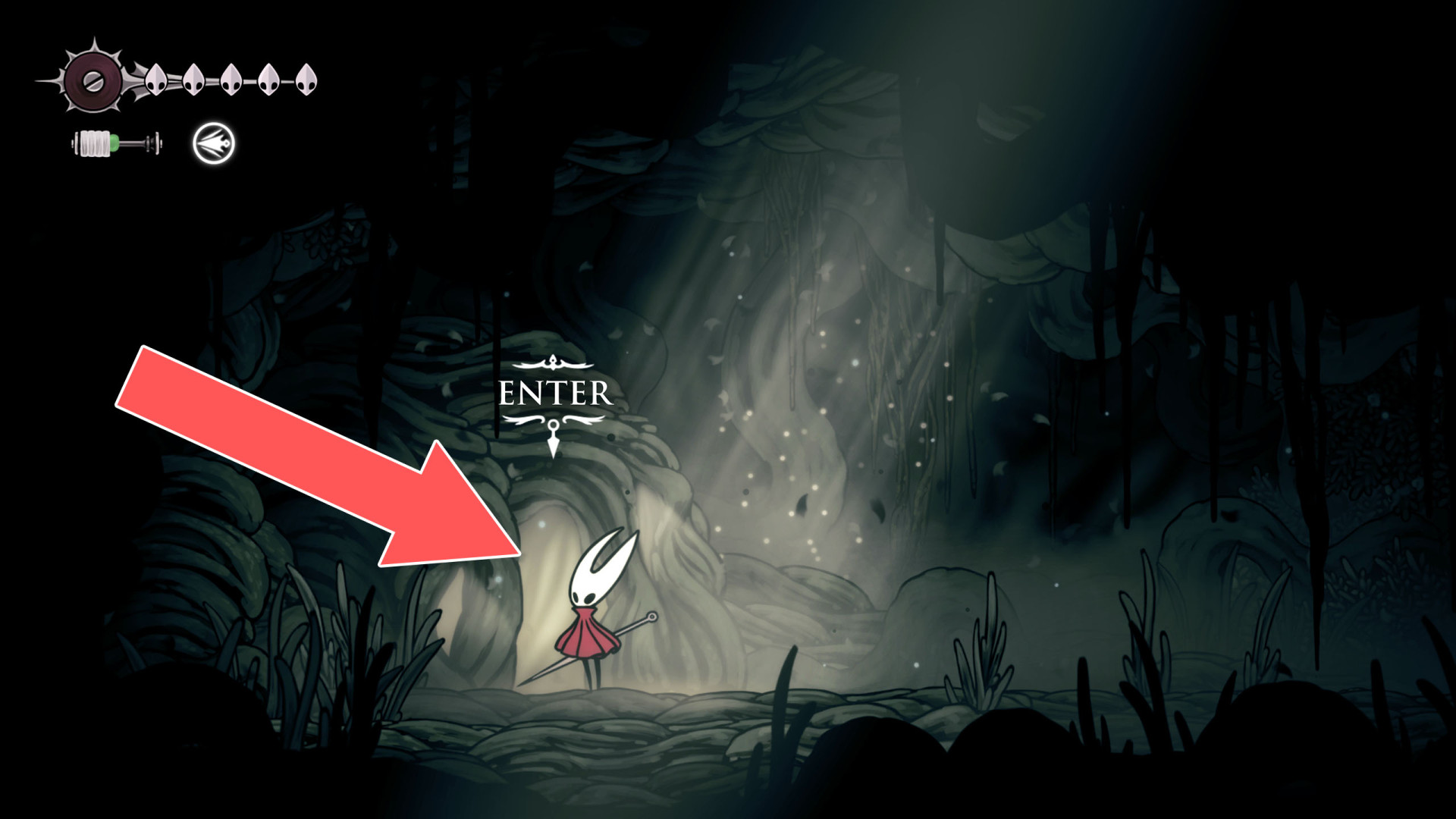Show the mapYou can enter here during the main task "The Old Hearts." Use the ability Elegy of the Deep (Needolin Upgrade) to open the entrance.