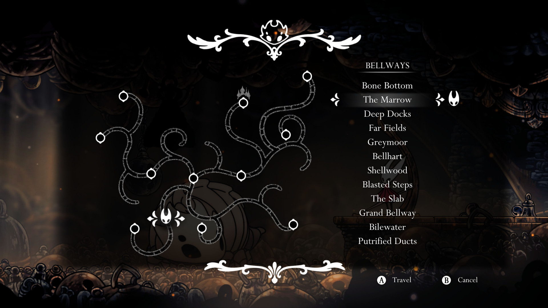 Unlocking the Bellways requires players to travel to Mosshome, located at the top of the Moss Grotto area, to obtain the Silkspear ability. With this ability, players can reach the Bell Beast and cut through the silken bindings that restrain it. Once freed, the Bell Beast must be defeated in combat before it will cooperate. Afterward, players can use the platform beside the Bell Beast to fast travel to any discovered Pharloom Bellway station.