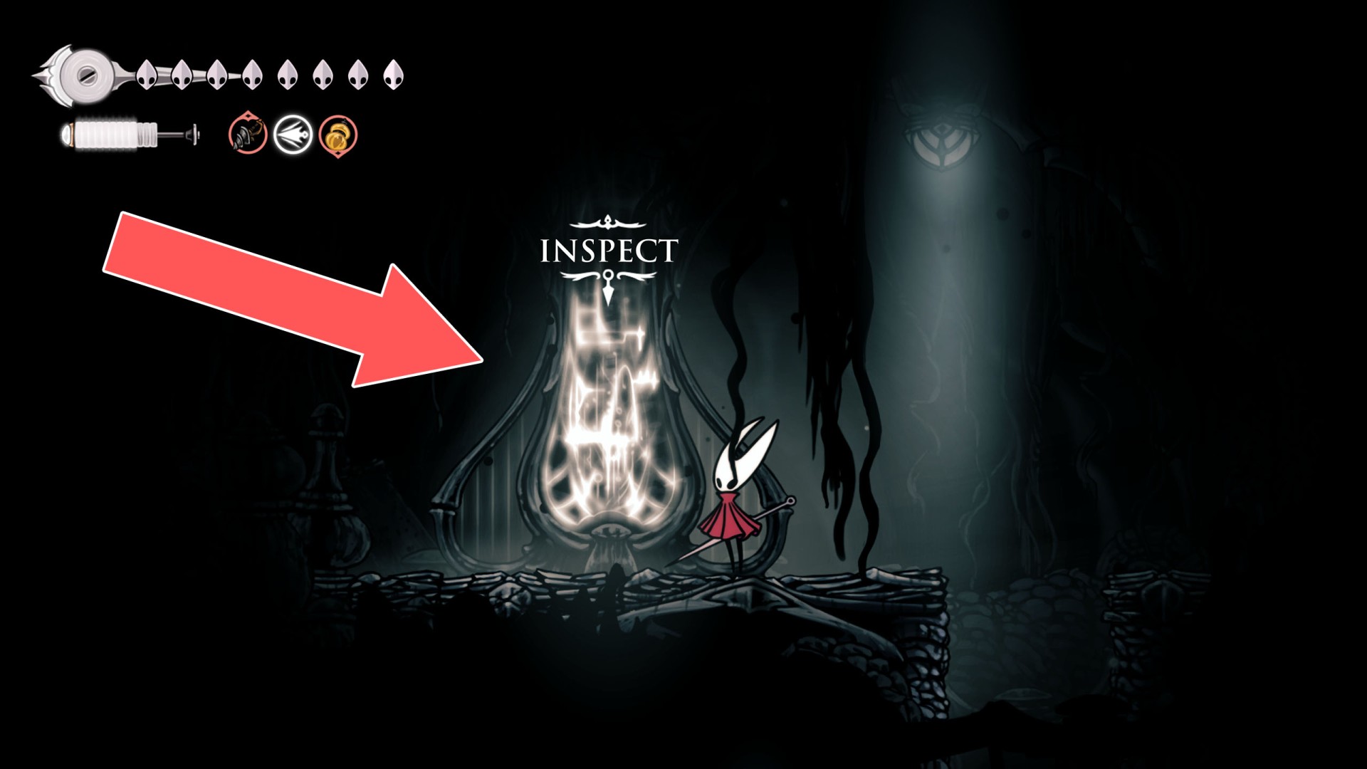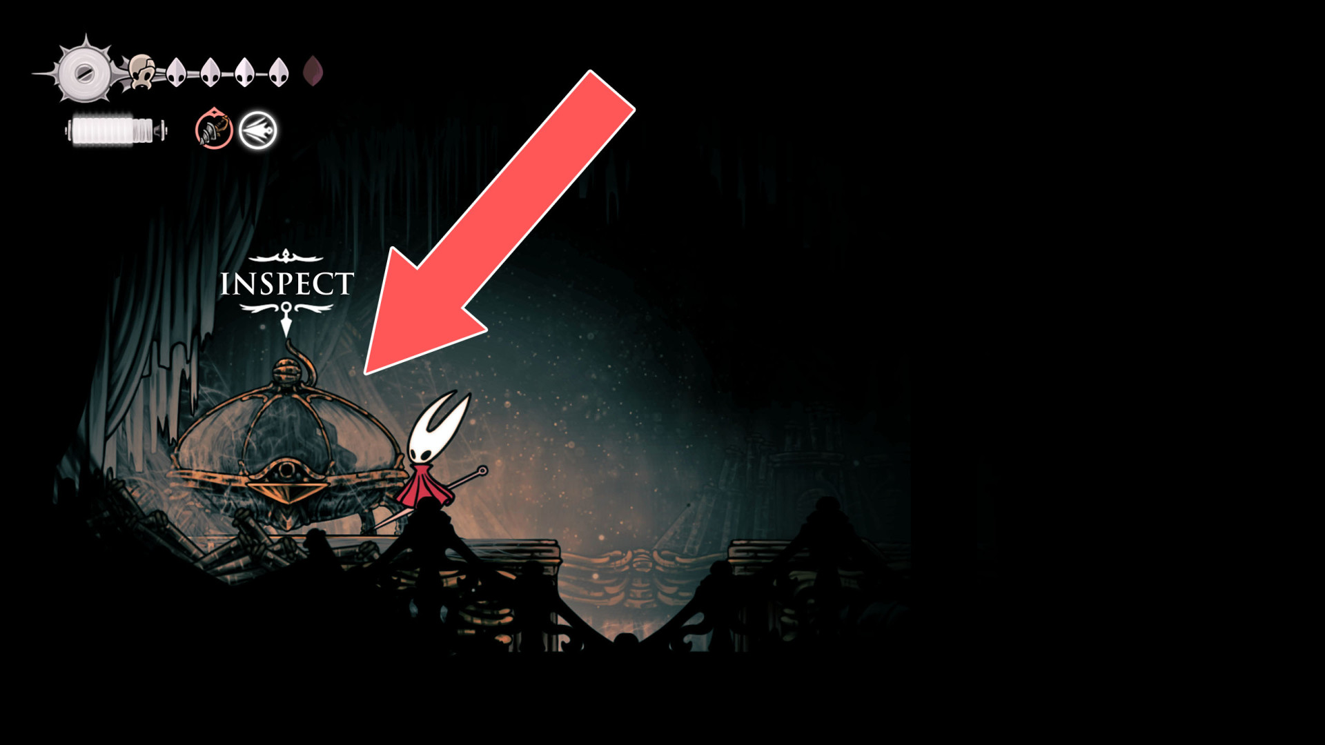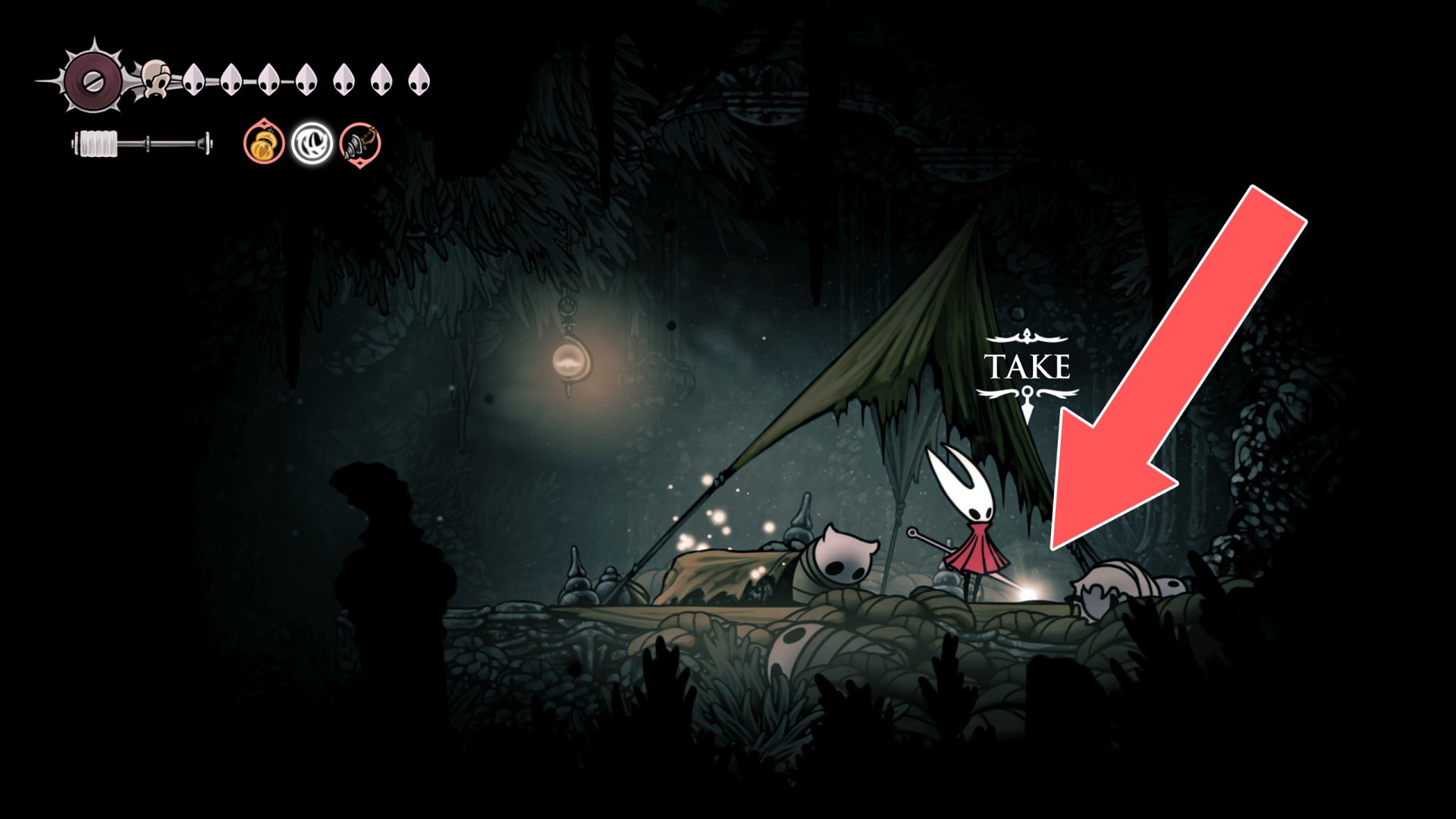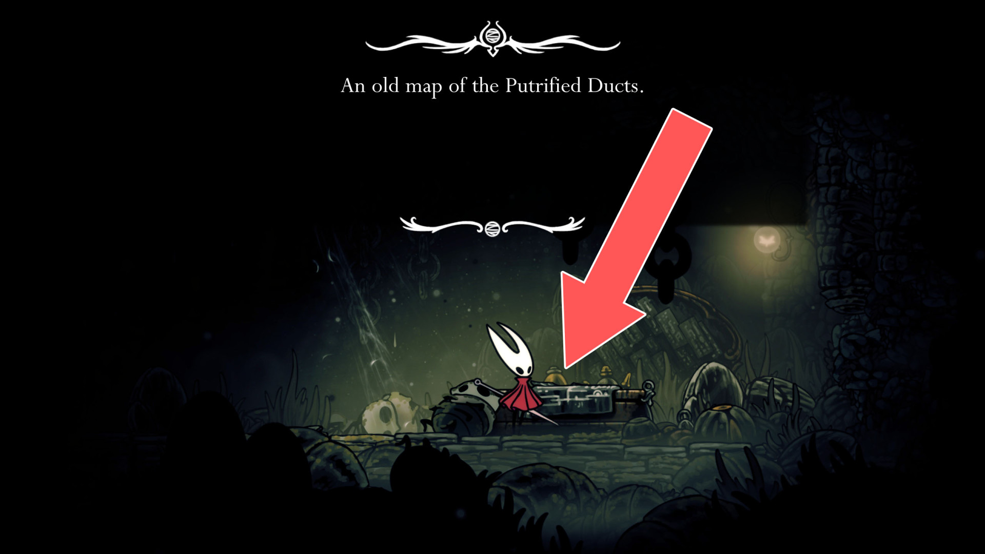 Once acquired, a map shows terrain, benches, and major landmarks. Its usefulness increases when combined with tools like the Compass, which displays Hornet's real-time position, and the Quill, which allows players to fill in missing portions of the map.
