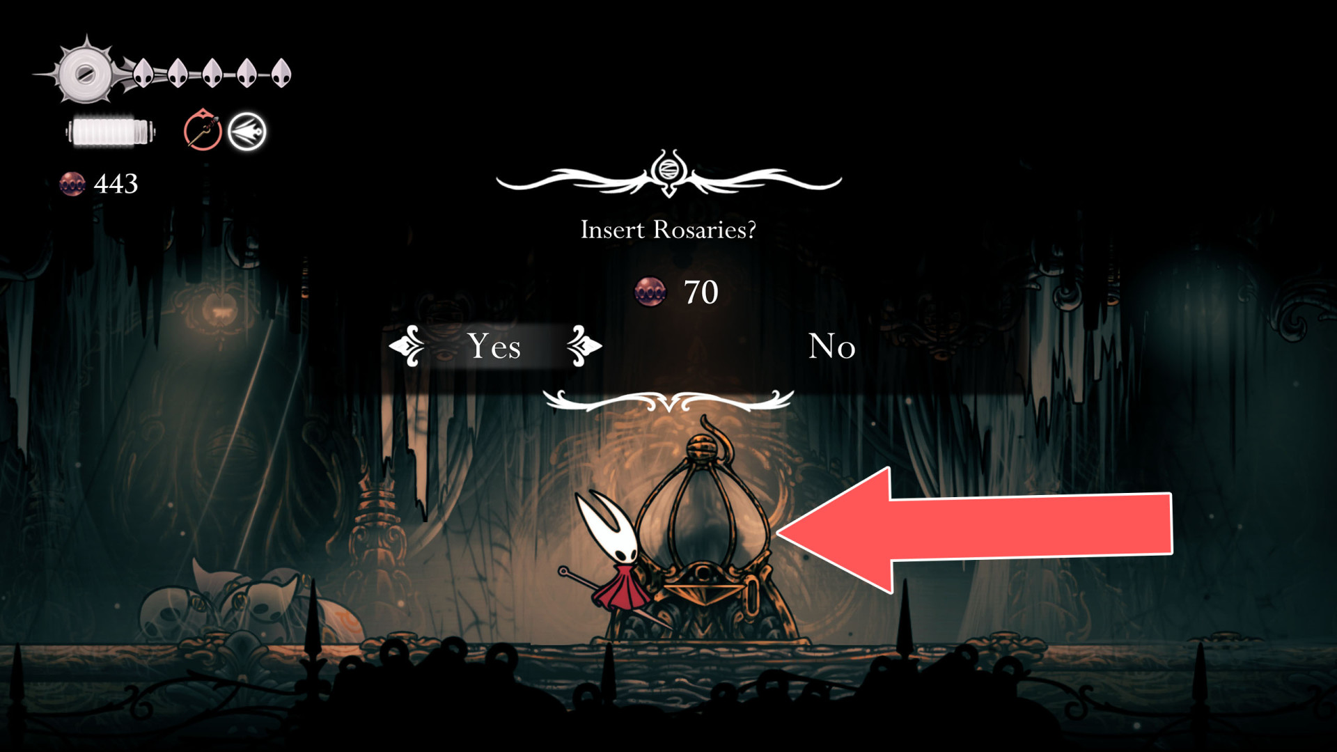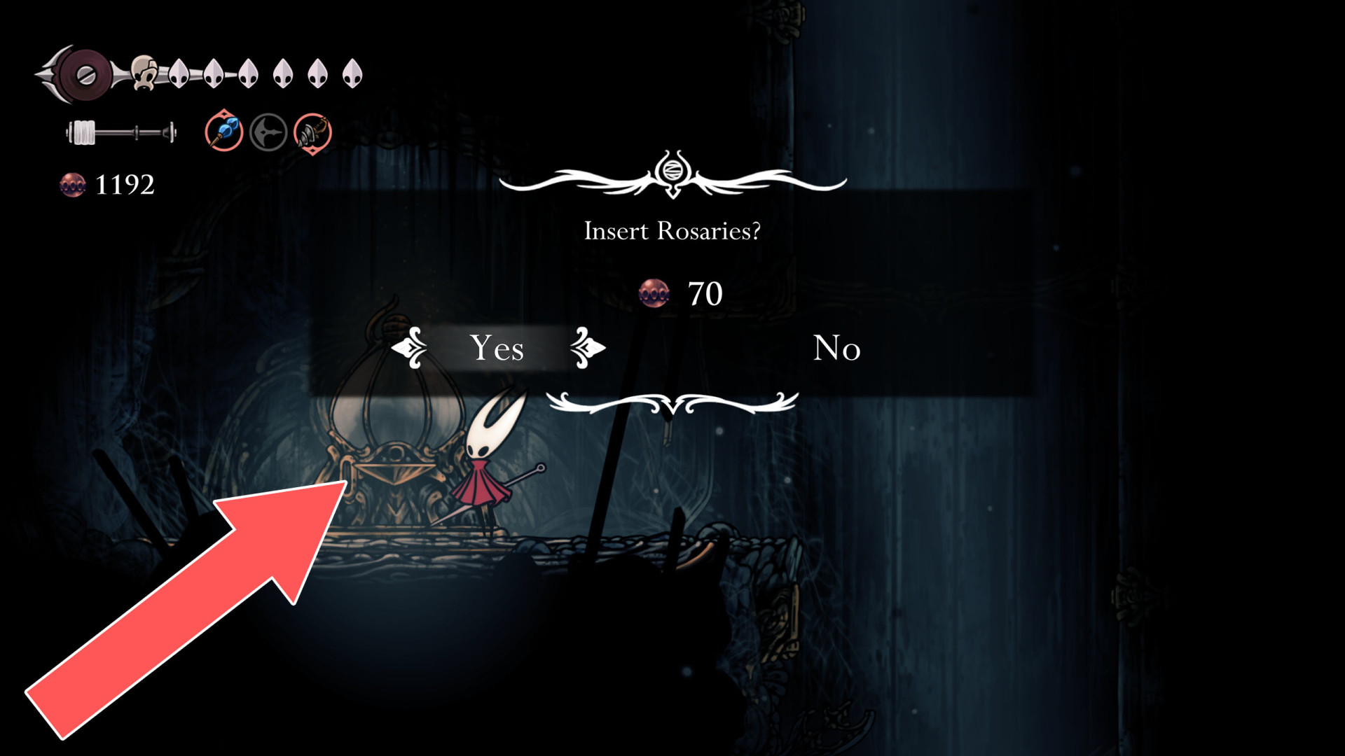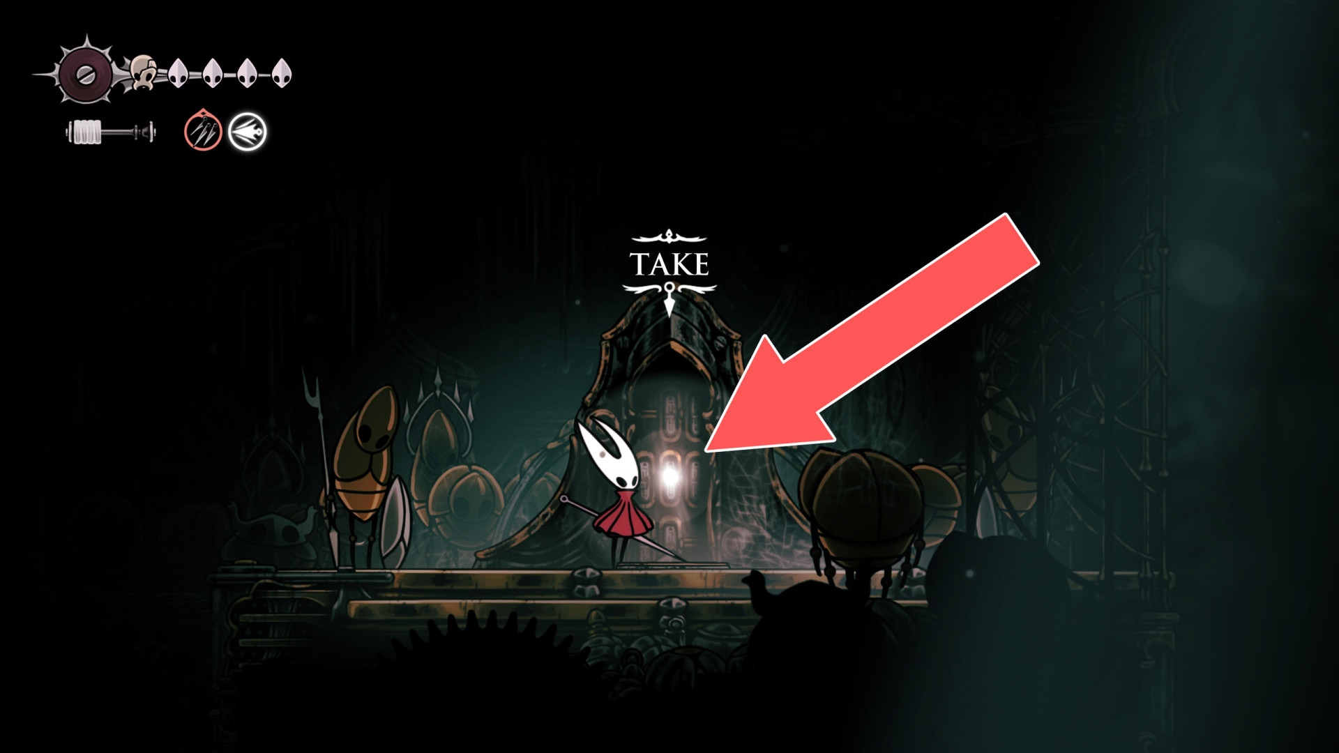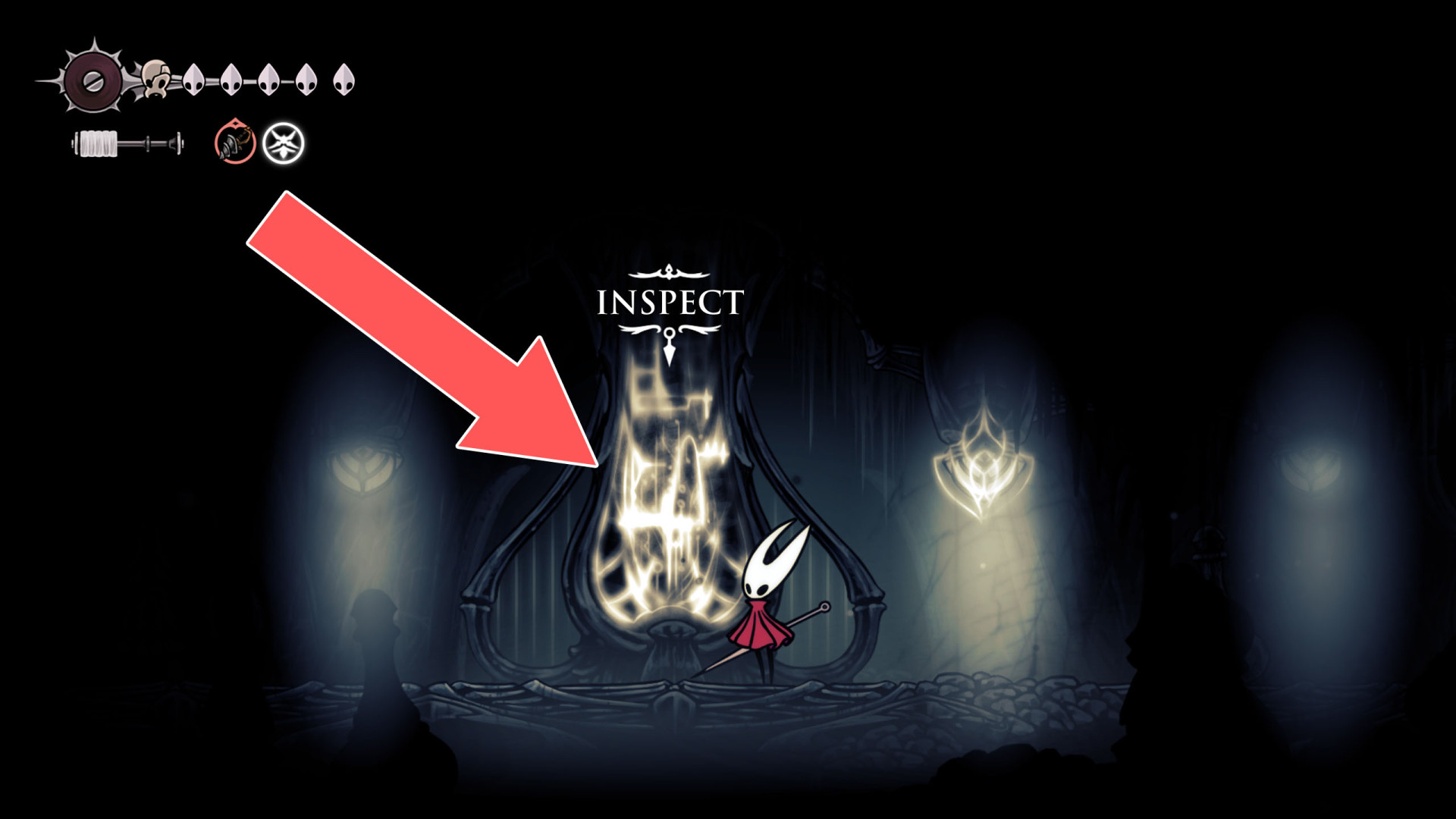 Once acquired, a map shows terrain, benches, and major landmarks. Its usefulness increases when combined with tools like the Compass, which displays Hornet's real-time position, and the Quill, which allows players to fill in missing portions of the map.