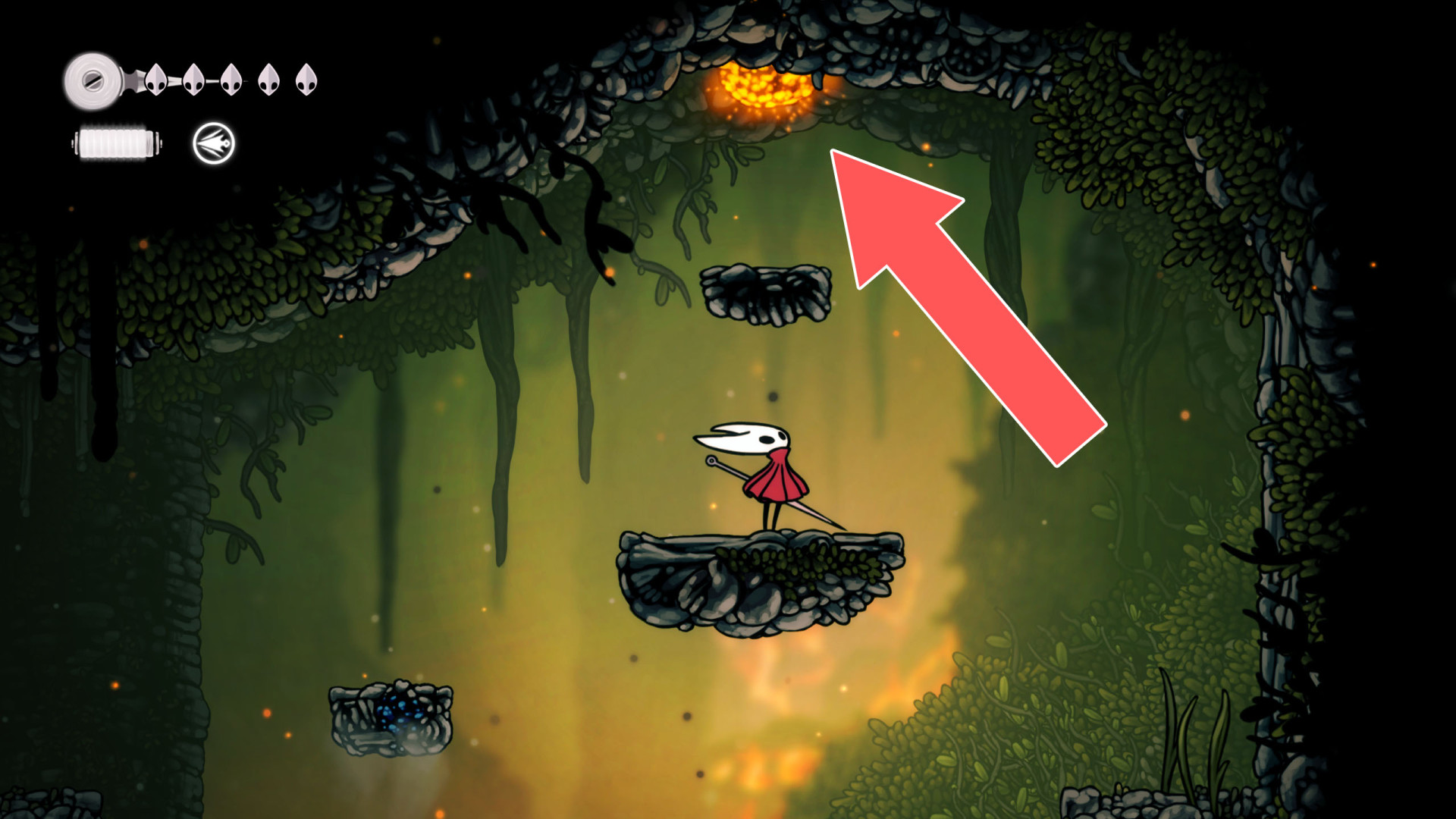 Hit the explosive rock to create a stream of air that can carry you upward.
