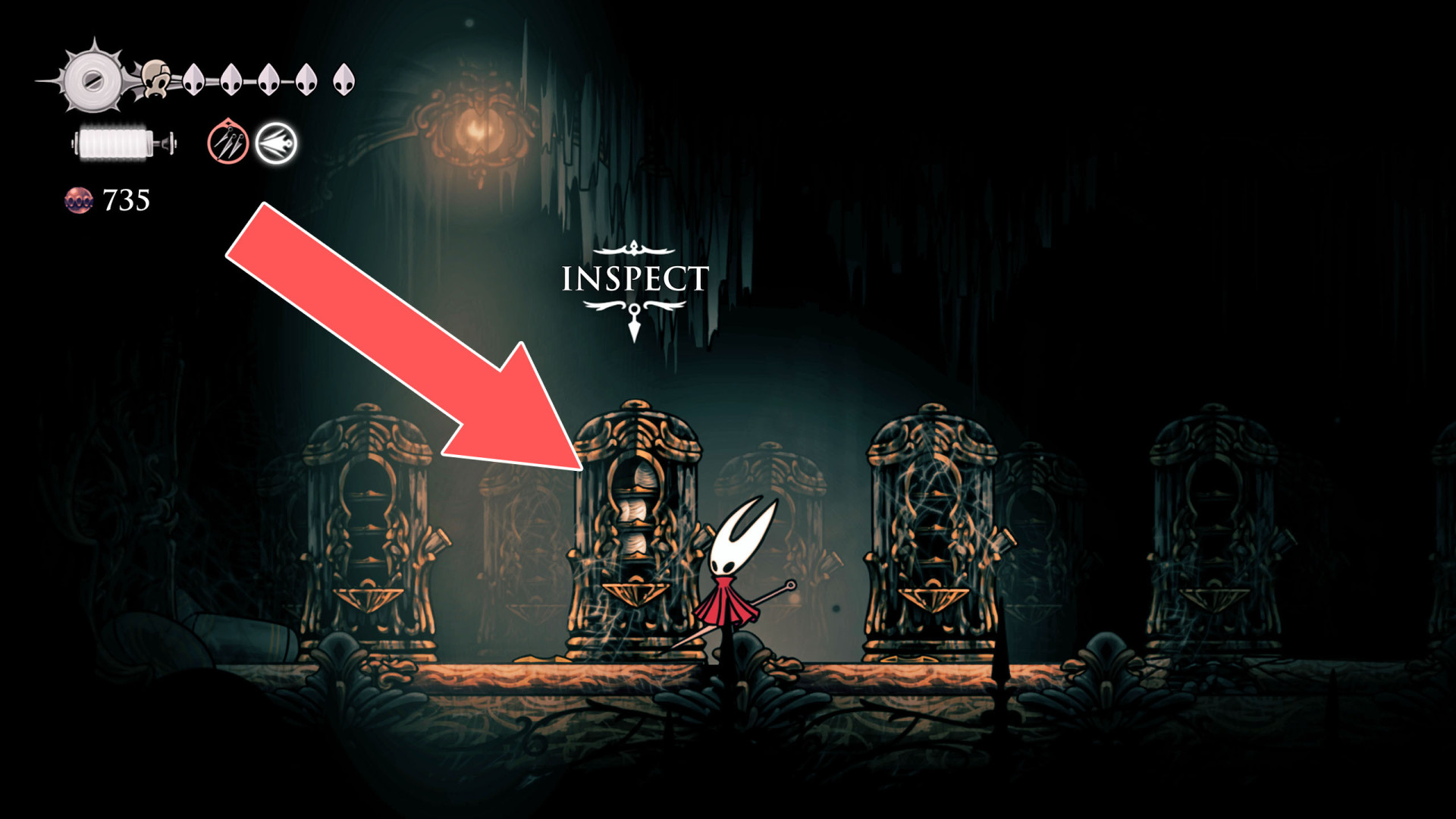 Show the mapIf the Warden here catches you in its cage, you will wake up inside The Slab Cage.