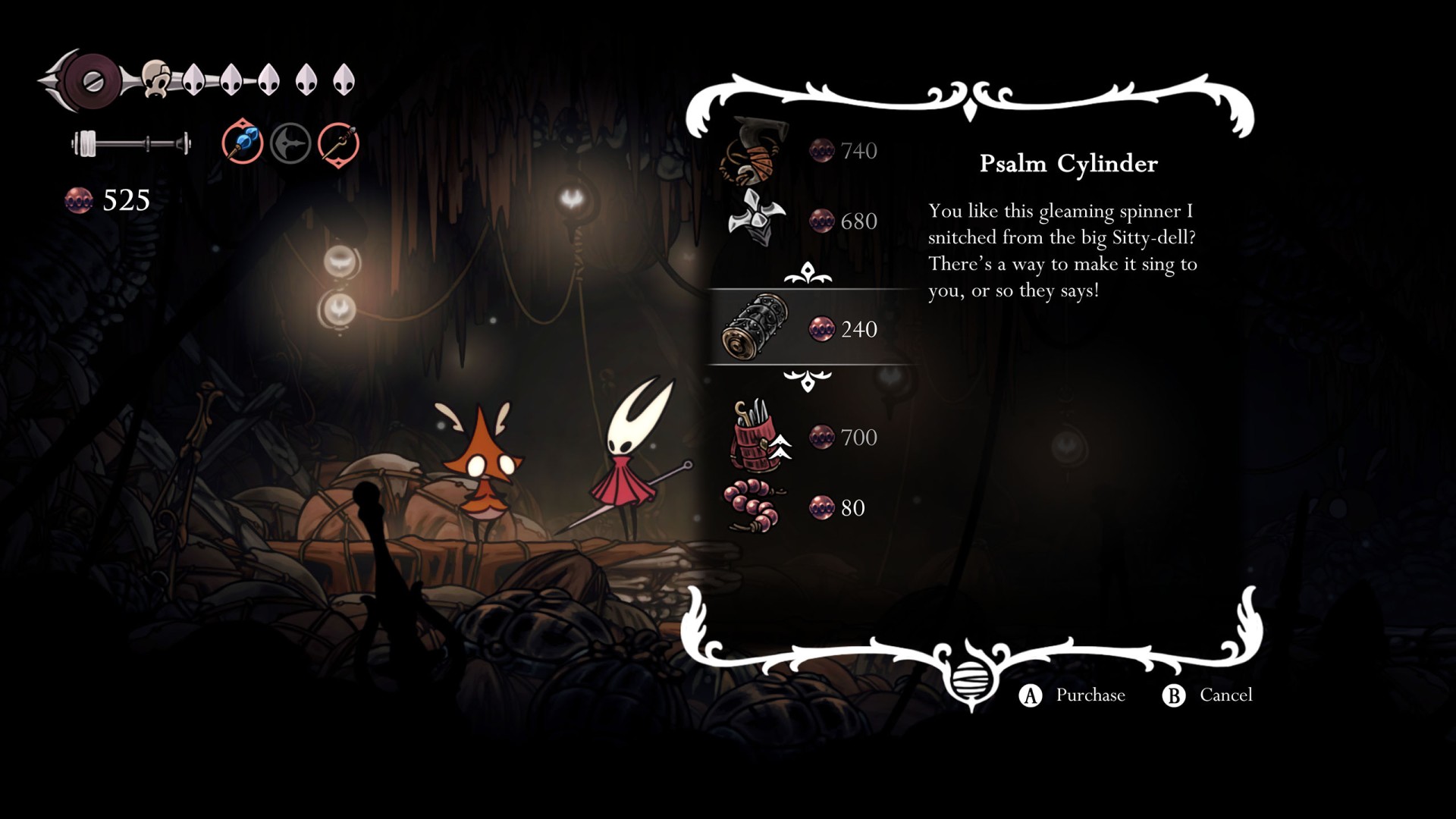 In Hollow Knight: Silksong, Psalm Cylinders are collectible metallic cylinders etched with ancient sound-recordings. There are six of them scattered throughout the game world - including the special, quest related, Sacred Cylinder. You can deliver them to the Vaultkeeper Cardinius in the Whispering Vaults to advance a side quest, earning rosaries, and unlocking playable Melodies.