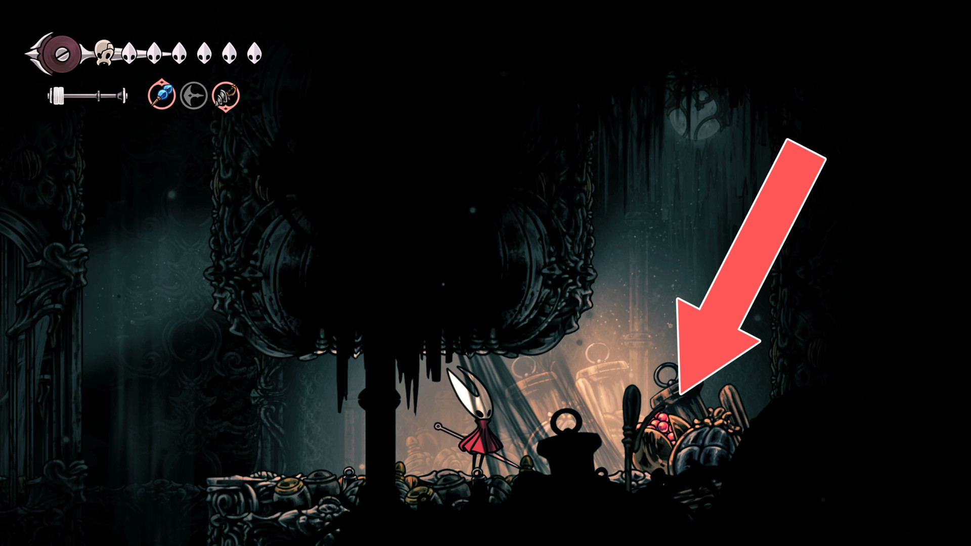 Rosaries are the primary currency in Hollow Knight: Silksong, used throughout the kingdom of Pharloom to purchase items from merchants, pay tolls to unlock benches, fast travel stations, as well as for various other interactions.