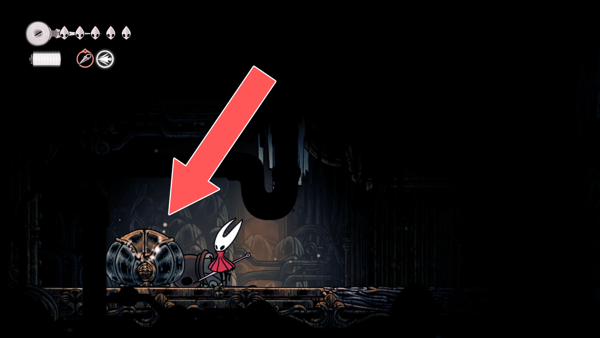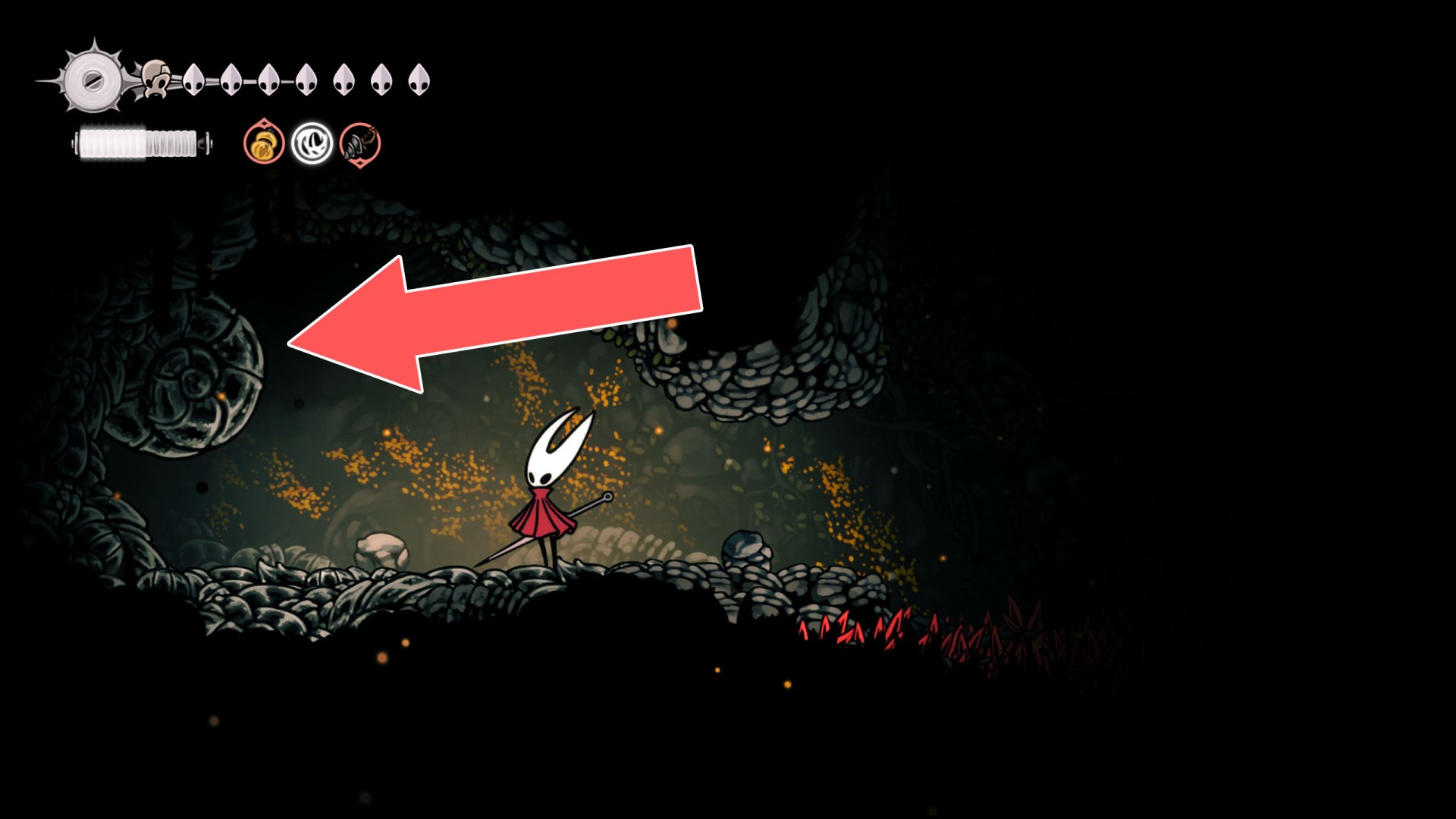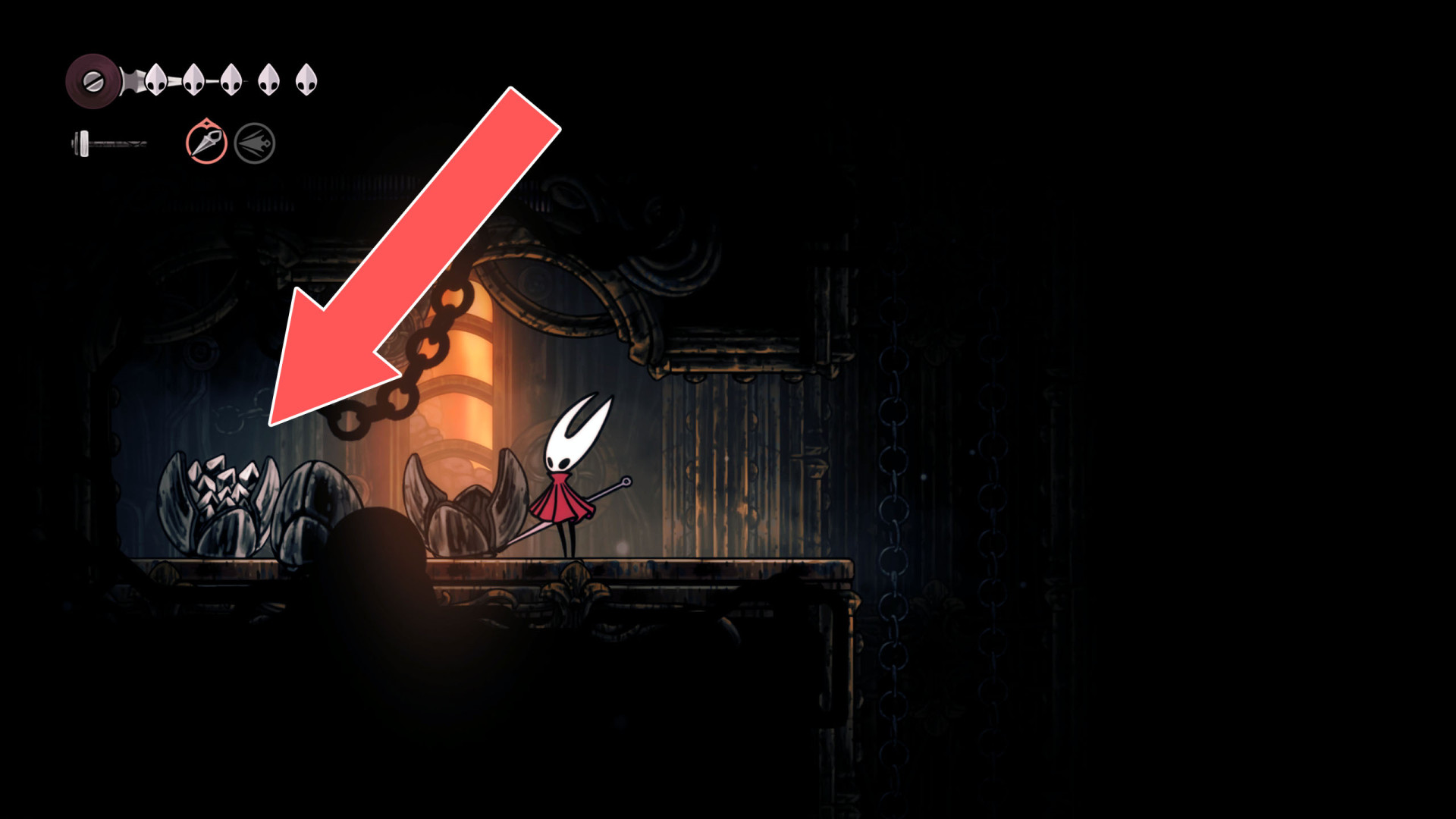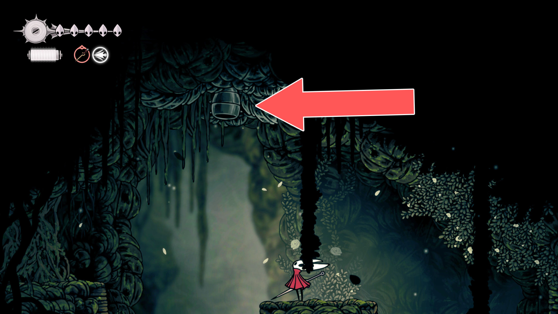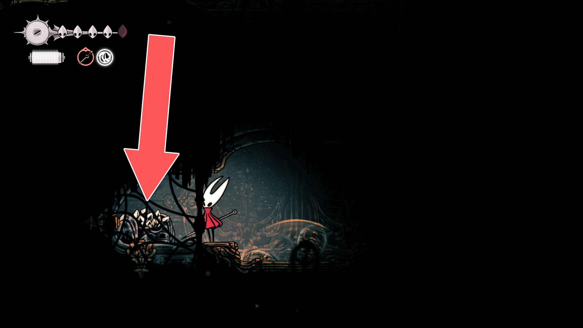 Shell Shard Deposits appear as shiny, interactive objects such as round rocks, grub-like statues, or embedded ropes that flash intermittently to catch the player's attention. Hornet can break these deposits by attacking them with her Needle, releasing 10–50 Shell Shards per deposit.