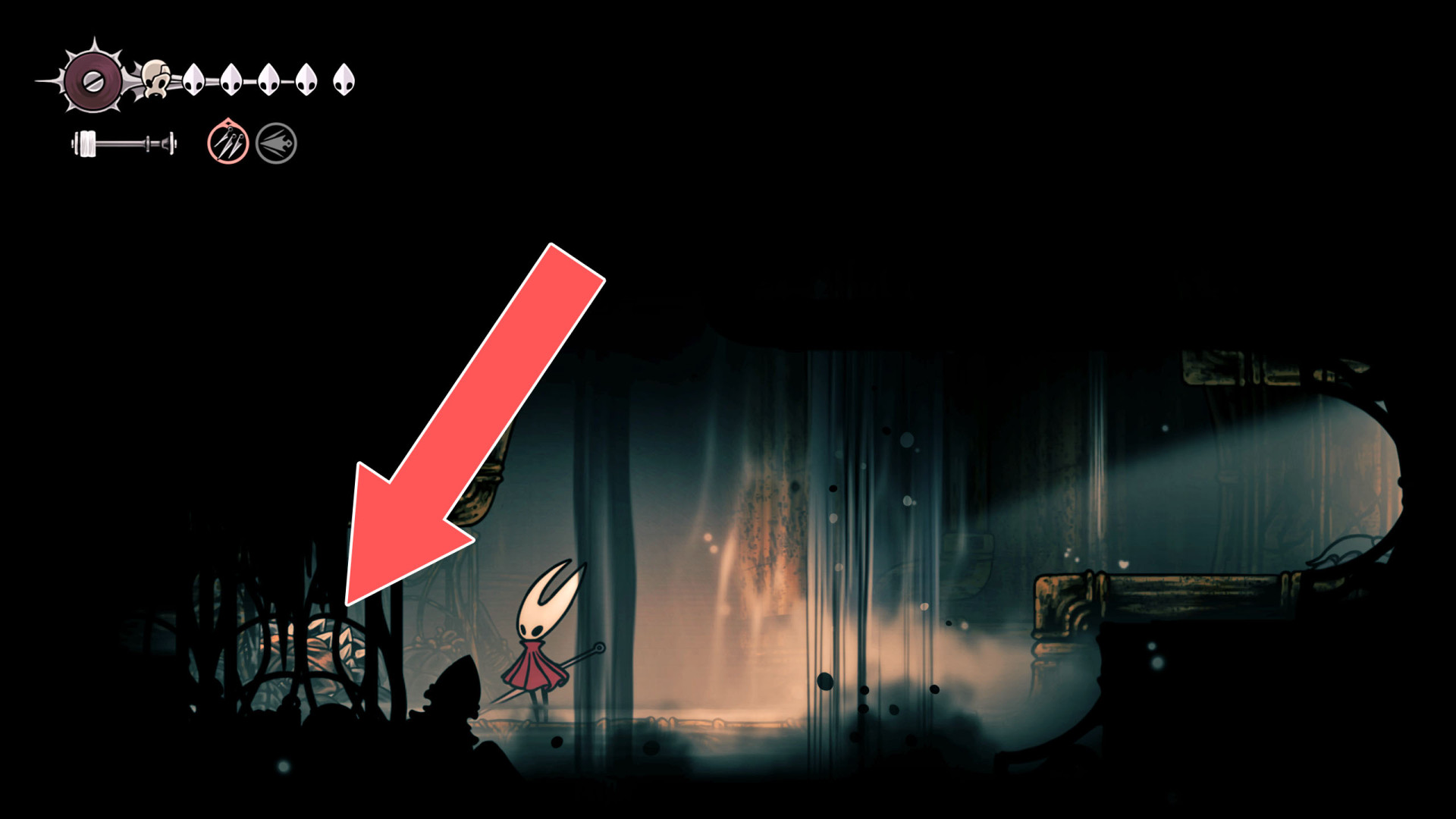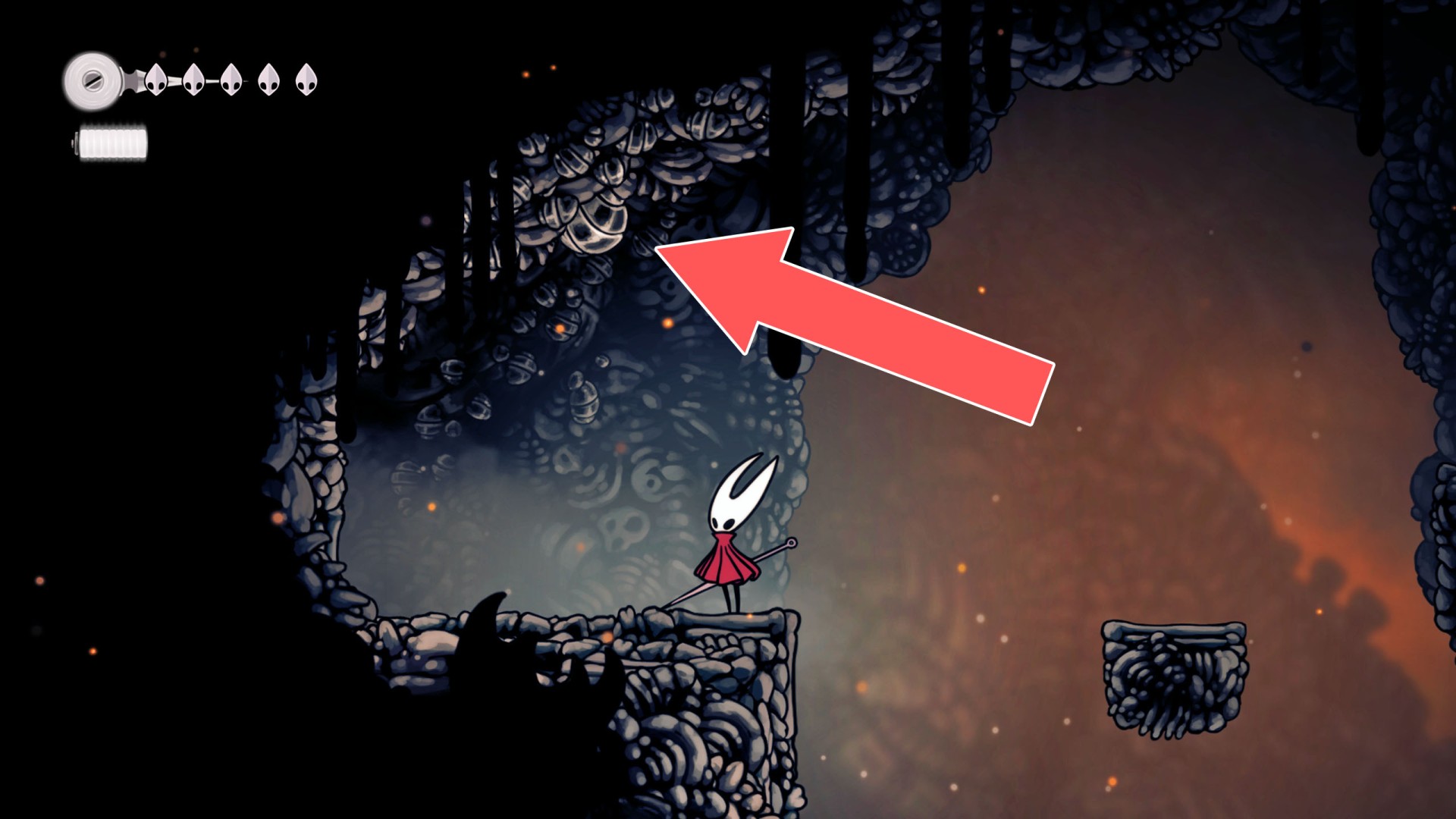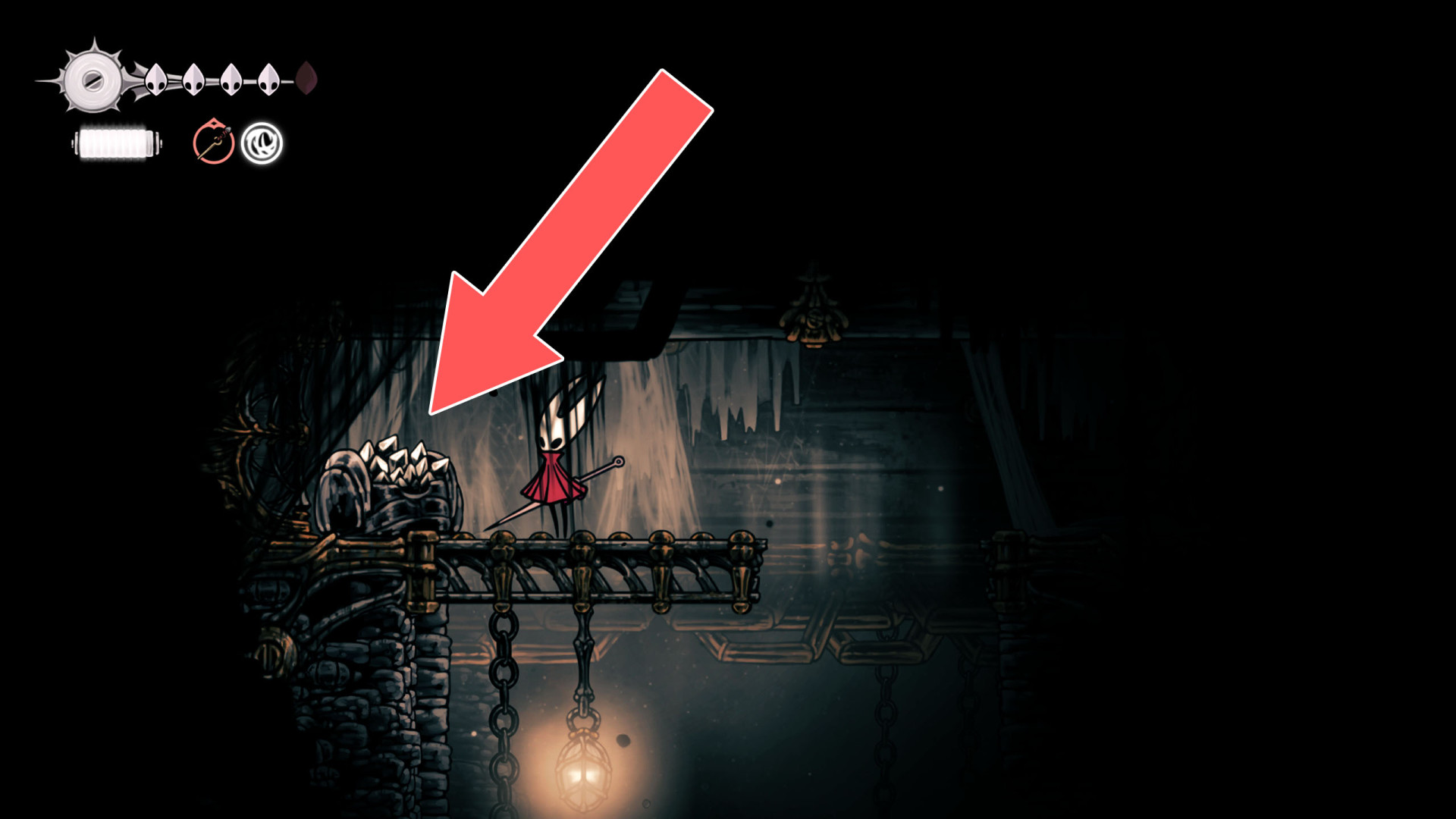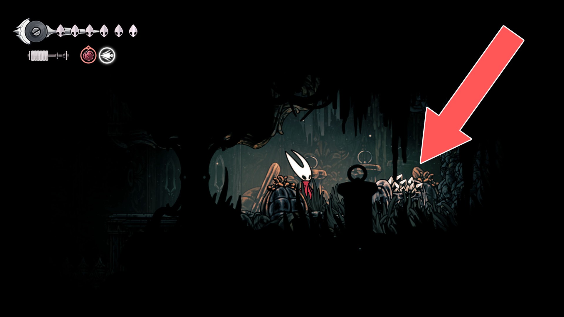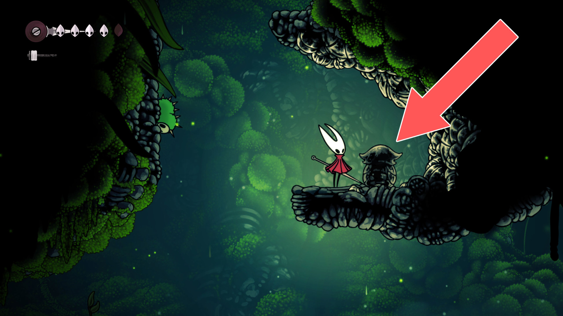 Shell Shard Deposits appear as shiny, interactive objects such as round rocks, grub-like statues, or embedded ropes that flash intermittently to catch the player's attention. Hornet can break these deposits by attacking them with her Needle, releasing 10–50 Shell Shards per deposit.
