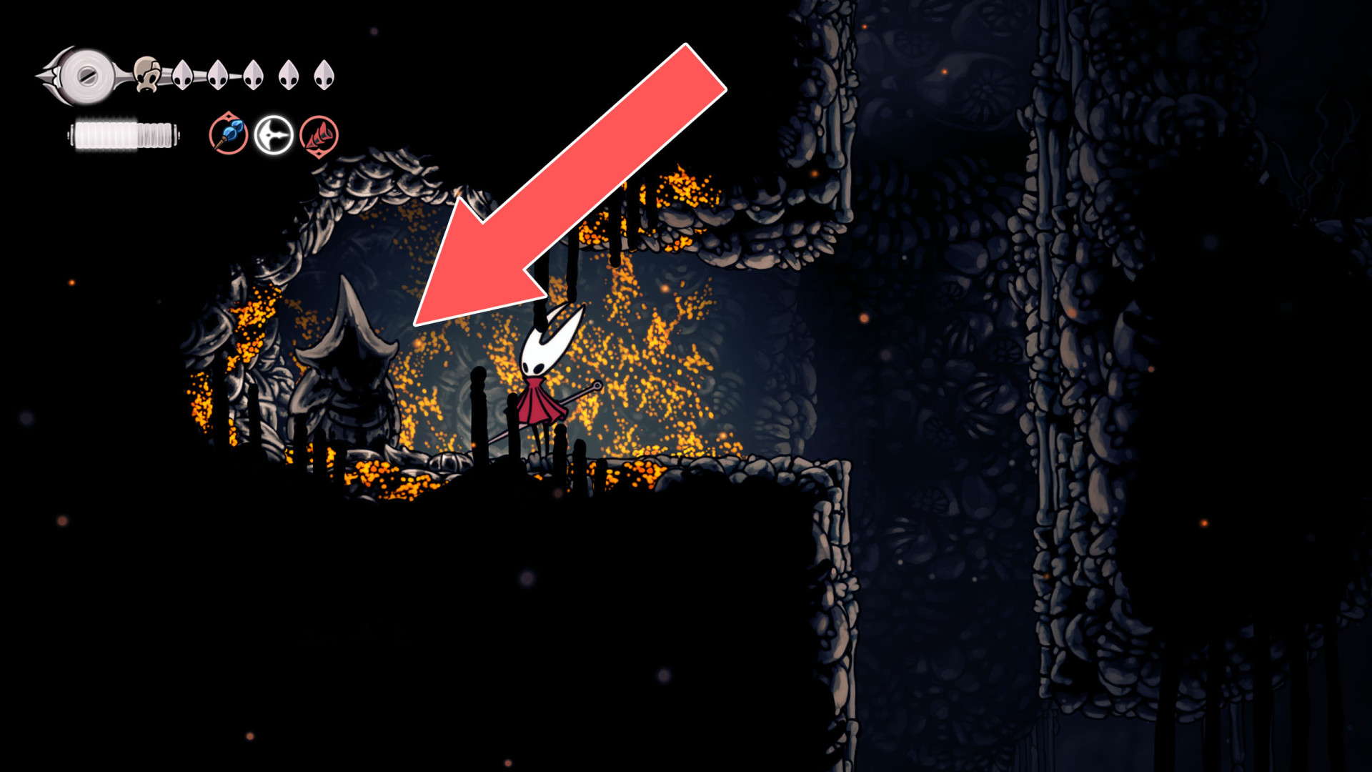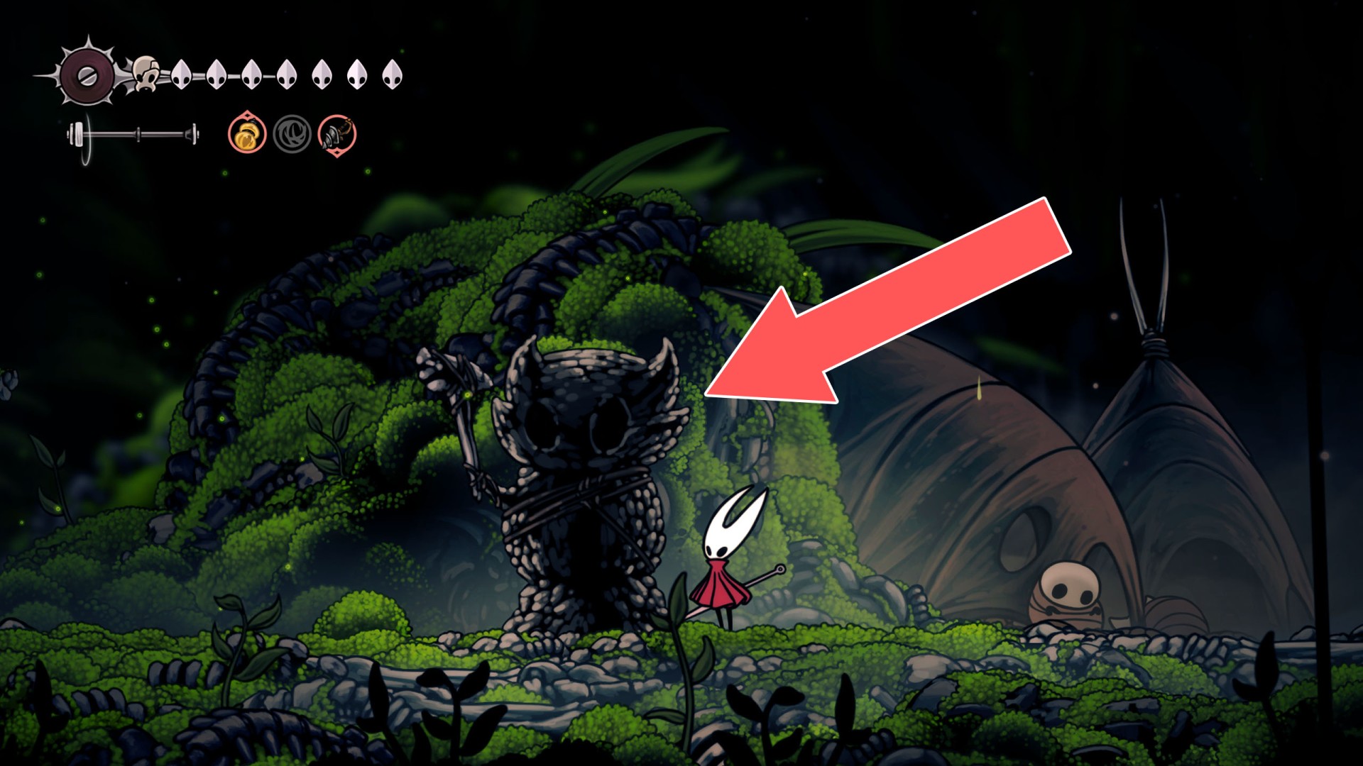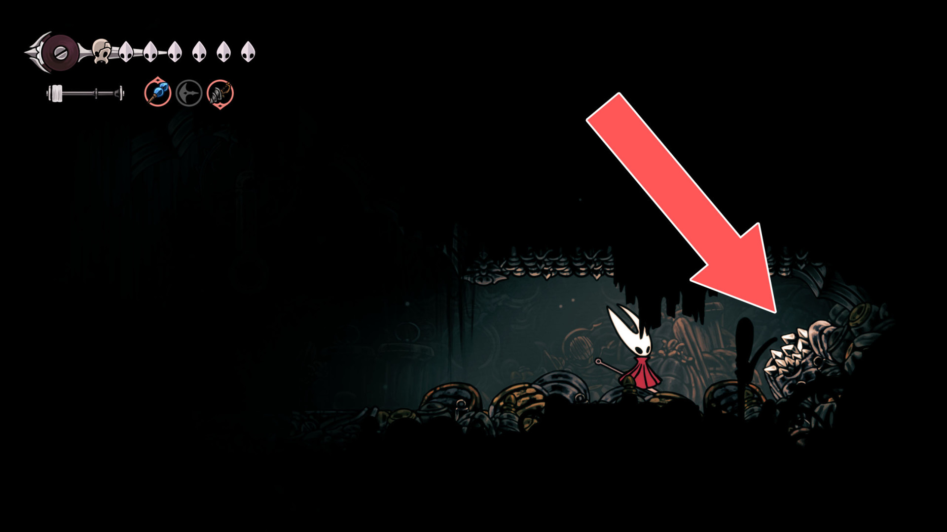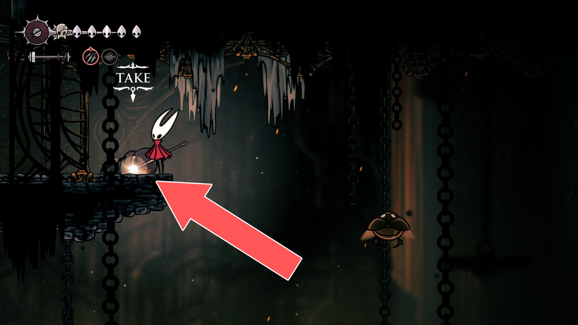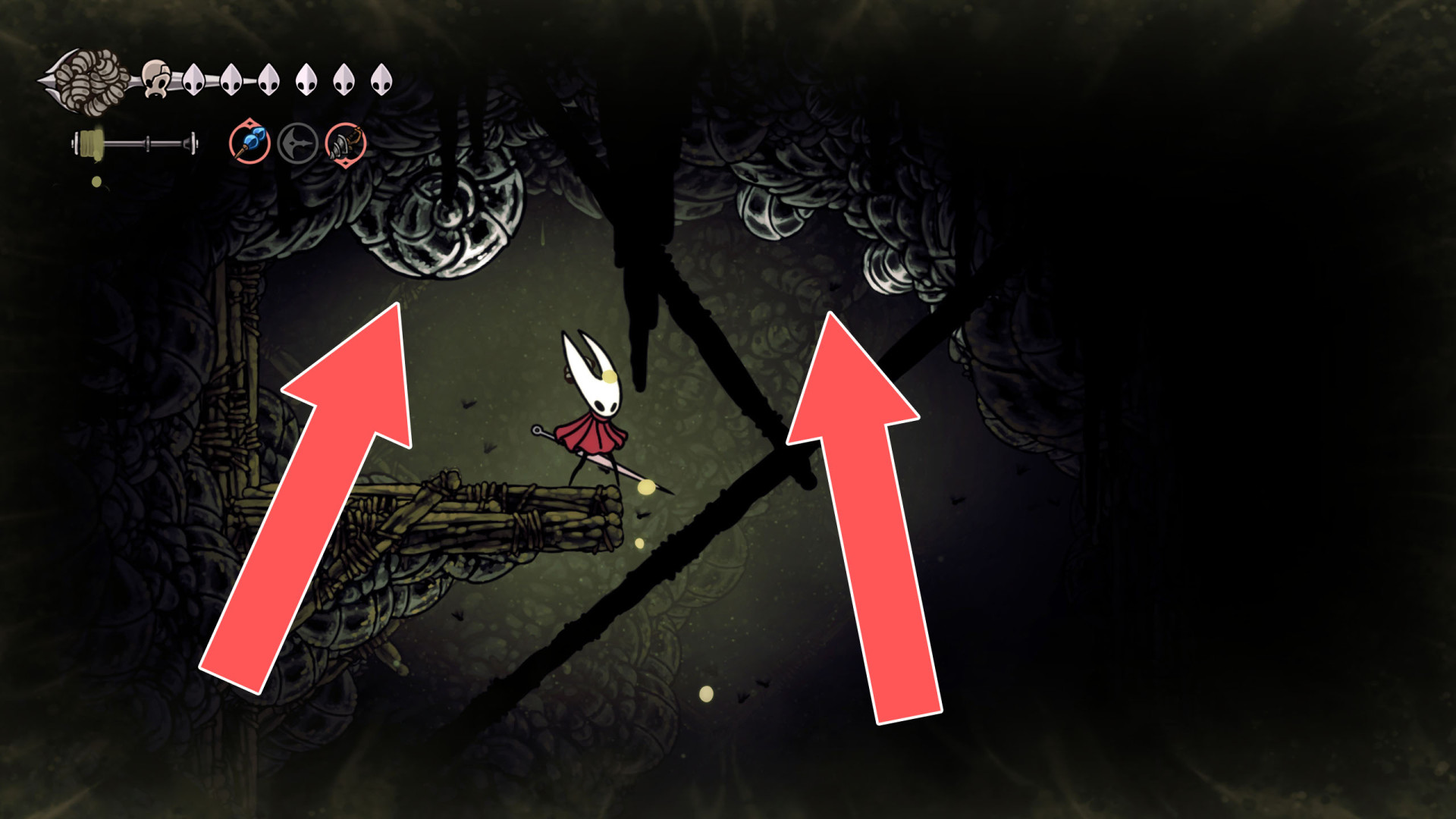 Shell Shard Deposits appear as shiny, interactive objects such as round rocks, grub-like statues, or embedded ropes that flash intermittently to catch the player's attention. Hornet can break these deposits by attacking them with her Needle, releasing 10–50 Shell Shards per deposit.