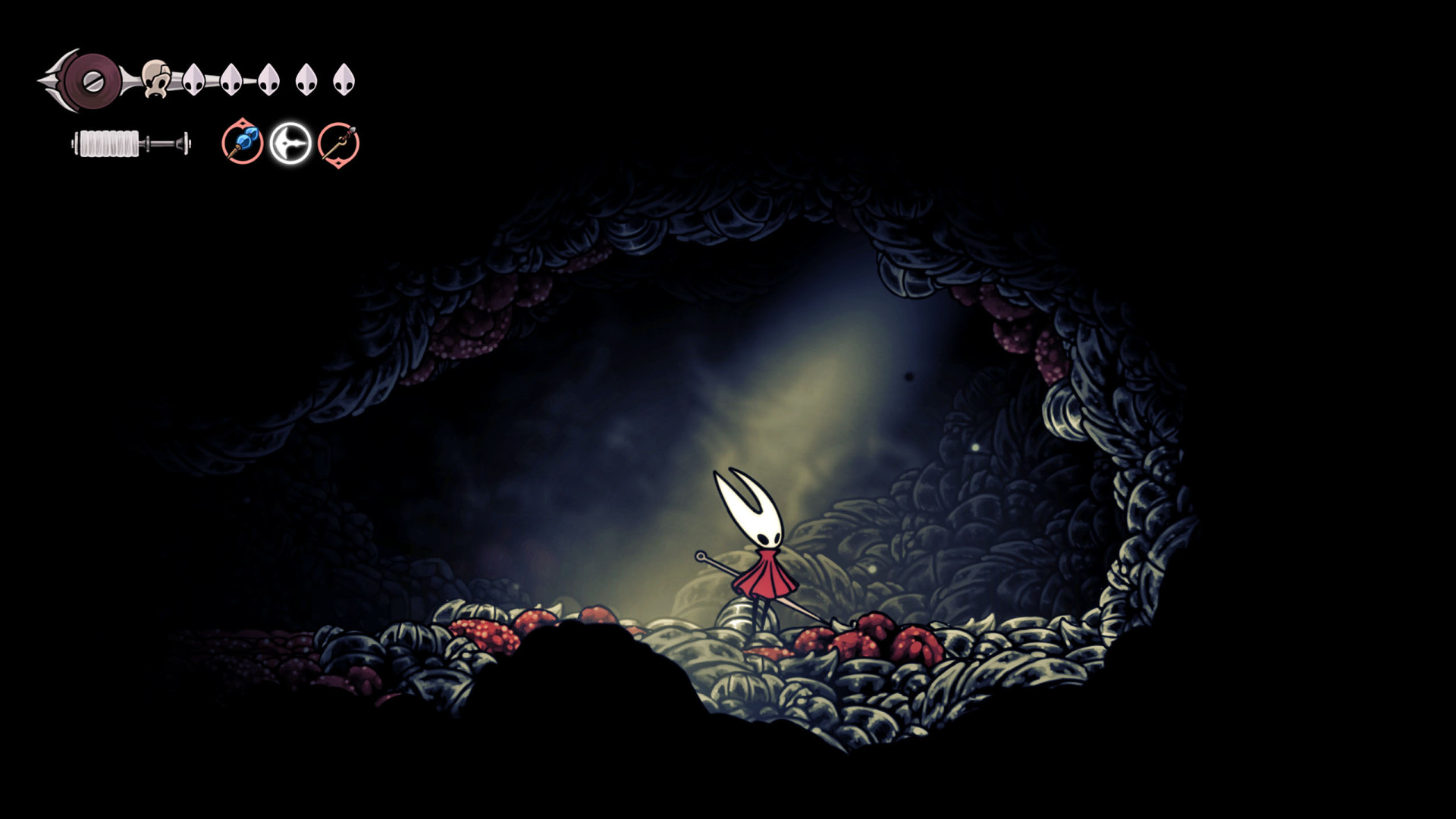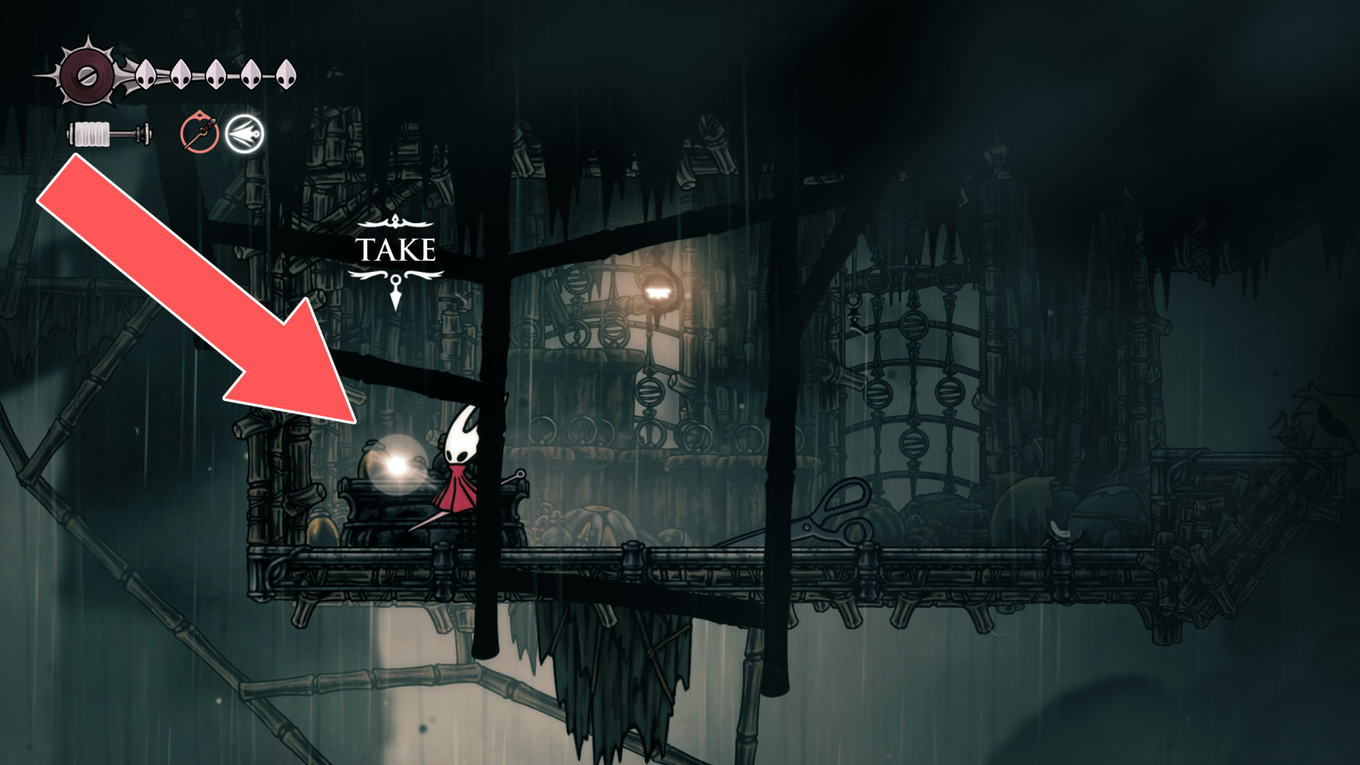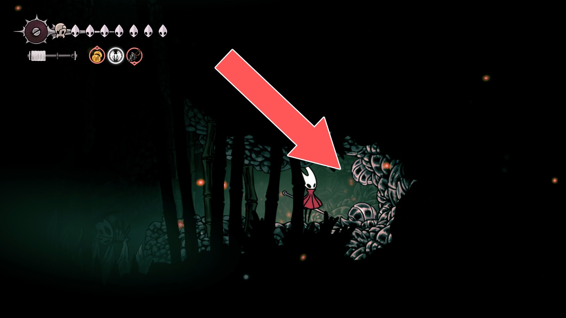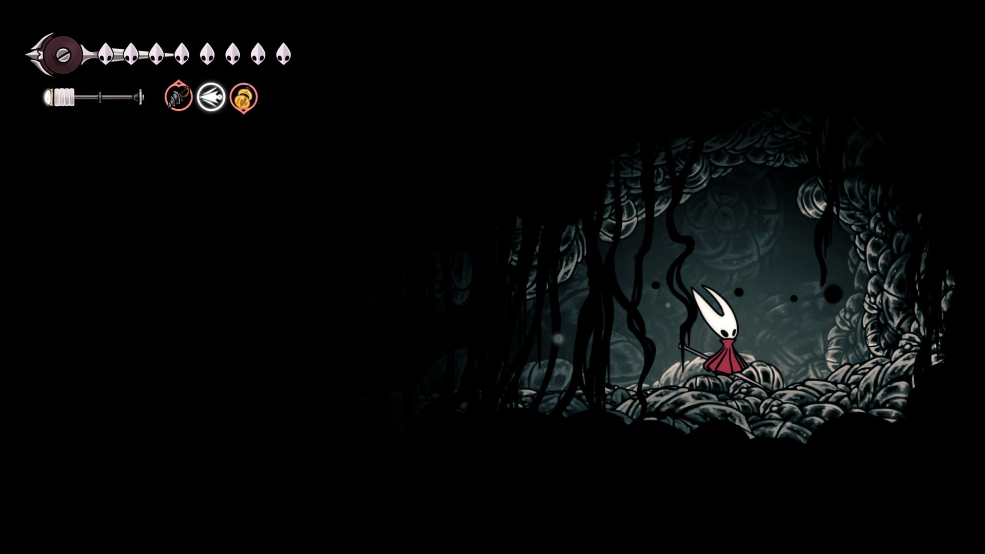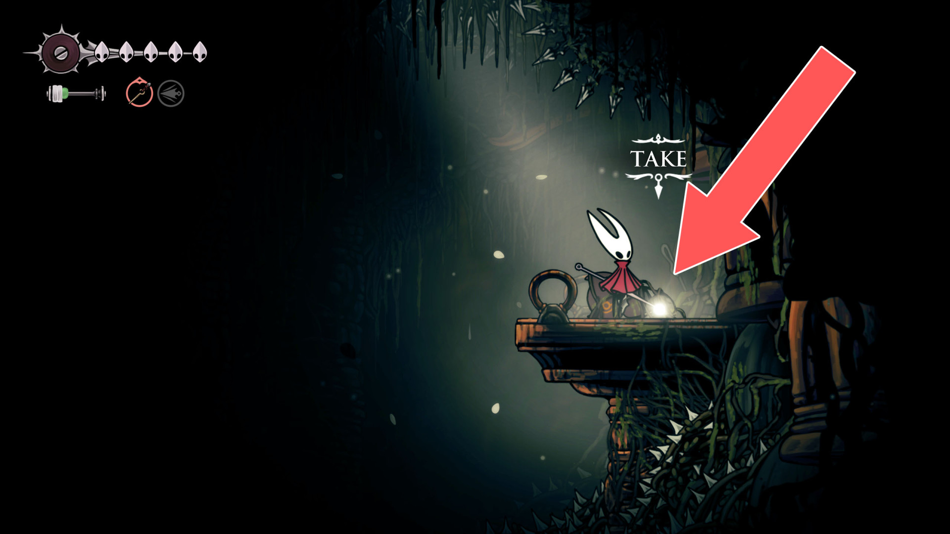 Shell Shard Deposits appear as shiny, interactive objects such as round rocks, grub-like statues, or embedded ropes that flash intermittently to catch the player's attention. Hornet can break these deposits by attacking them with her Needle, releasing 10–50 Shell Shards per deposit.