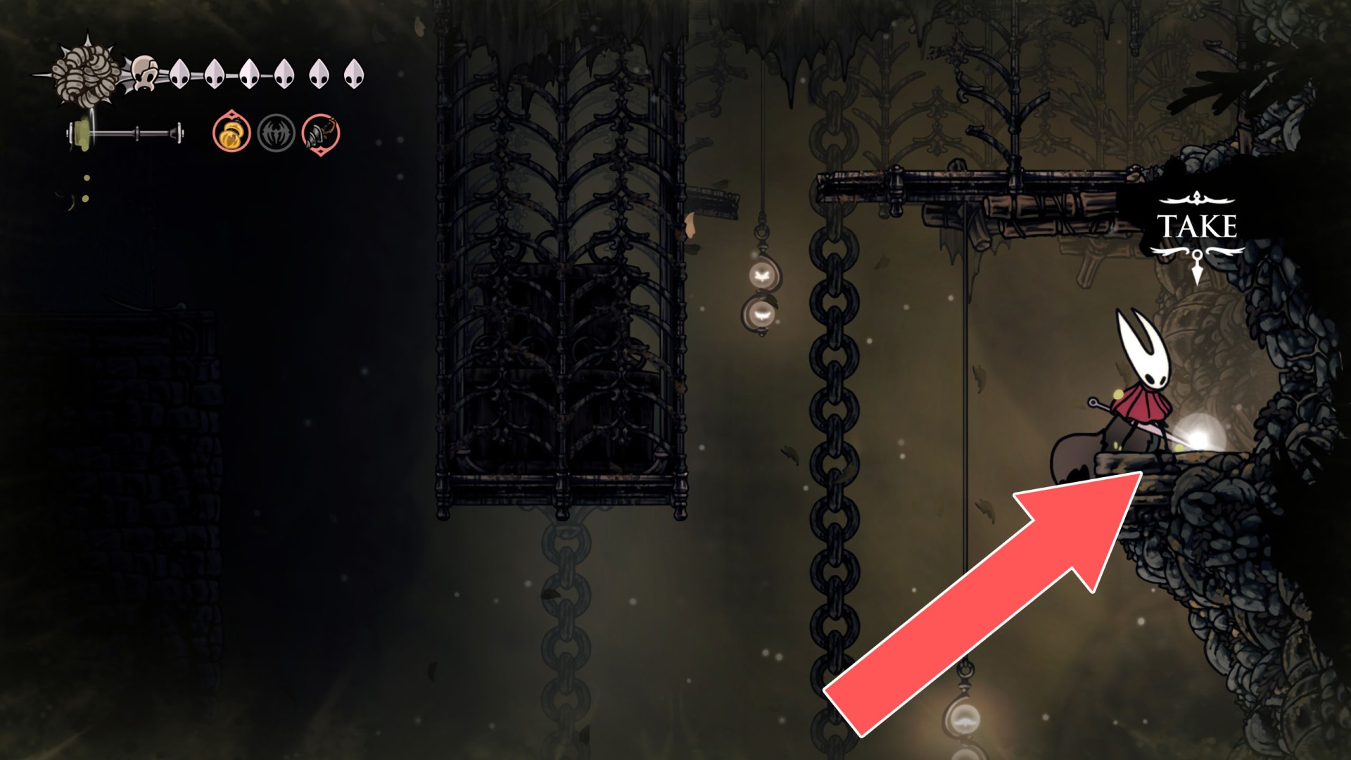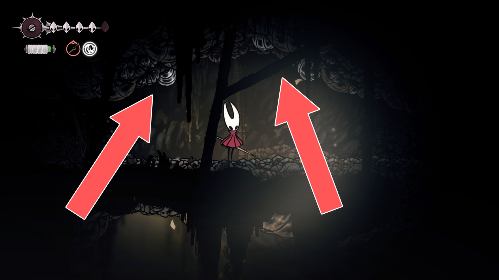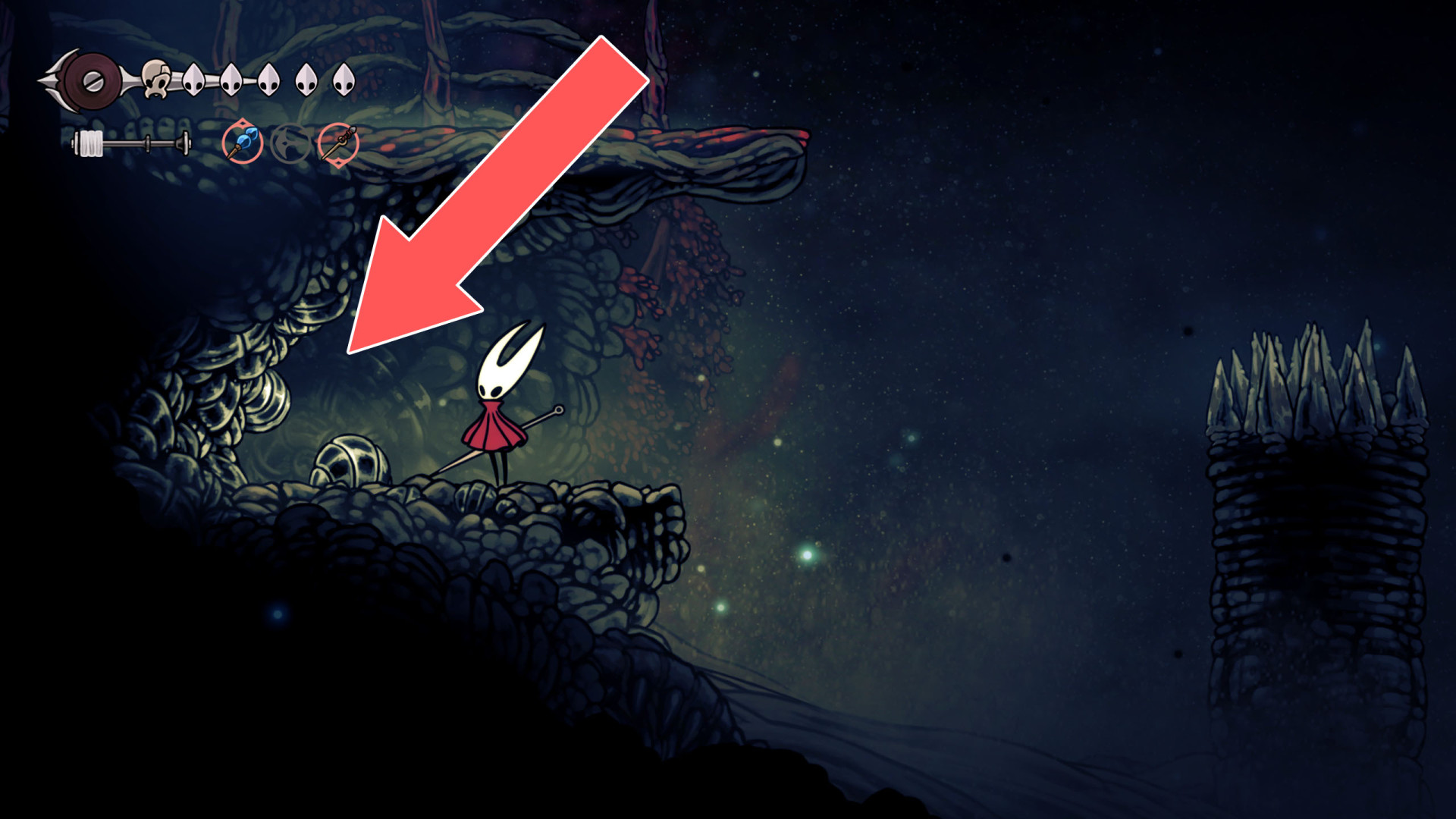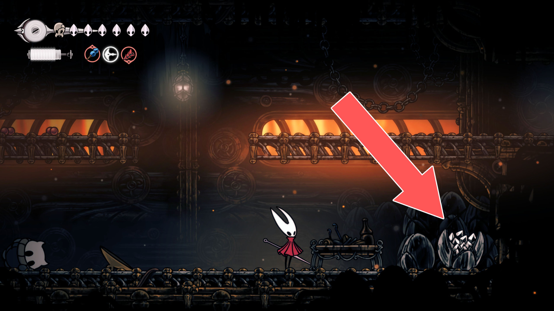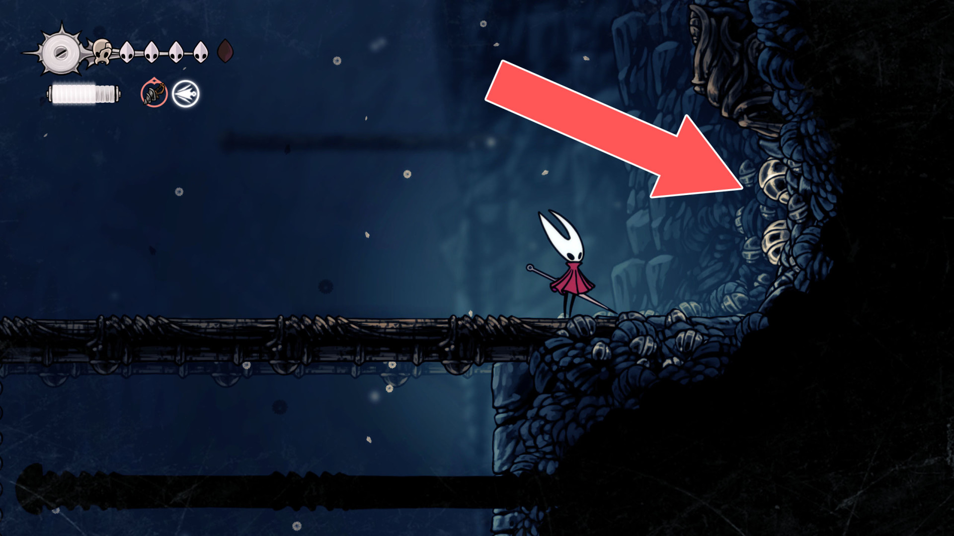 Shell Shard Deposits appear as shiny, interactive objects such as round rocks, grub-like statues, or embedded ropes that flash intermittently to catch the player's attention. Hornet can break these deposits by attacking them with her Needle, releasing 10–50 Shell Shards per deposit.