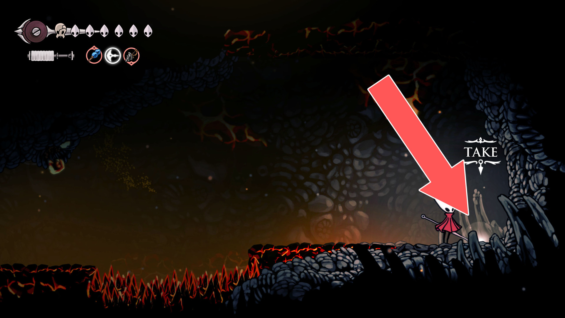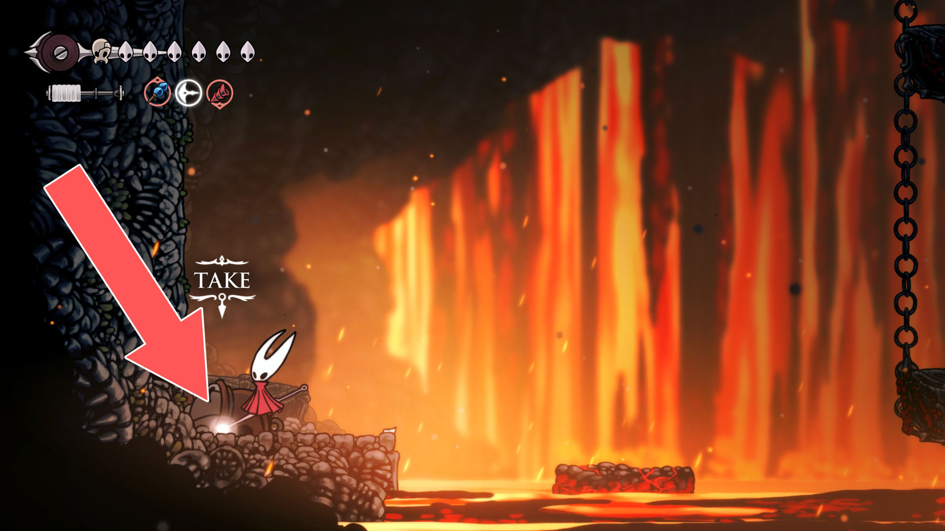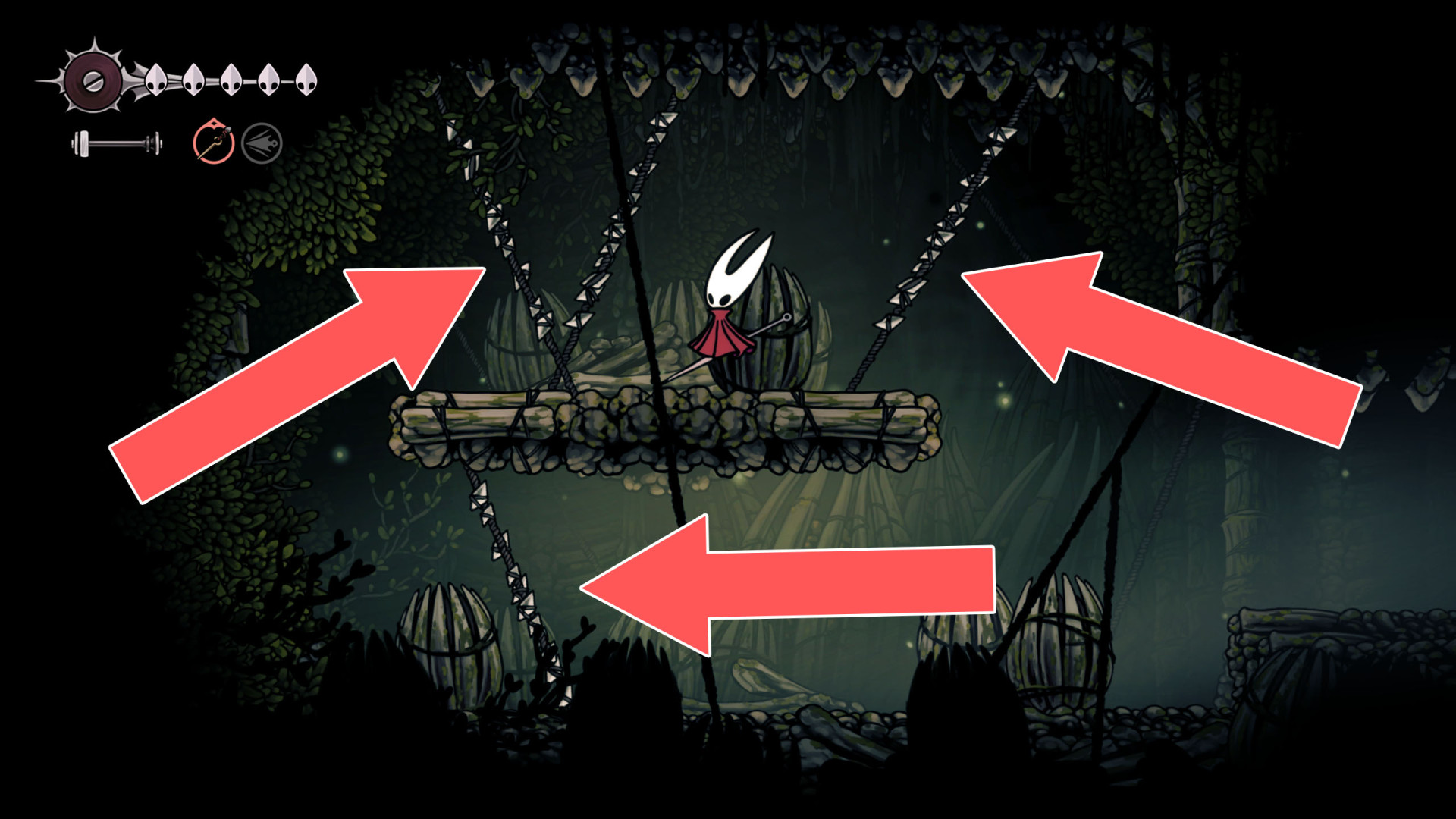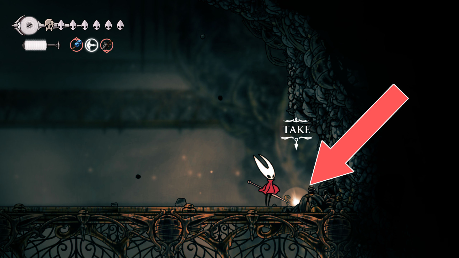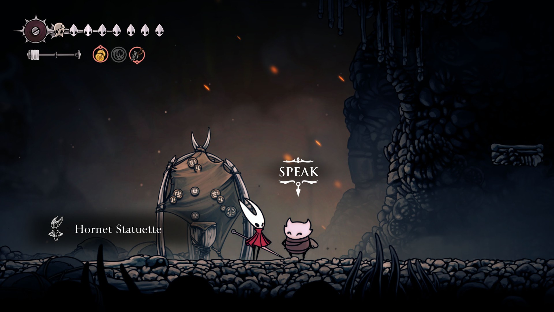 Shell Shard Deposits appear as shiny, interactive objects such as round rocks, grub-like statues, or embedded ropes that flash intermittently to catch the player's attention. Hornet can break these deposits by attacking them with her Needle, releasing 10–50 Shell Shards per deposit.