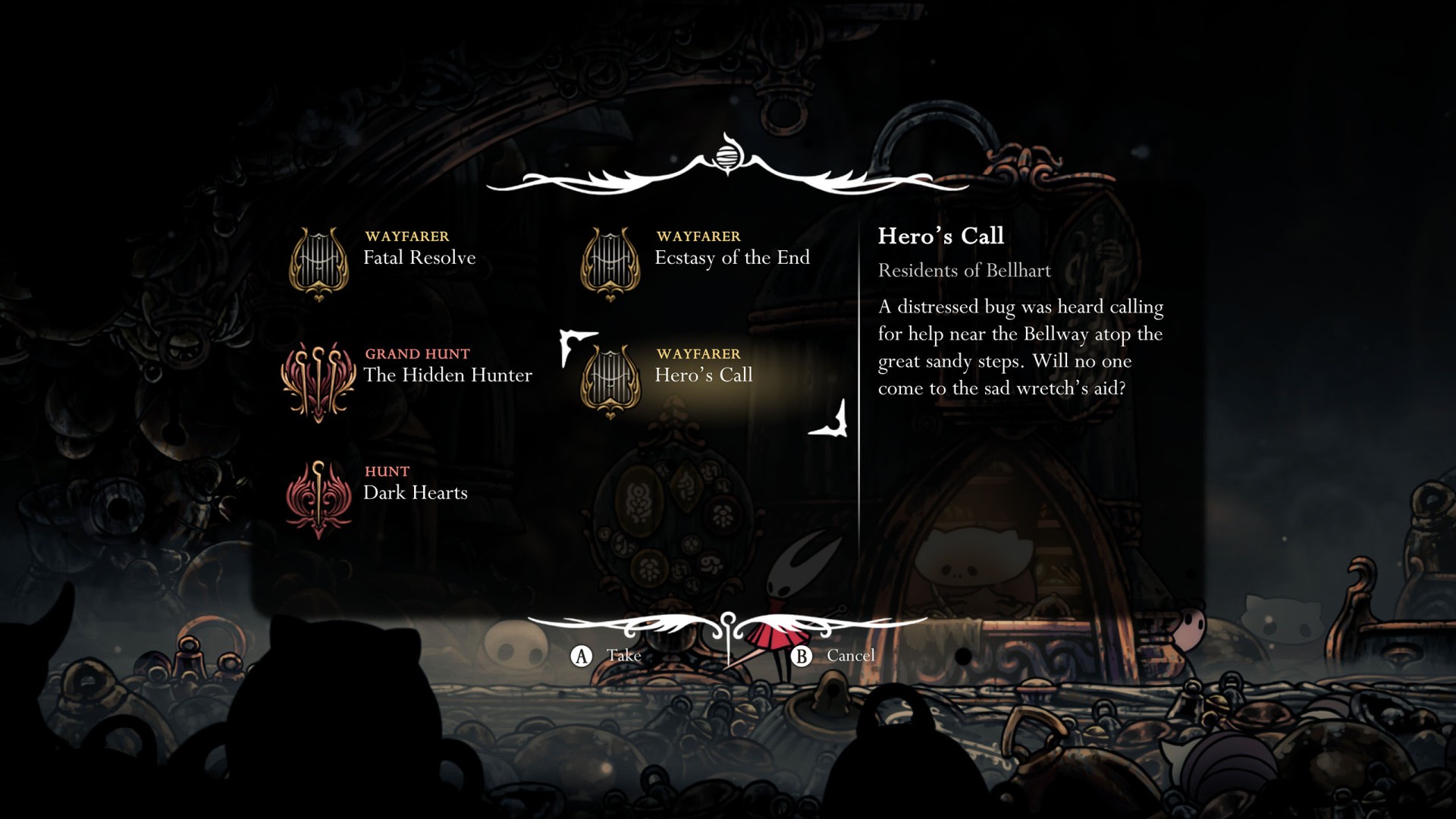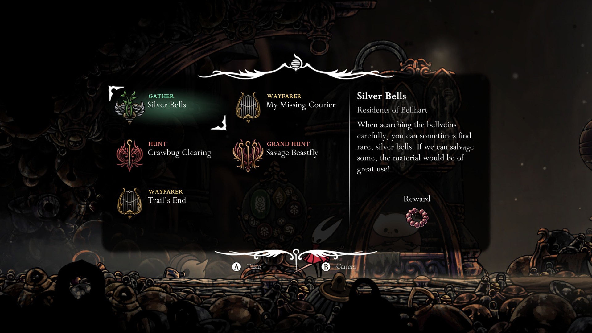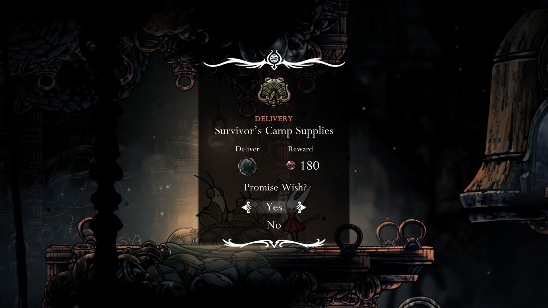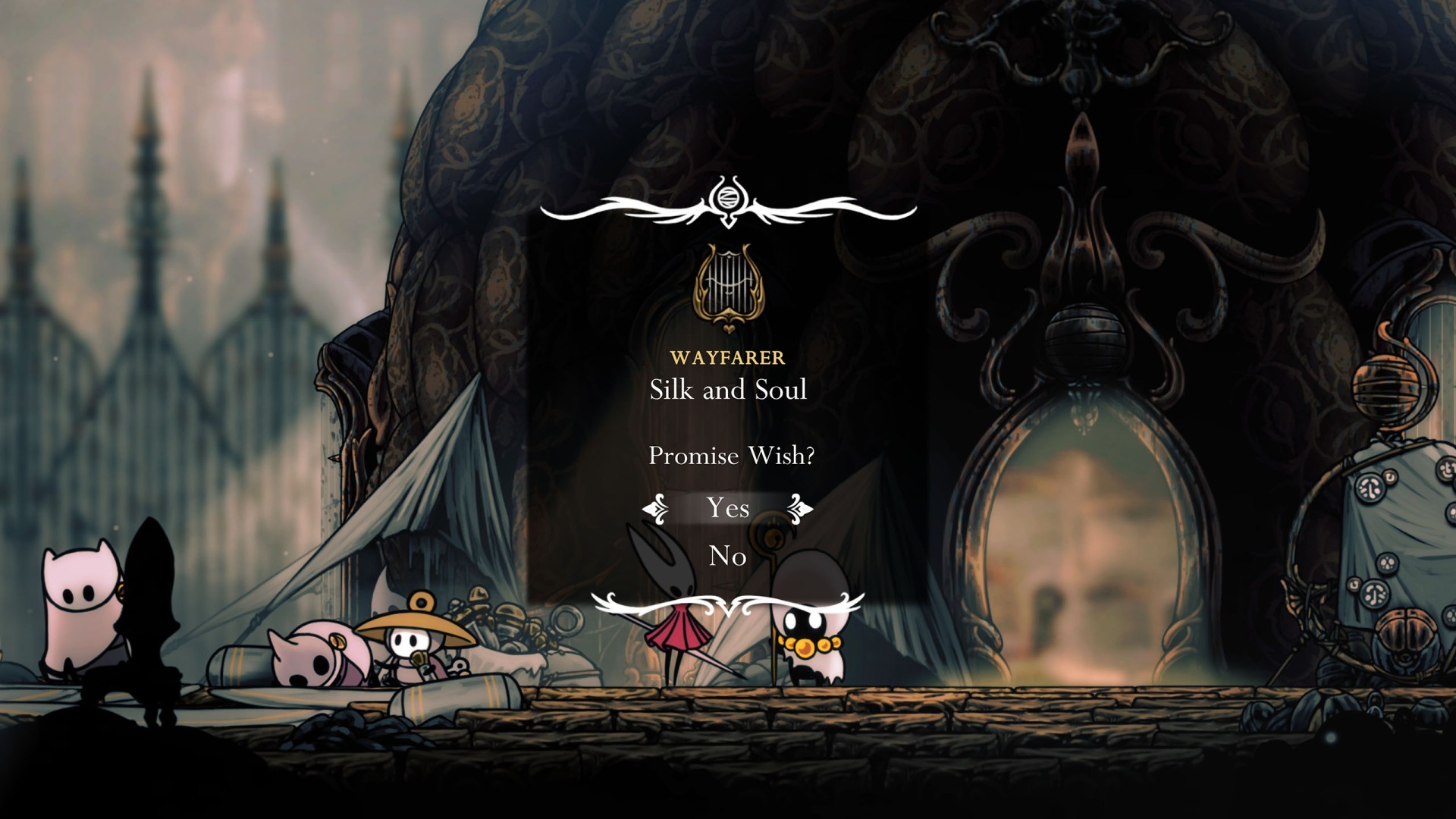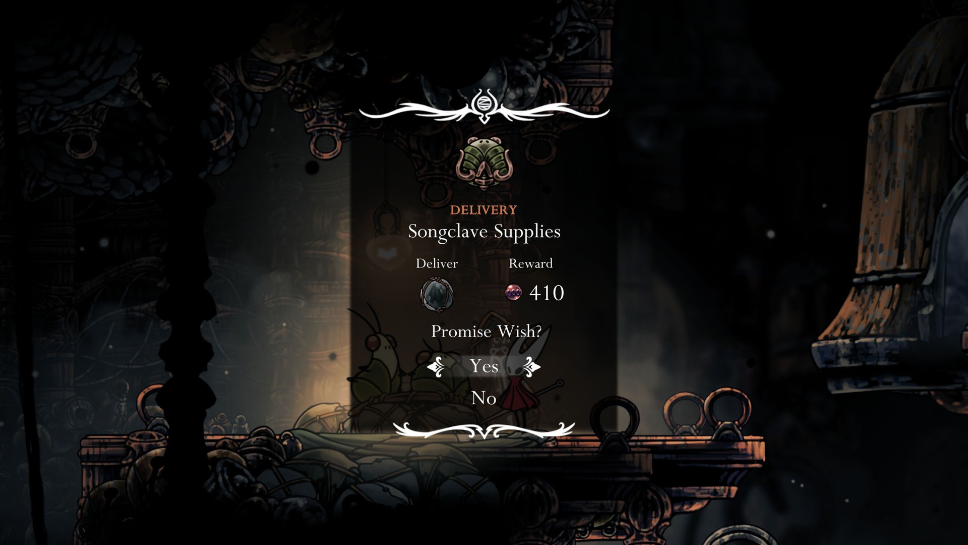 In Hollow Knight: Silksong, "Wishes" are the game's formal side-quest system - offered by NPCs or posted on special boards. They are optional quests but many of them tie into progression.