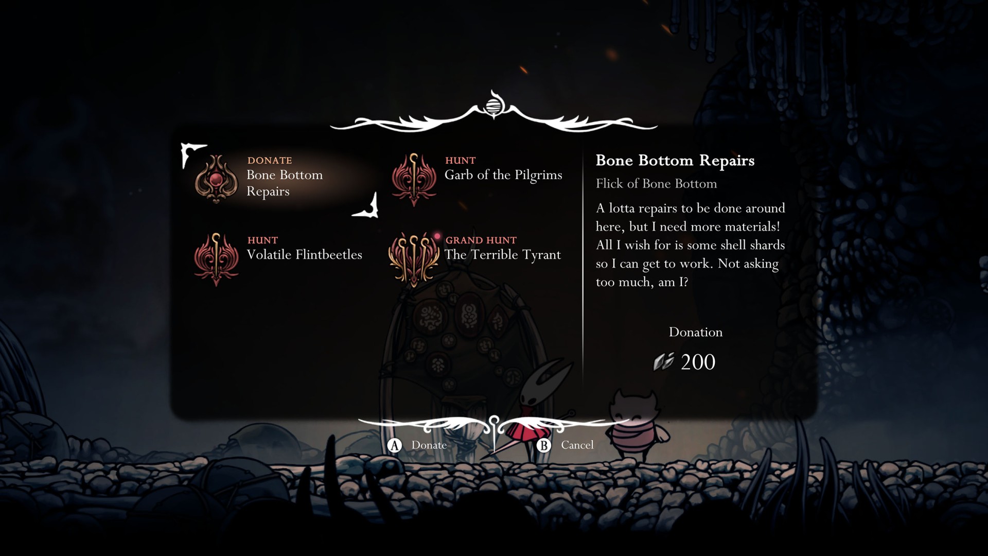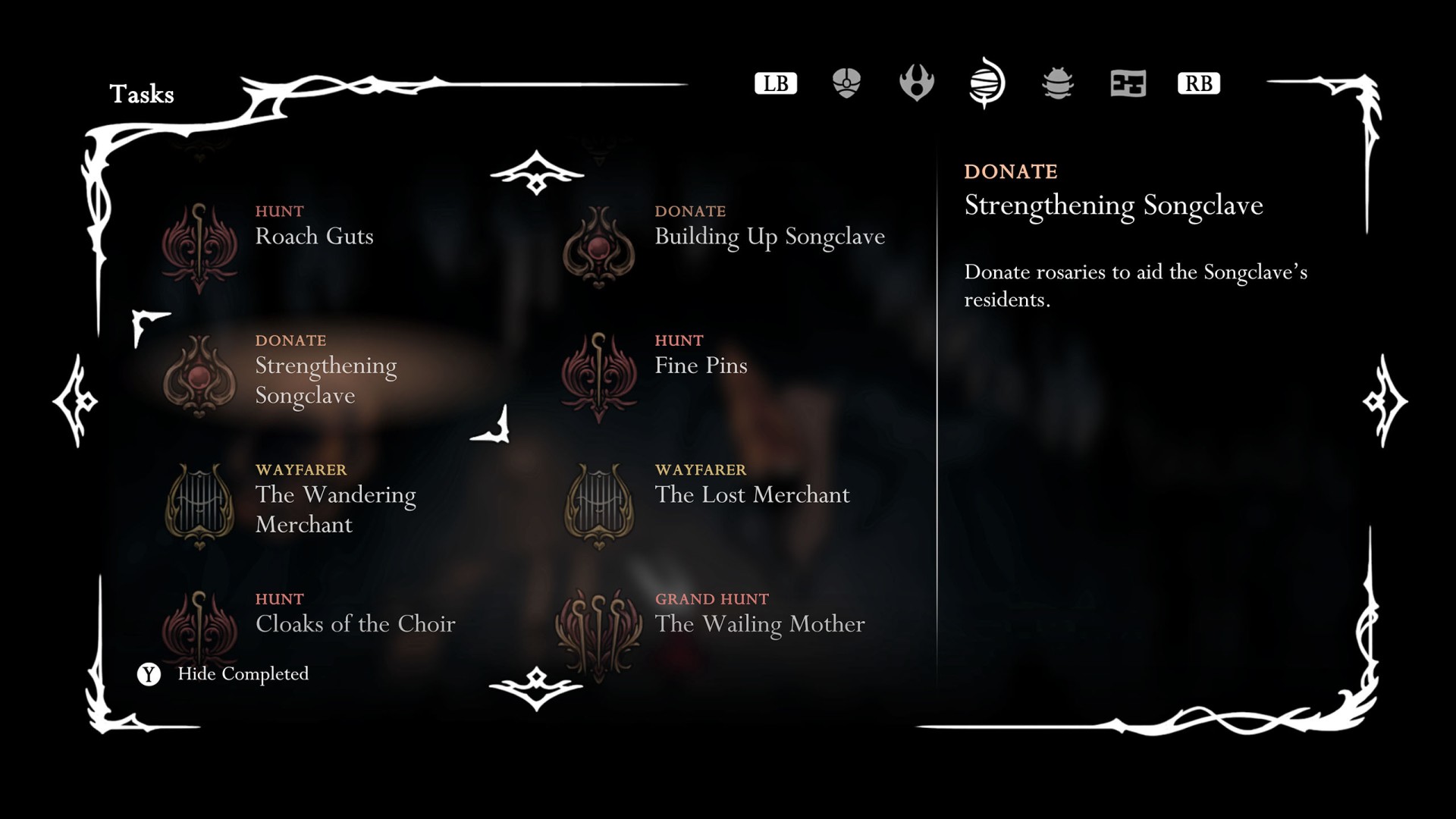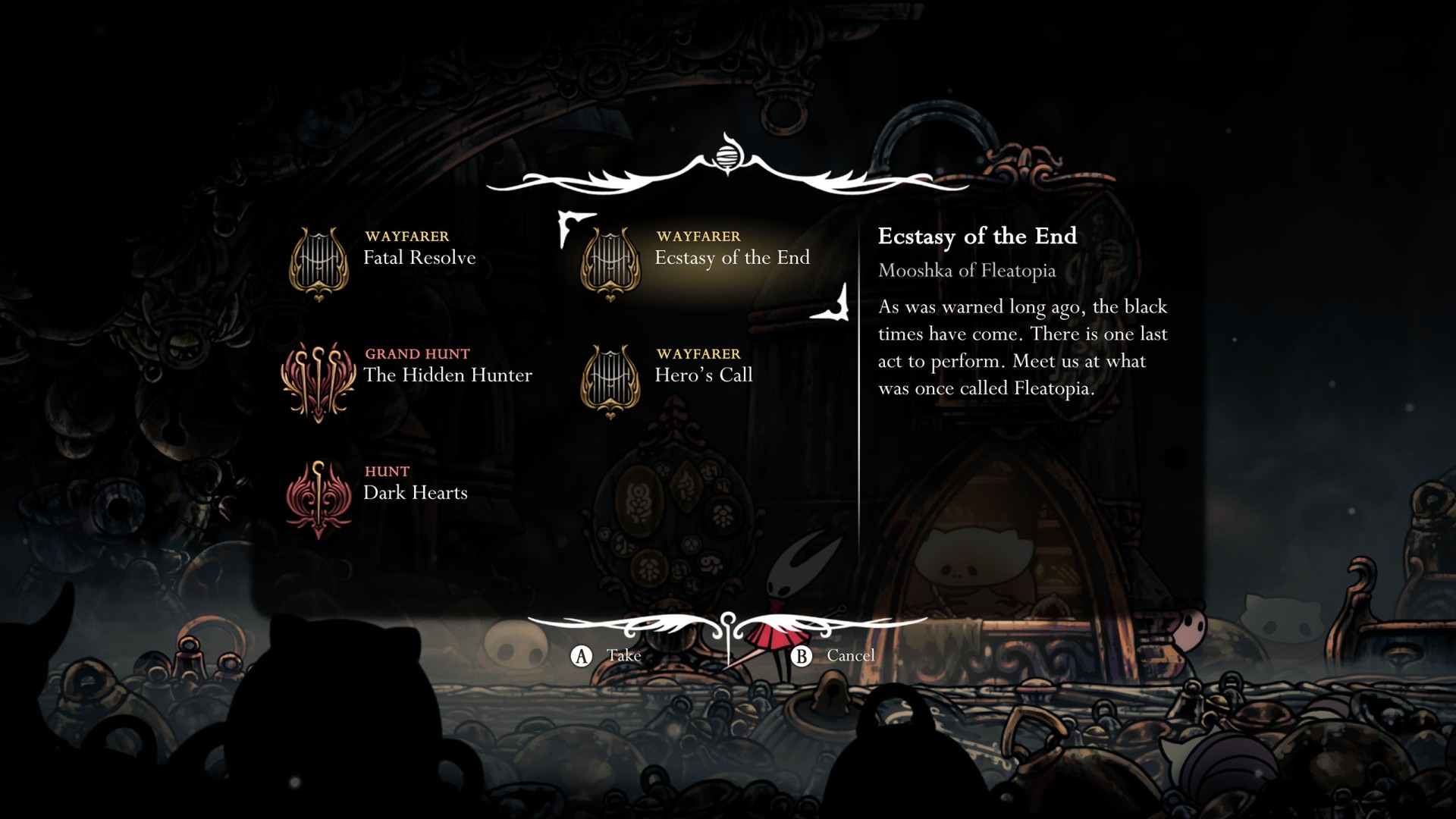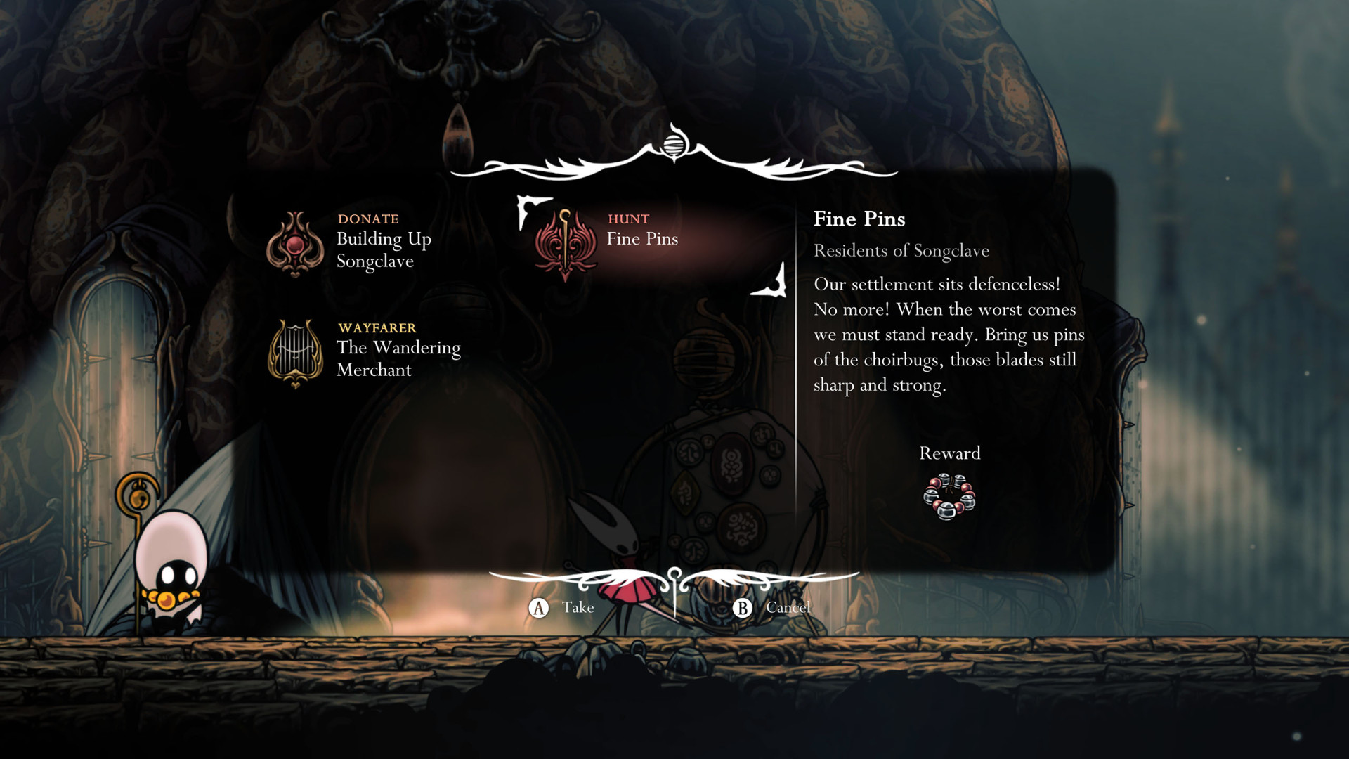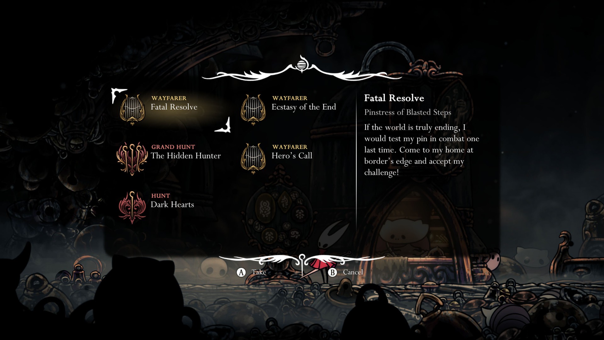 In Hollow Knight: Silksong, "Wishes" are the game's formal side-quest system - offered by NPCs or posted on special boards. They are optional quests but many of them tie into progression.