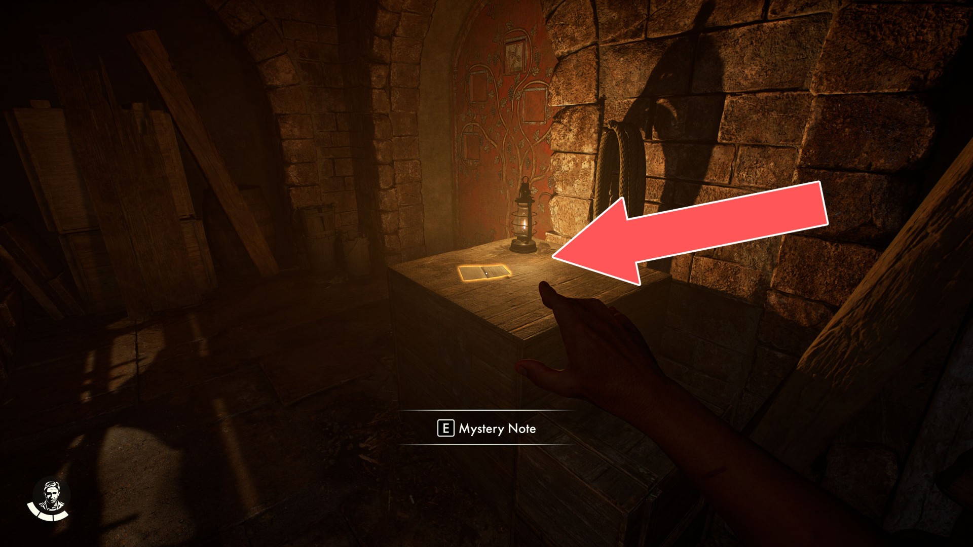 Mystery Note. It is on the crate in the hidden room. Related mystery: The Bulls of Blood.