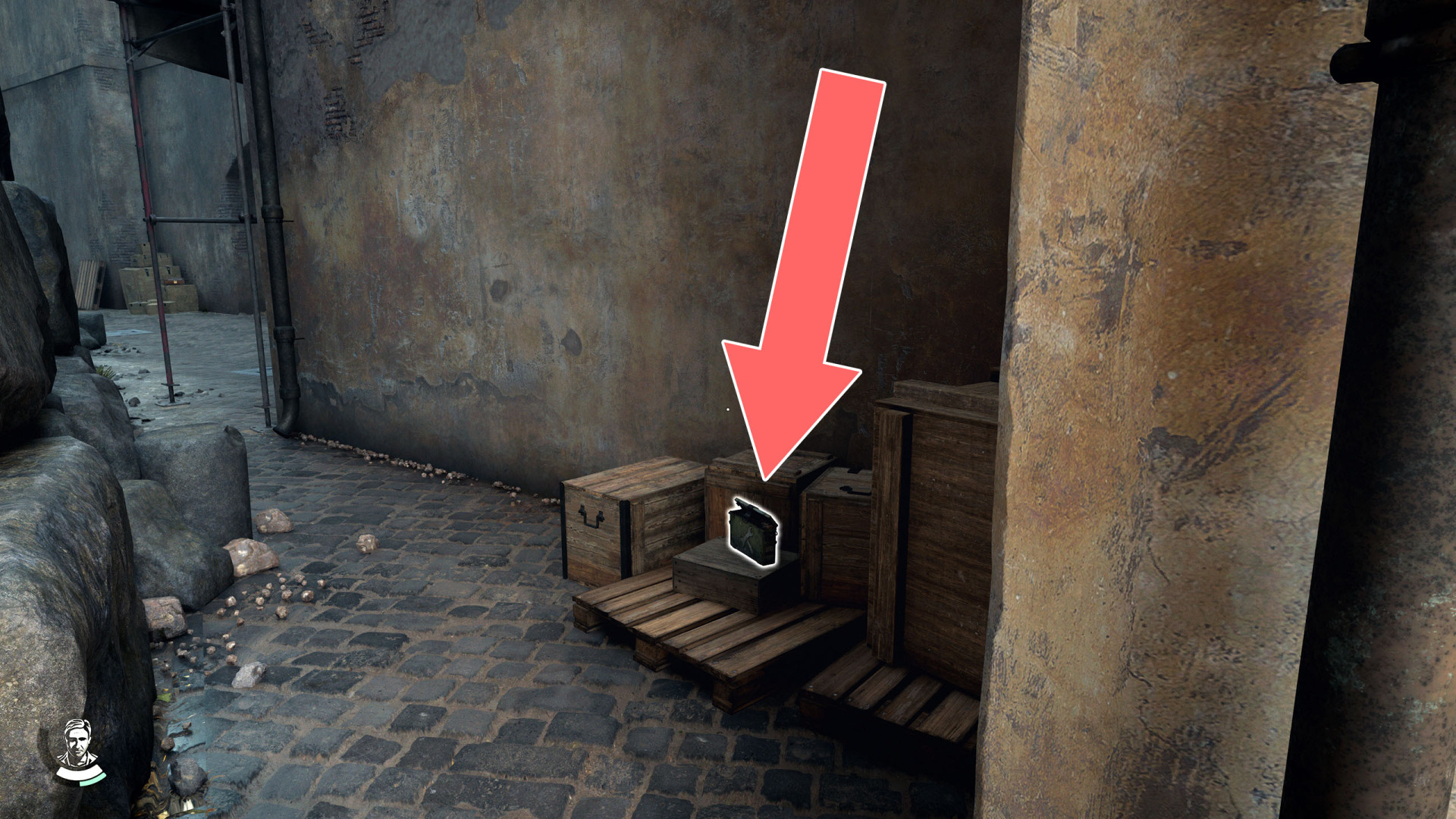 On the crates in the underground, near the door to the Underground Boxing Ring.
