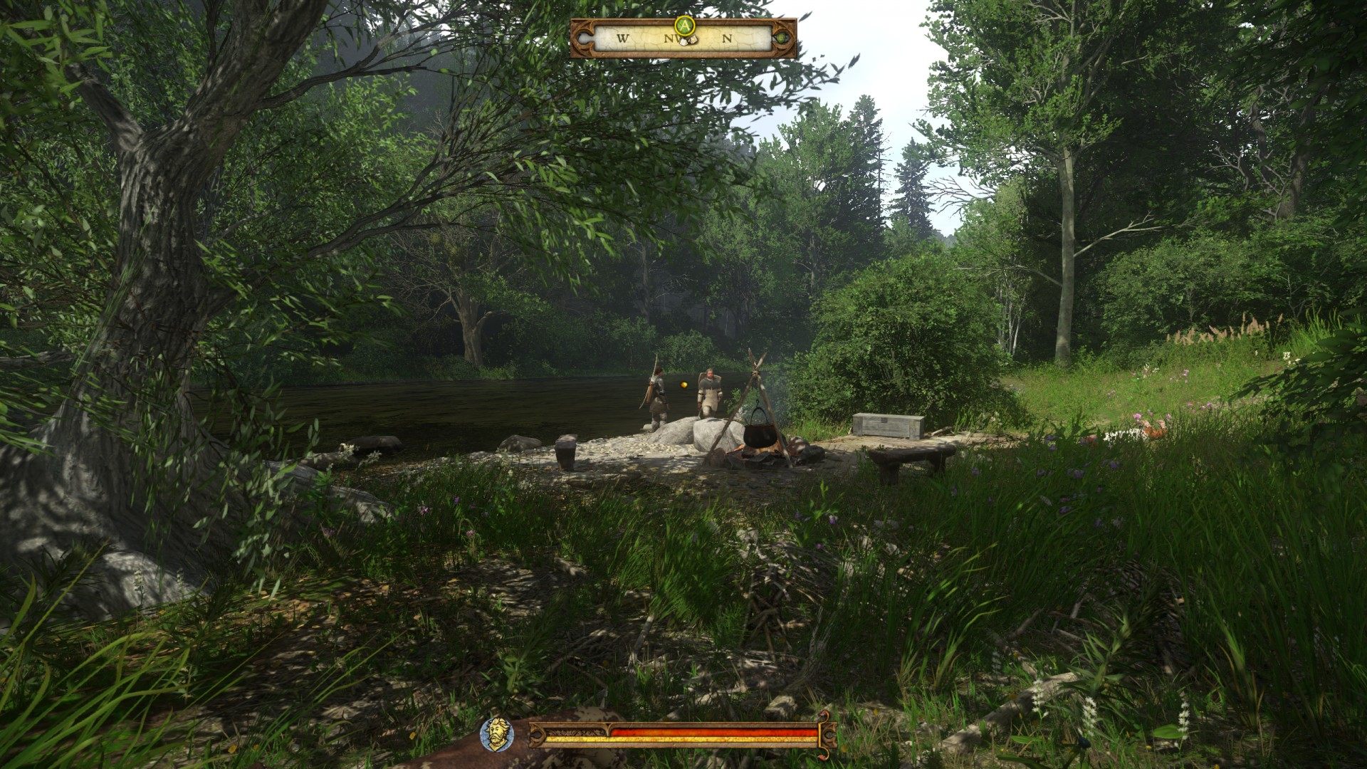 Find the camp guarded by two bandits. Kill the bandits or try to retrieve the gem silently.