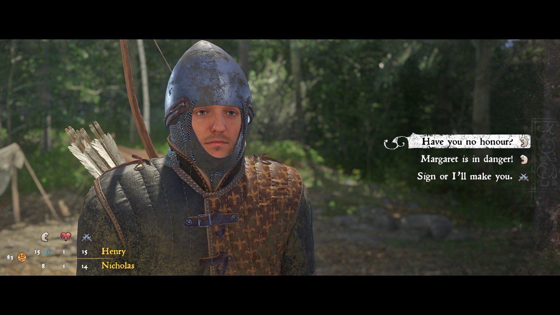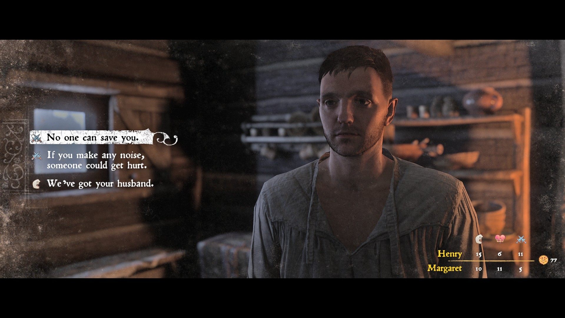 Now I know what he's planning, and it's nothing nice. Hare wants to force Nicholas to sign a confession, which of course he would never do under normal circumstances. But once his wife Margaret is at our mercy, he'll surely think again.