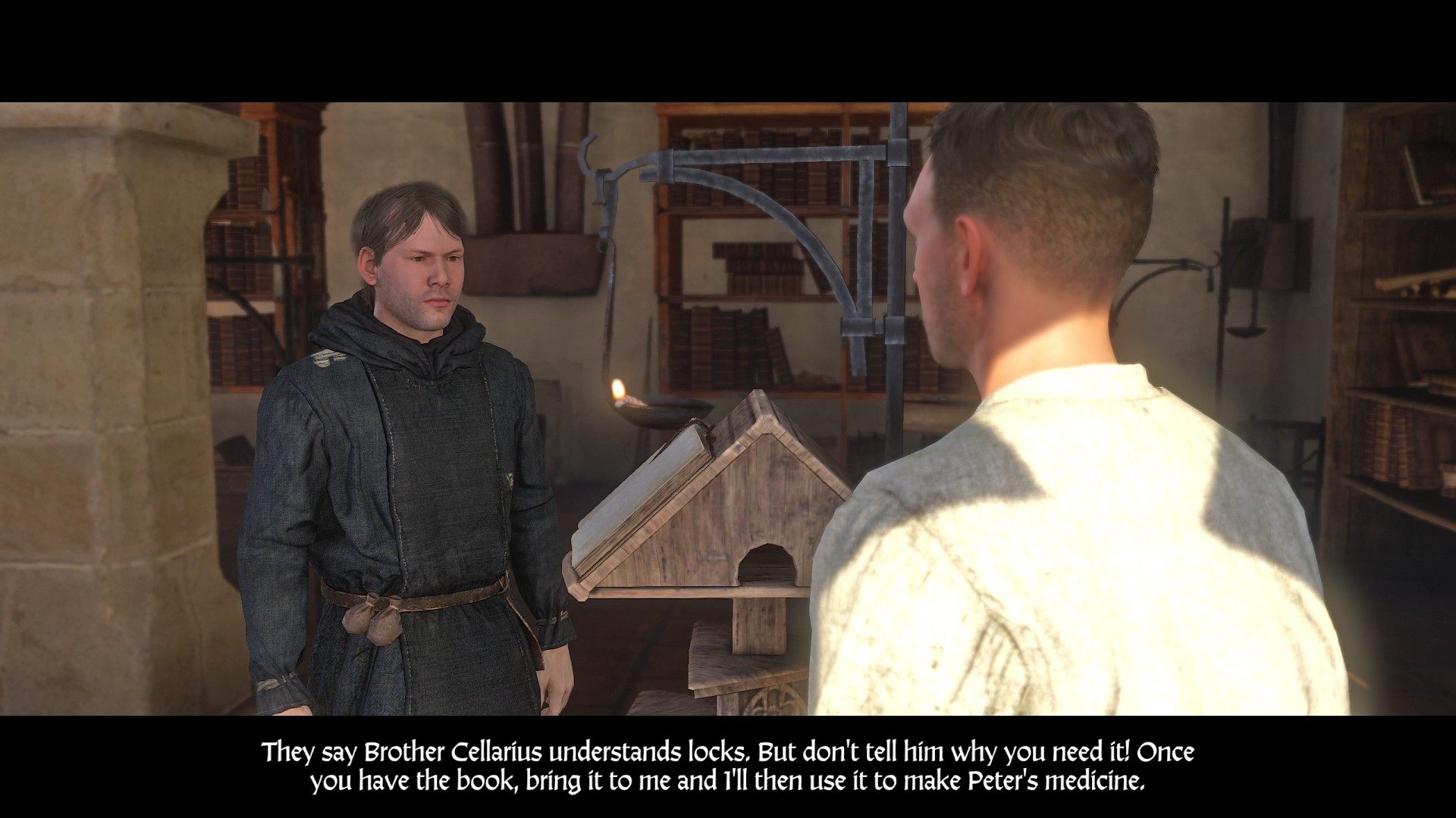 Walkthrough for the quest Libri Prohibiti in the game Kingdom Come: Deliverance. This page covers all main objectives, key steps, or helpful tips to guide you through the quest smoothly. Whenever possible, the guide points out locations for key items and details interactions with NPCs, among other tips. To ensure maximum clarity, in-game screenshots are included for easy-to-follow visual guidance.