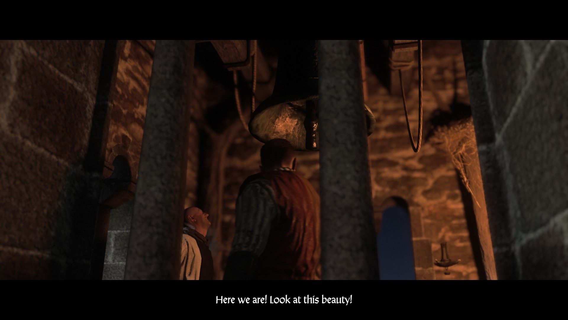 All of a sudden I find myself in front of the bell tower. How the hell did I get here? And Father Godwin is showing off in front of the women. He says we're going to ring the bell!