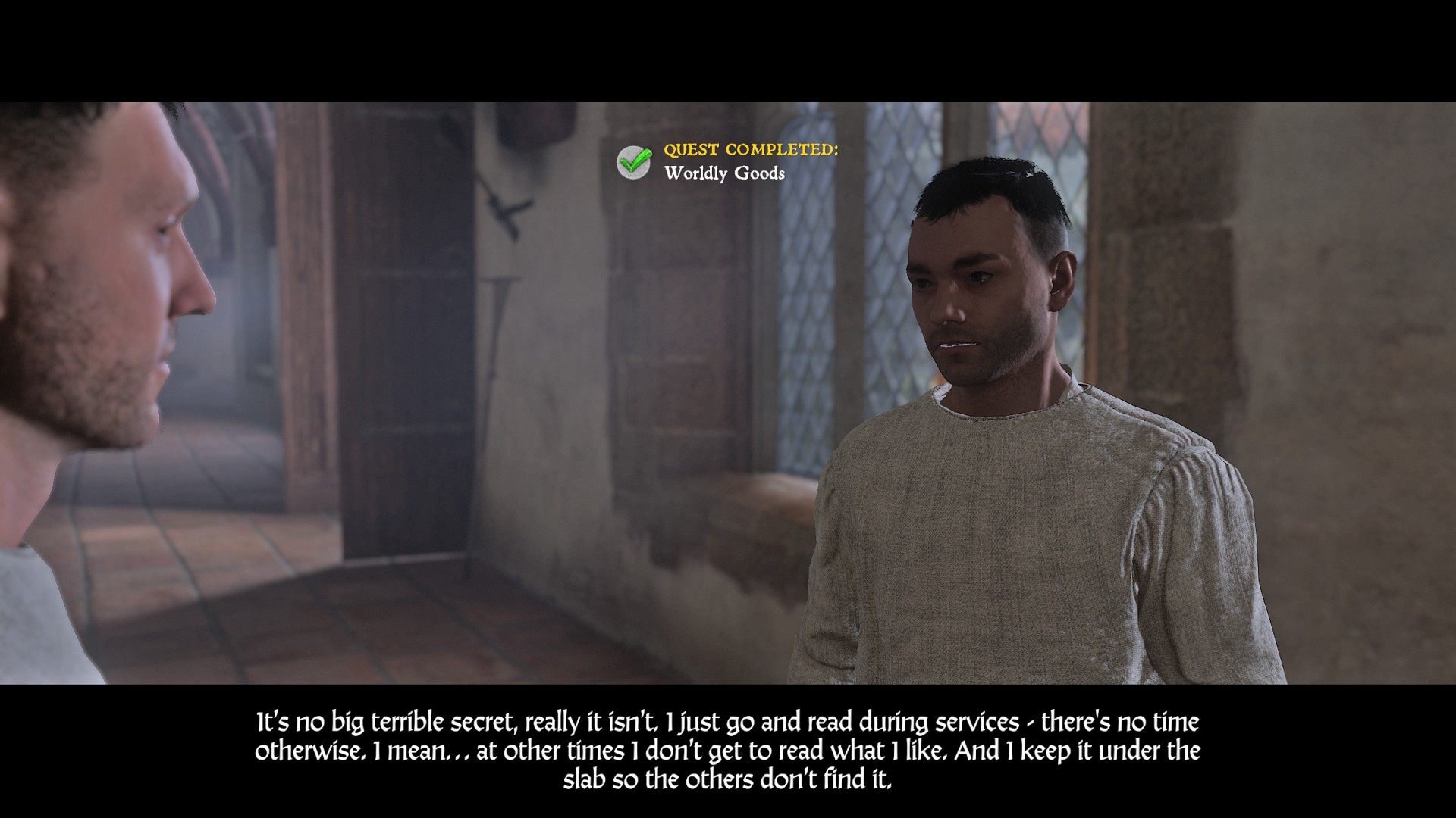 Walkthrough for the quest Worldly Goods in the game Kingdom Come: Deliverance. This page covers all main objectives, key steps, or helpful tips to guide you through the quest smoothly. Whenever possible, the guide points out locations for key items and details interactions with NPCs, among other tips. To ensure maximum clarity, in-game screenshots are included for easy-to-follow visual guidance.