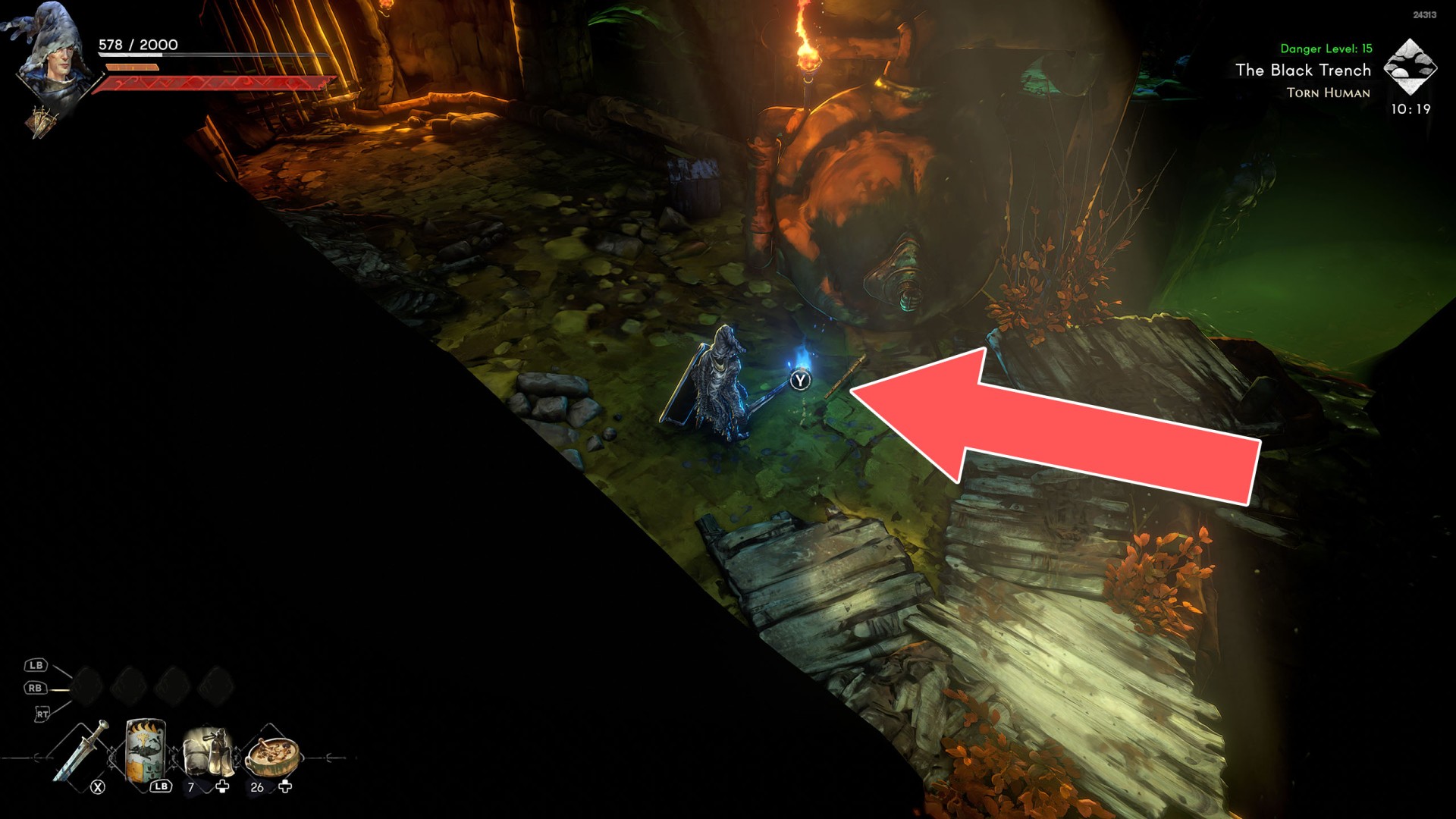 Description: The missing handle for the broken lever at the fortress gate.