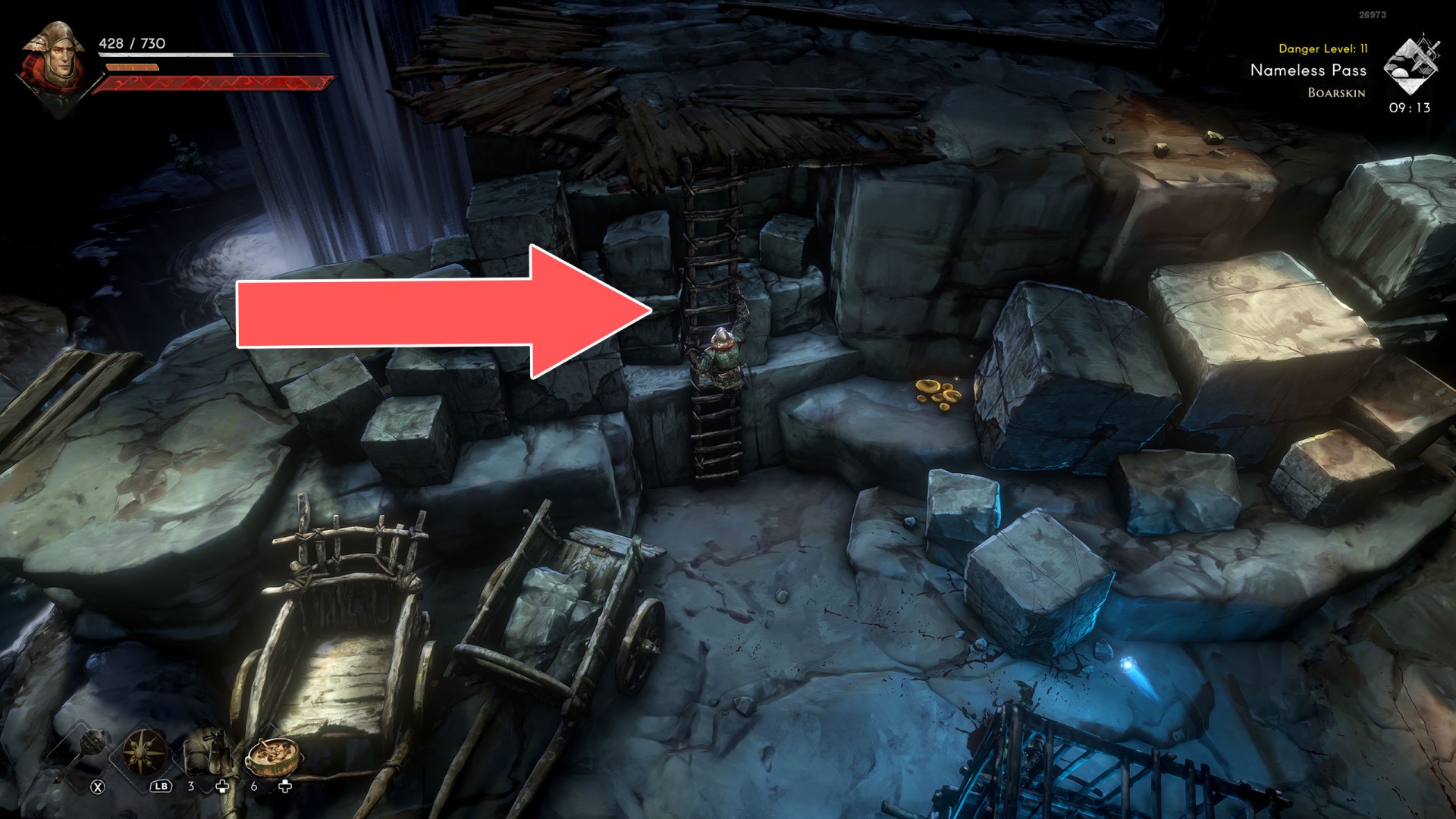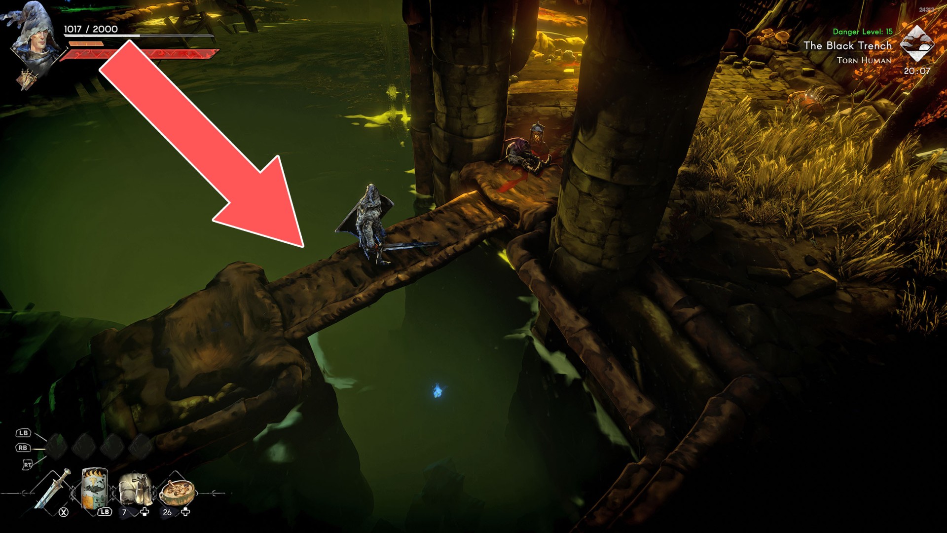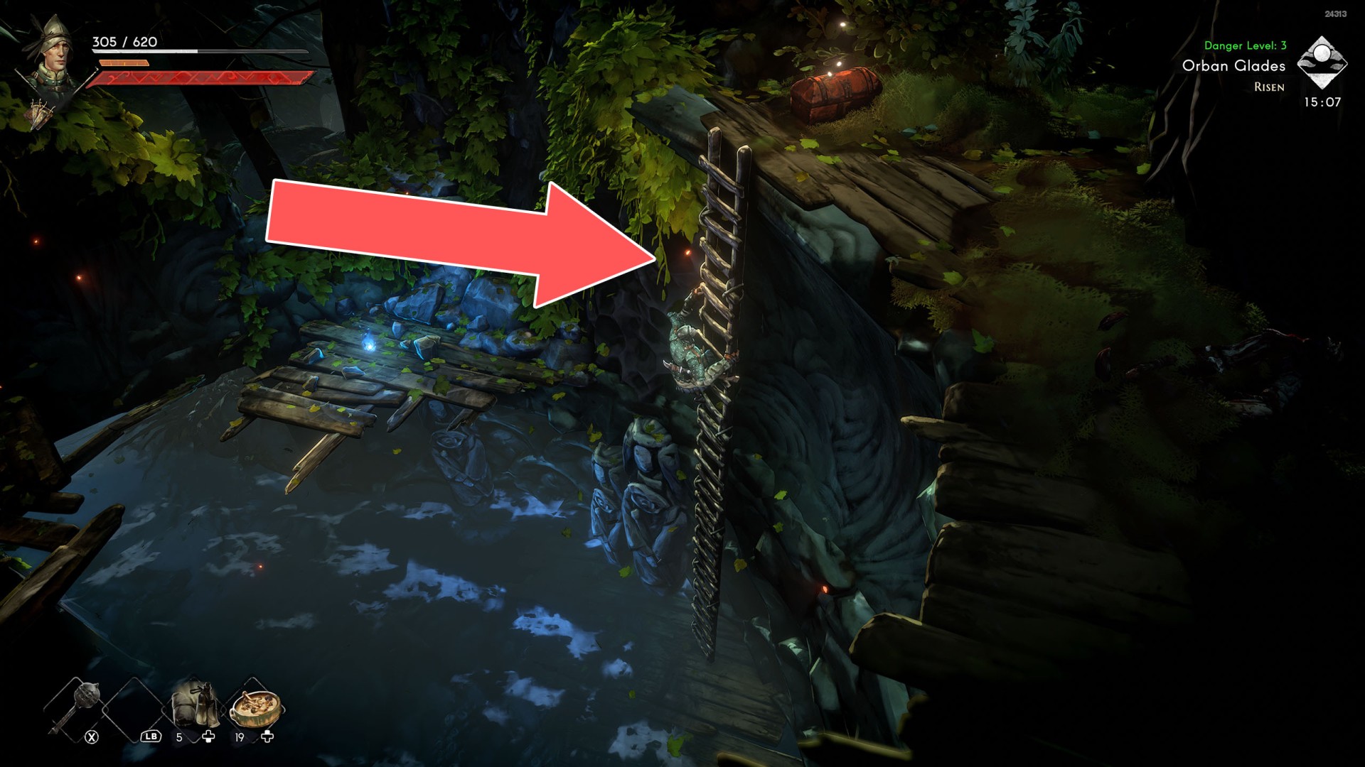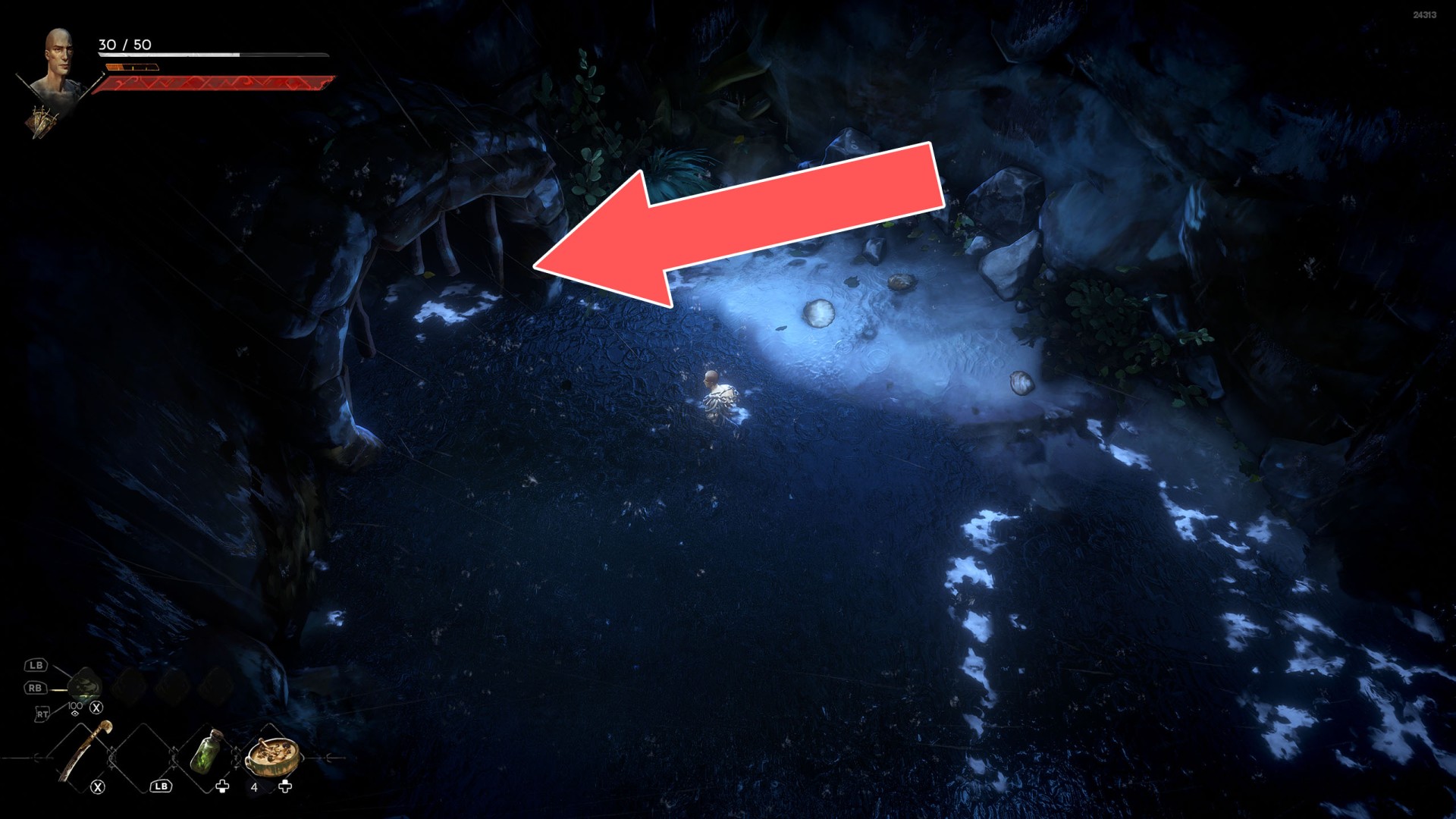 Show the mapIn order to go this way, you must pull the Water Level Lever #2, causing the water to drain away.