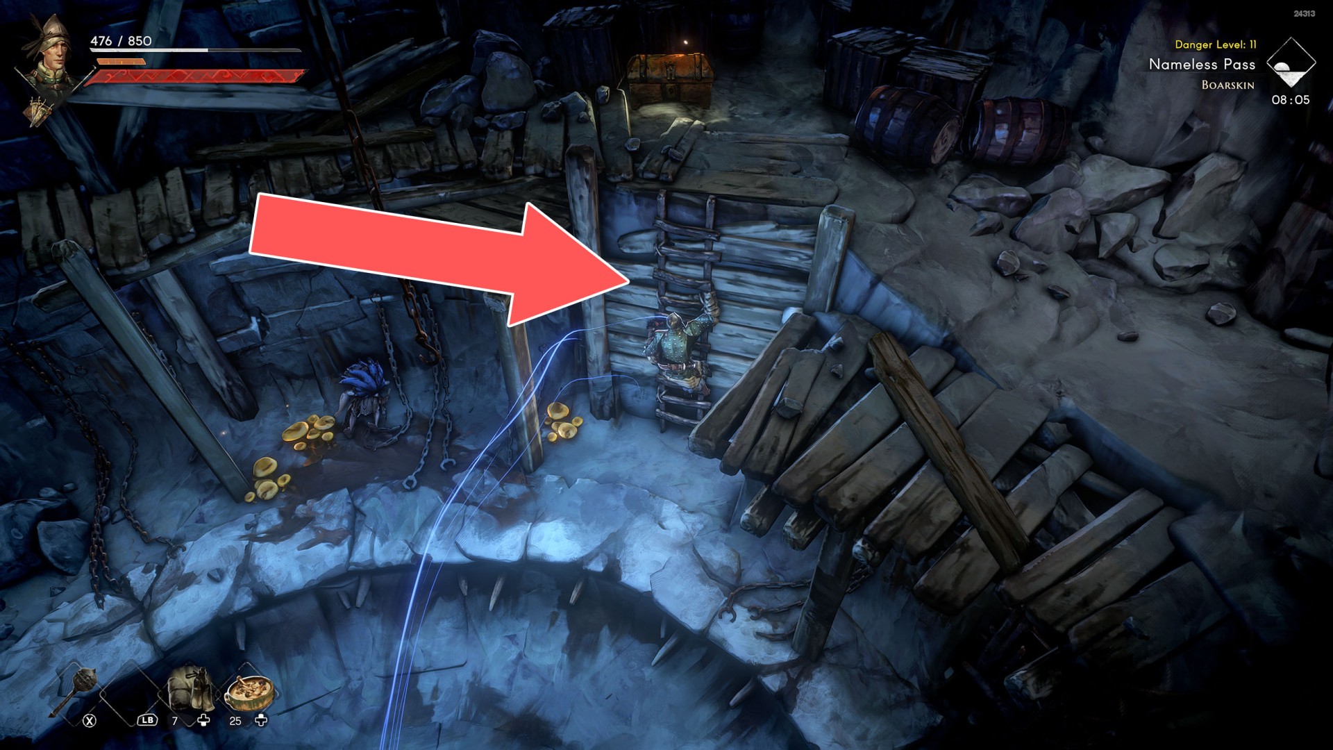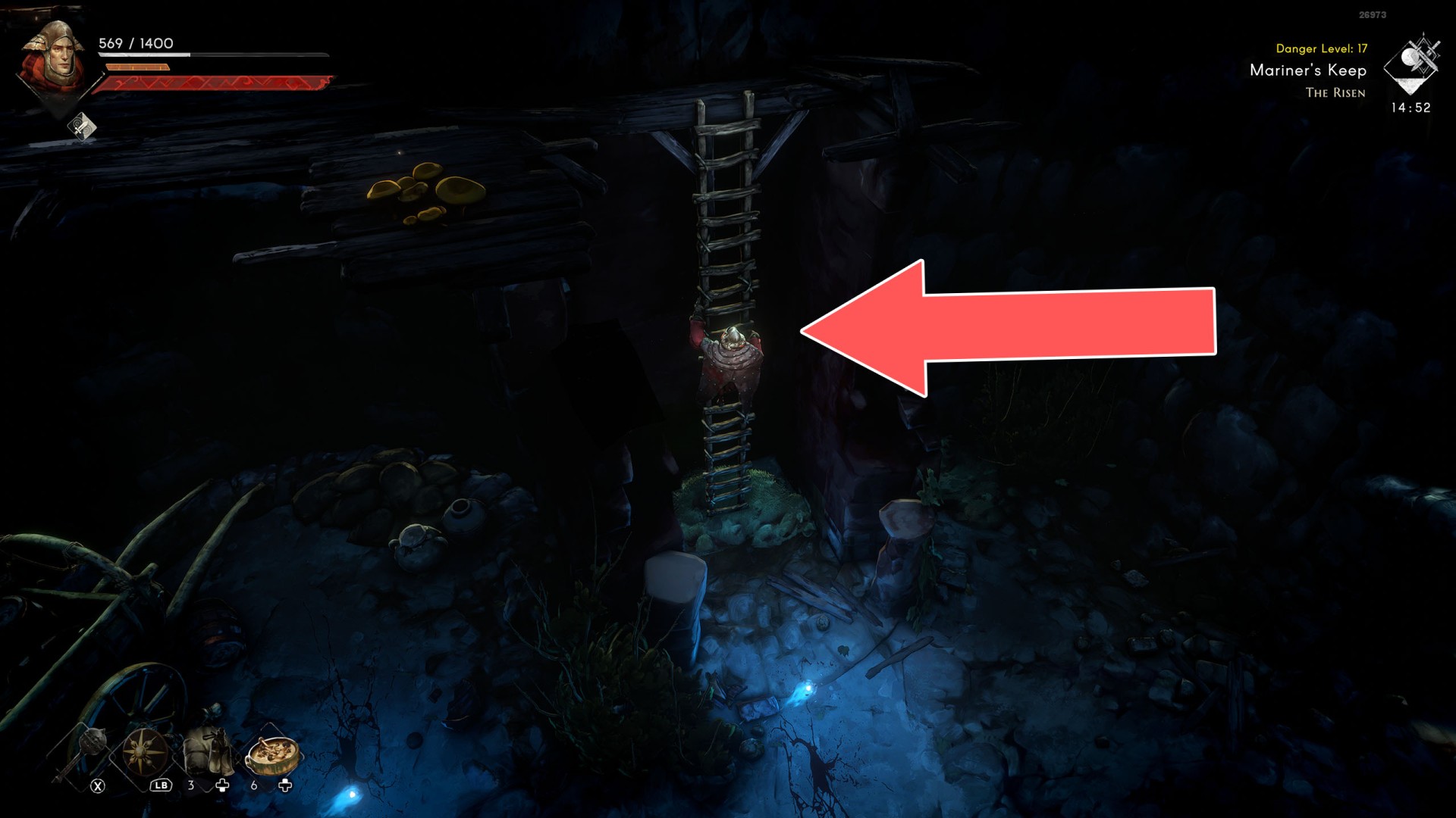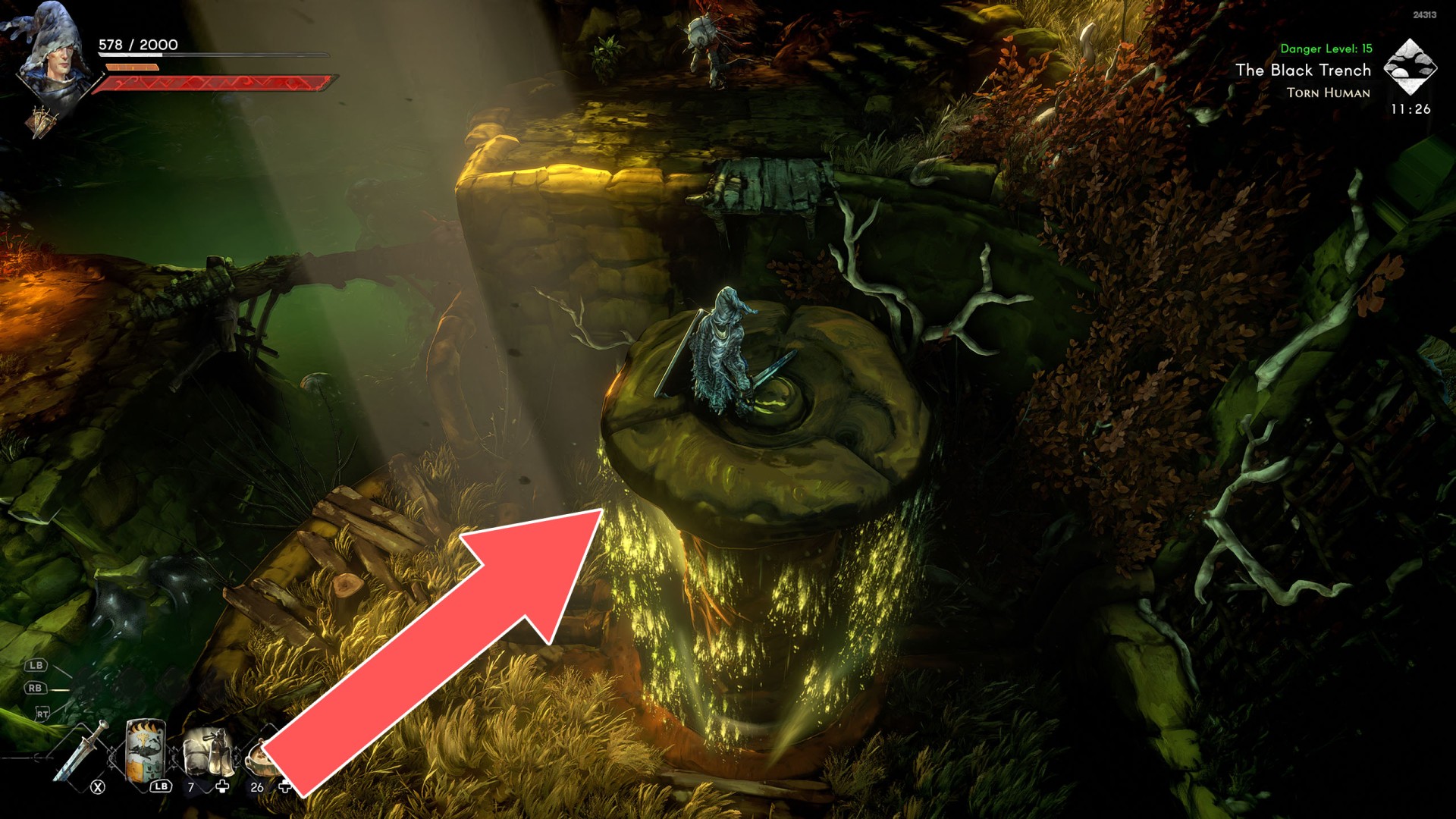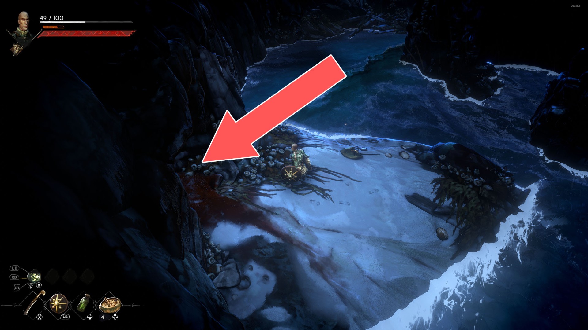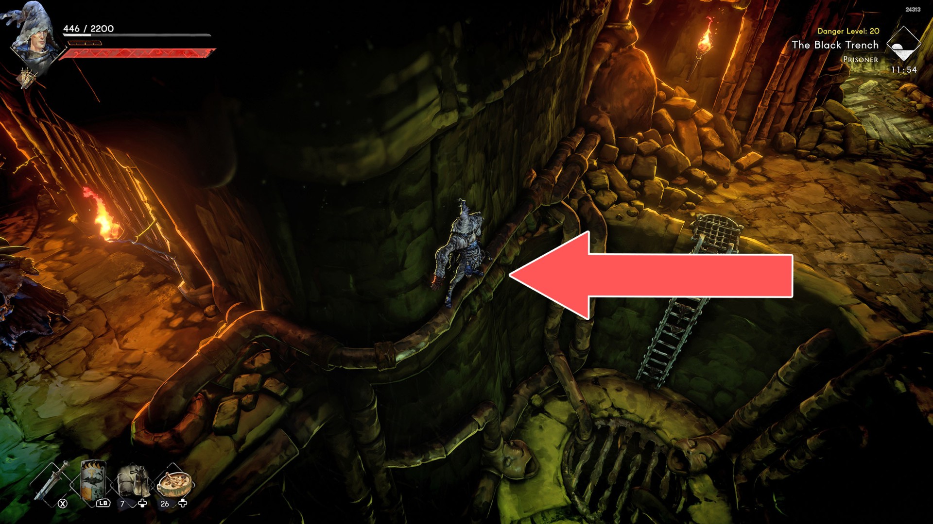 Show the mapIn order to go this way, you must pull the Water Level Lever #2, causing the water to drain away.