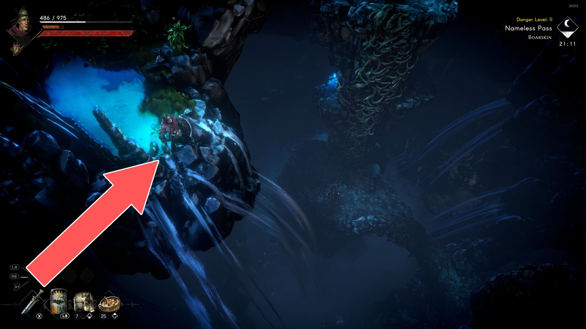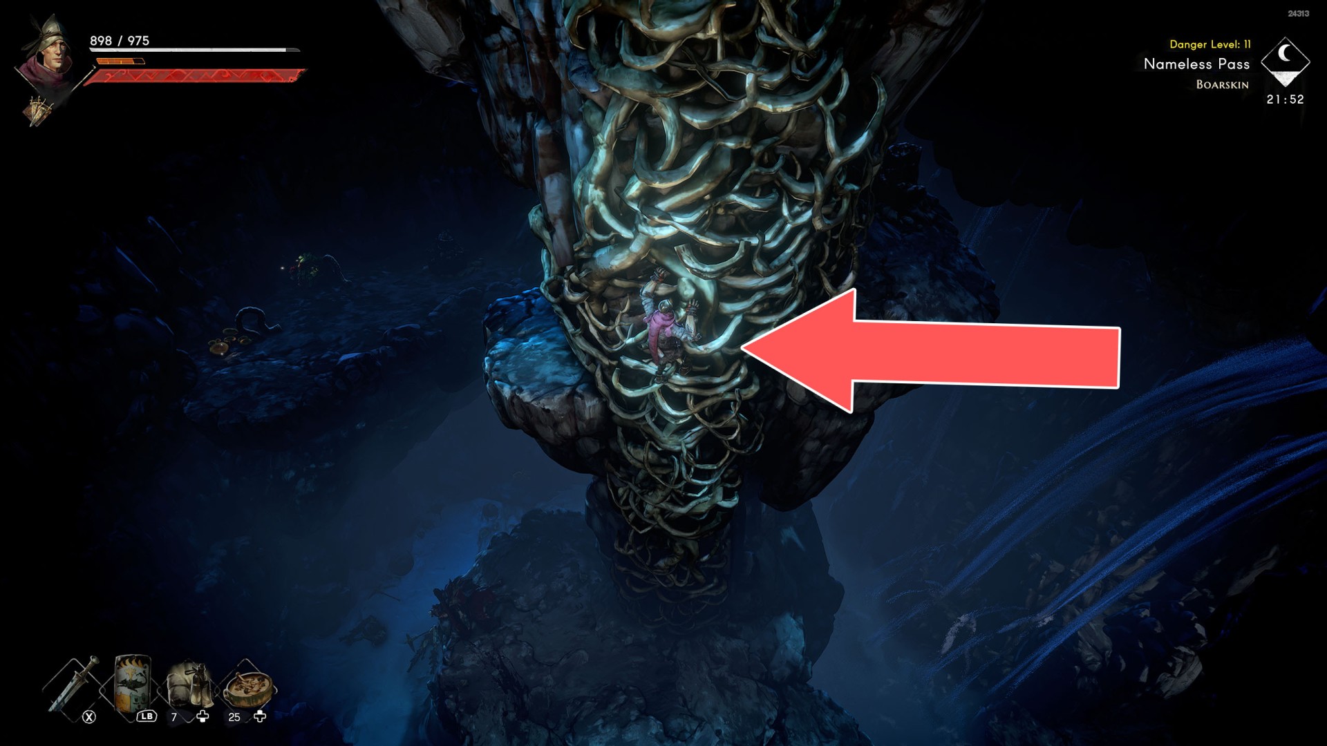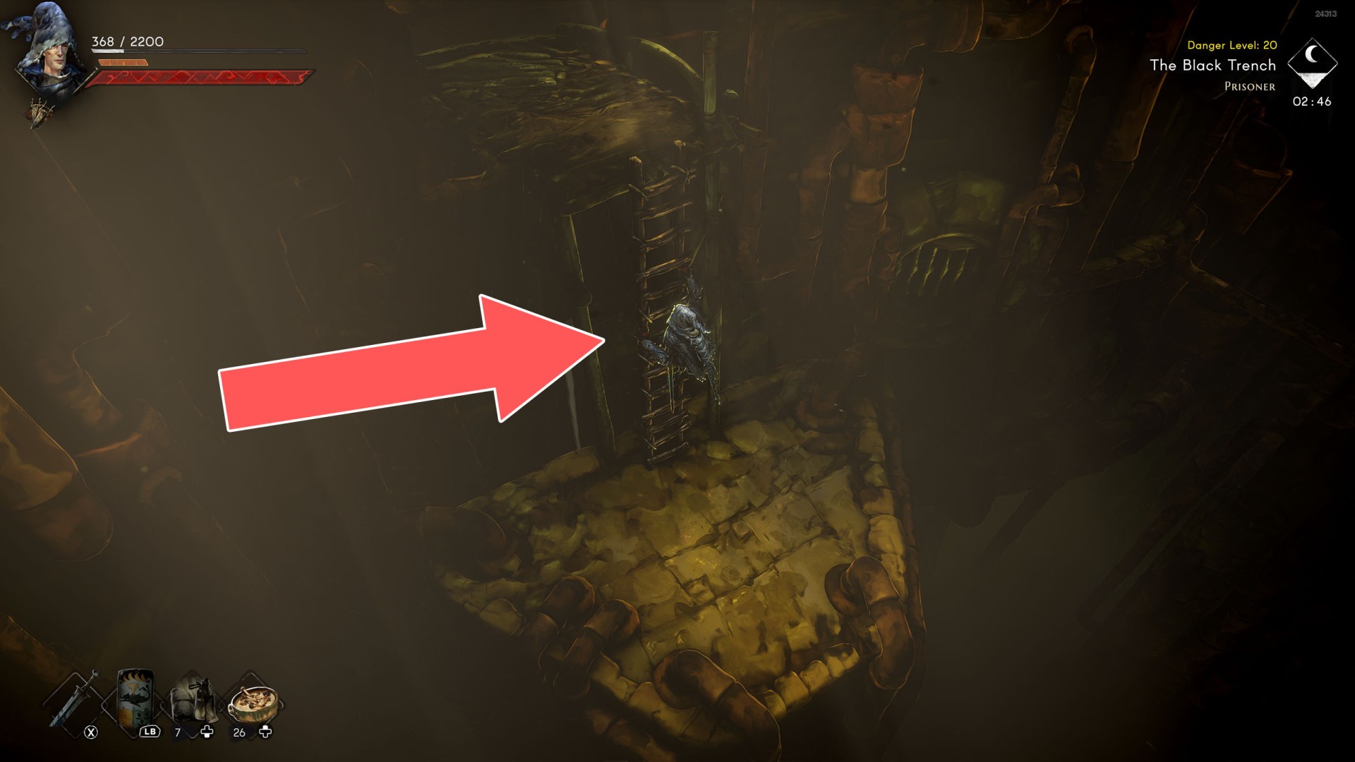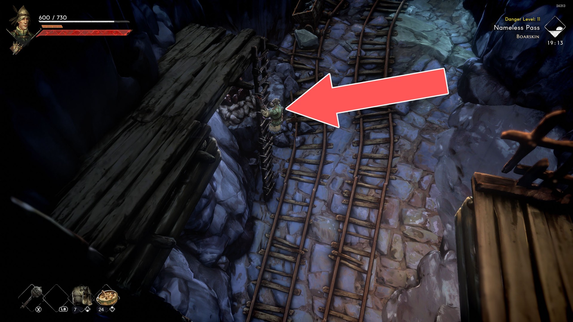Show the mapIn order to go this way, you must pull the Water Level Lever #2, causing the water to drain away.